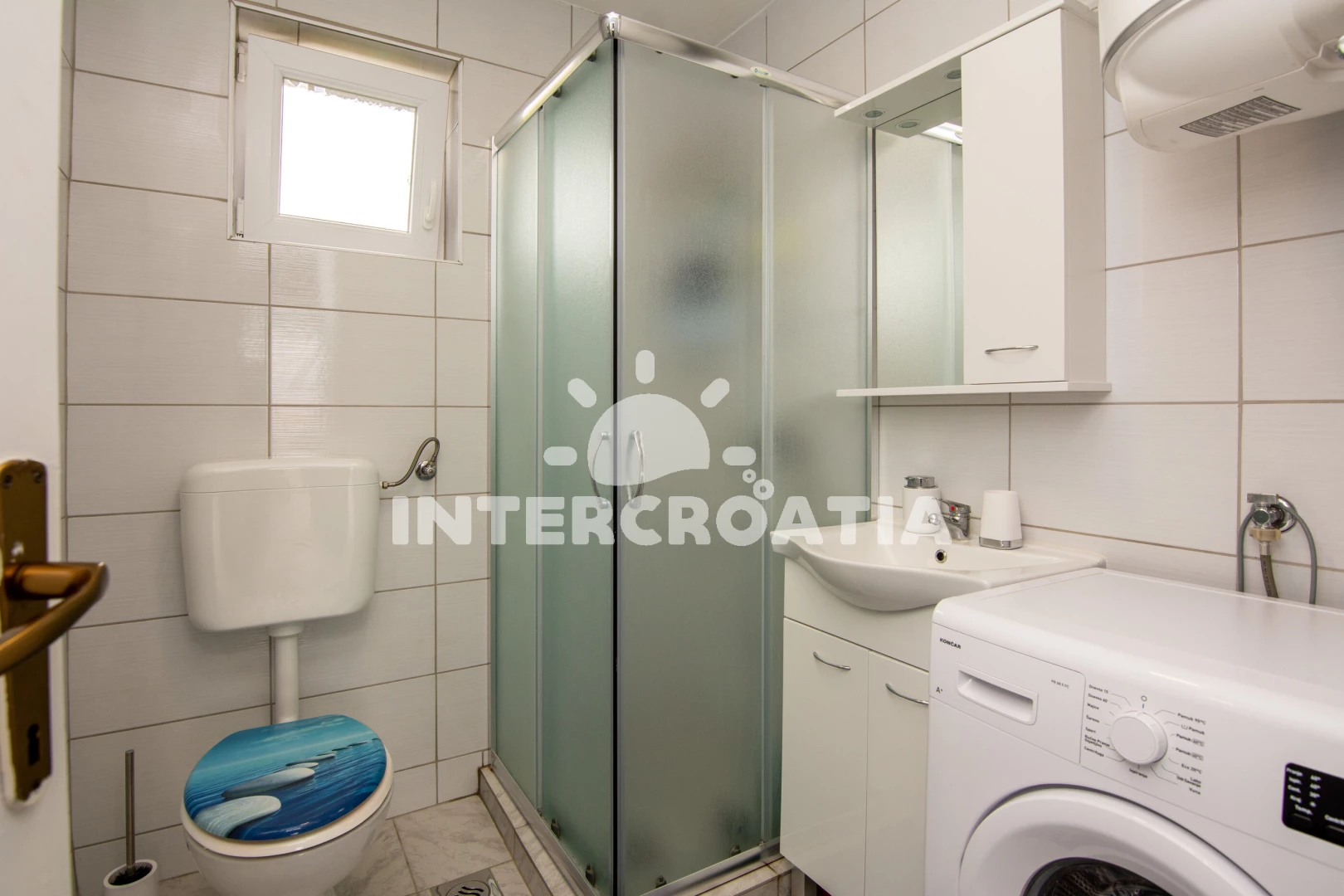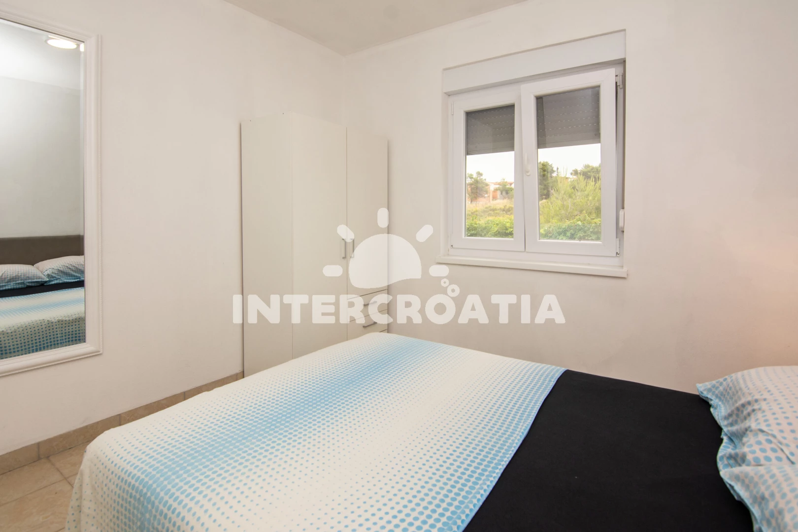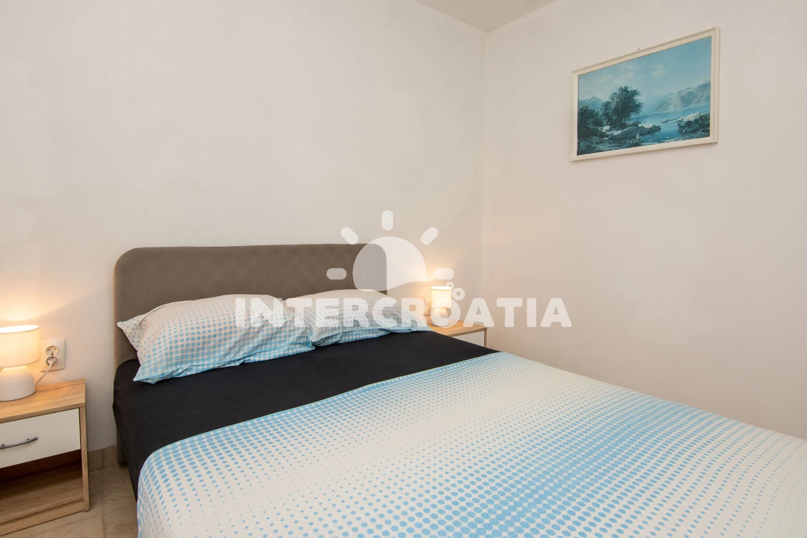 Apartmán se nachází 250 m od moře a pláže. Pláž je skalnatá, oblázková, větší kamení a betonové desky. U objektu je k dispozici společná zahrada s posezením a grilem. Parkování je před domem.
