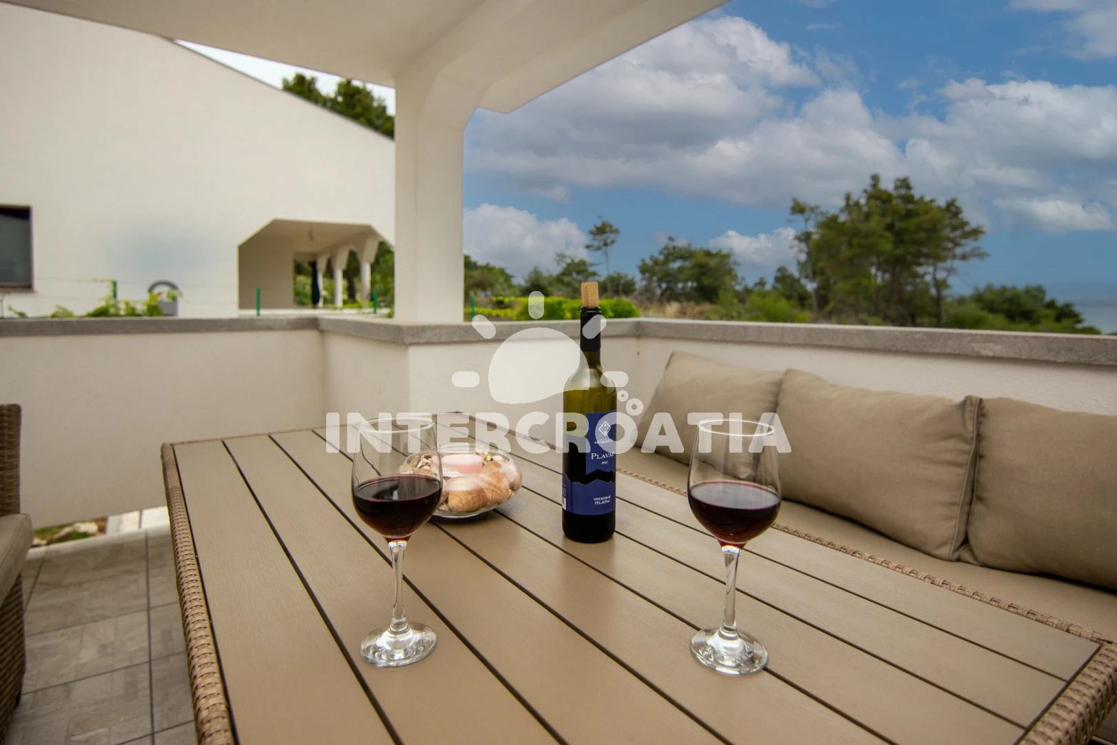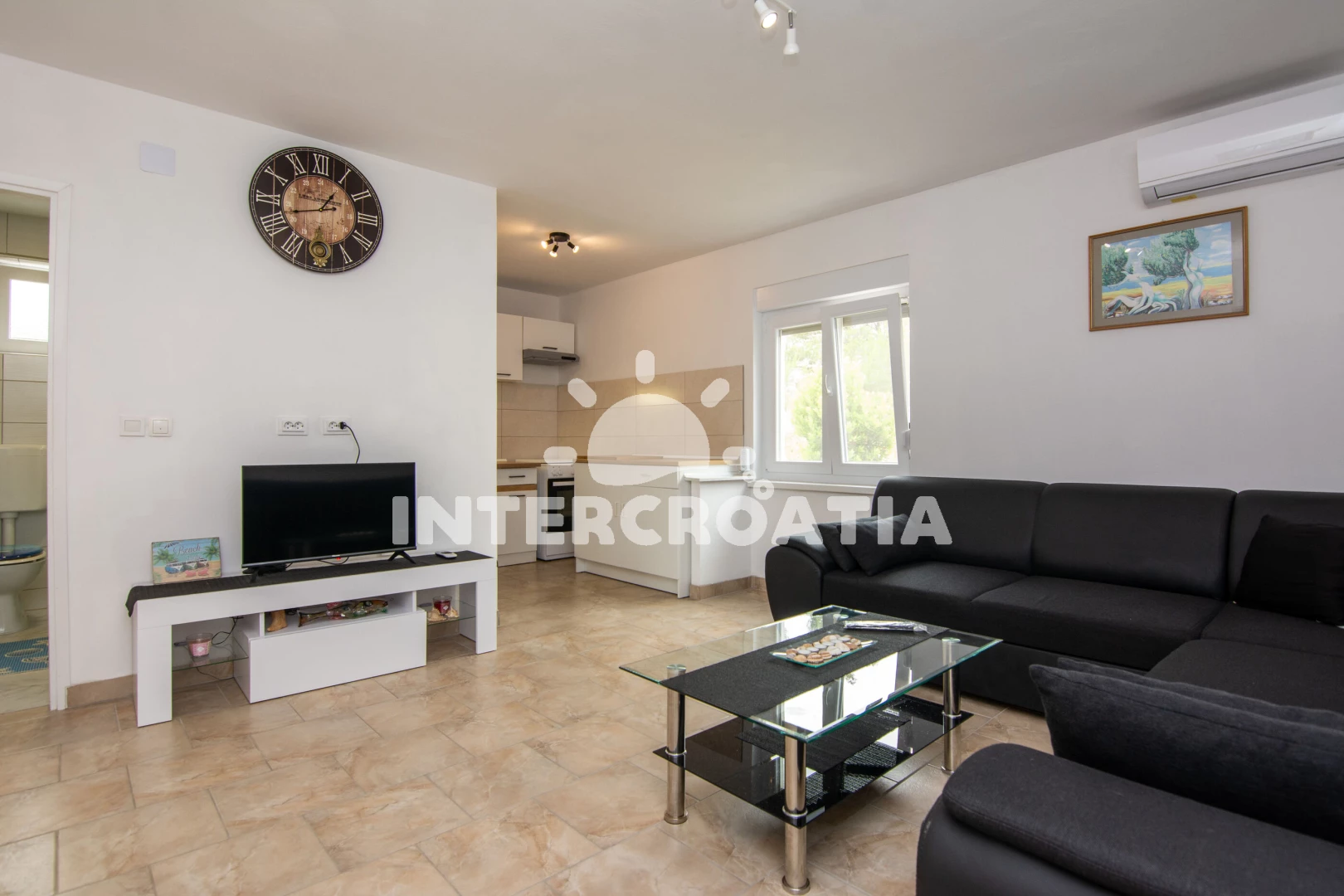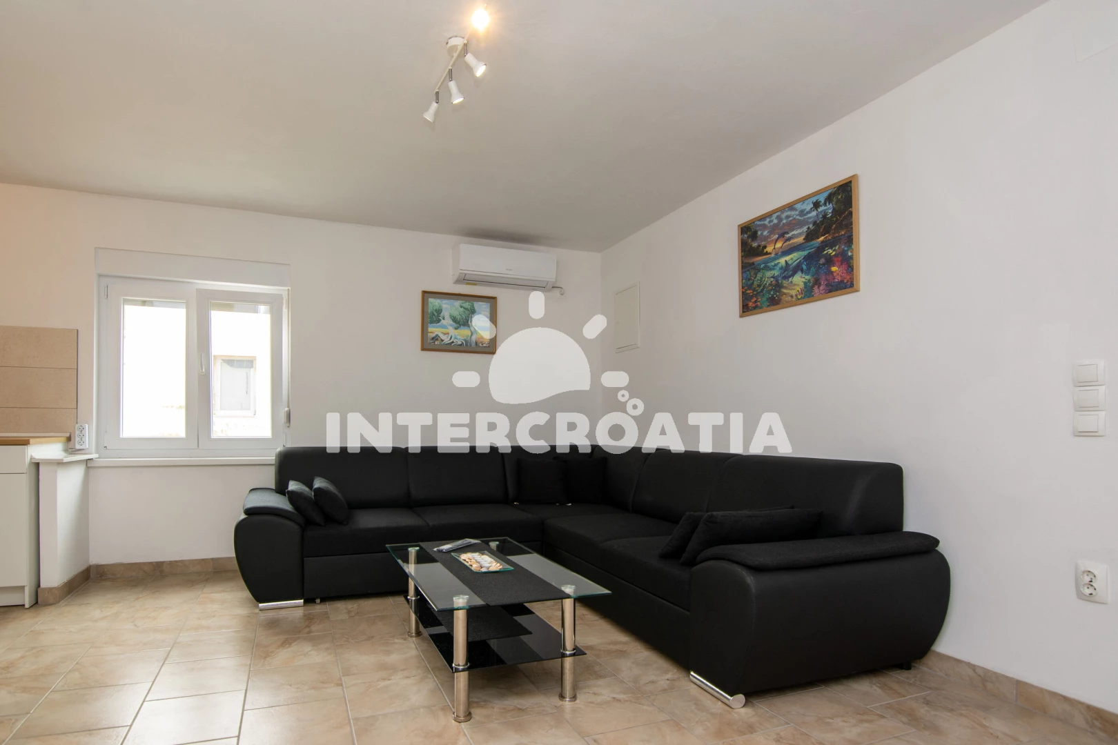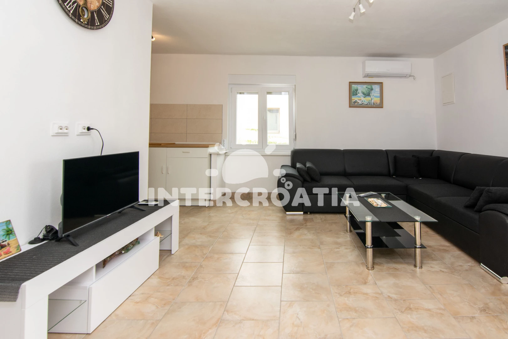 Apartmán se nachází 250 m od moře a pláže. Pláž je skalnatá, oblázková, větší kamení a betonové desky. U objektu je k dispozici společná zahrada s posezením a grilem. Parkování je před domem.
