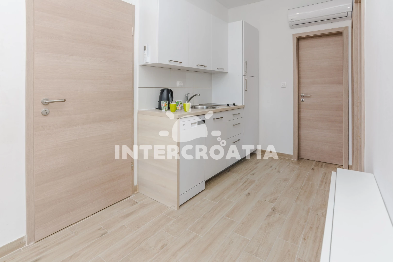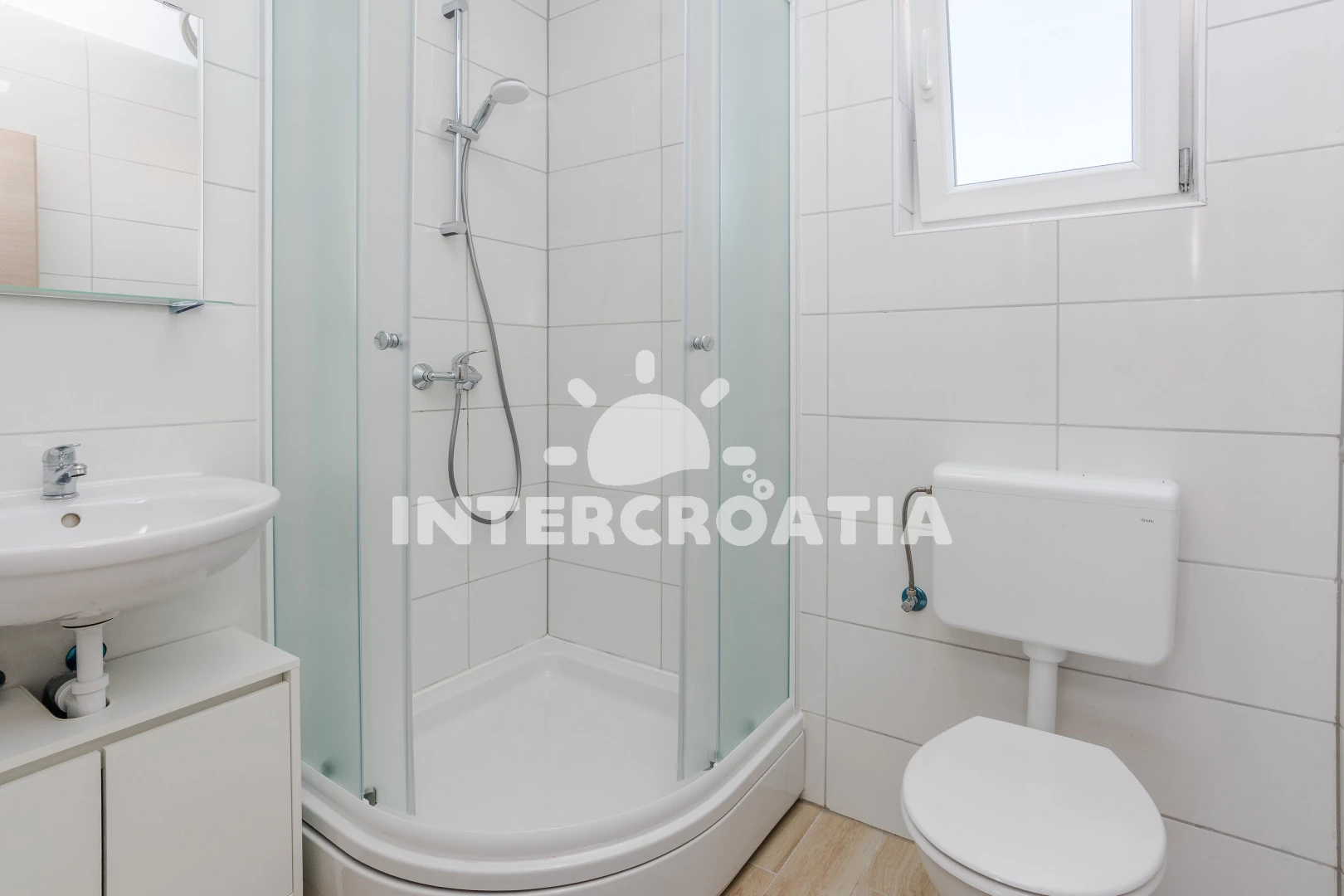 Apartmán se nachází 120 m od moře a pláže. Pláž je skalnatá, oblázková, větší kamení a betonové desky. U objektu je k dispozici společná zahrada s posezením a grilem. Parkování je před domem.