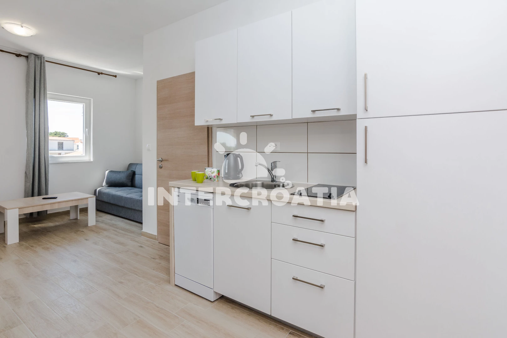Vzdálenosti: Moře 120 m, pláž 120 m (skalnatá, oblázková, větší kamení a betonové desky), bar 100 m, restaurace 100 m, supermarket 300 m, centrum 800 m, diskotéka 800 m, veřejná doprava 800 m, potápění 800 m, lékárna 800 m, ambulance 800 m, směnárna 800 m, půjčovna kol 800 m, pošta 800 m, čerpací stanice 3 km, banka 30 km, trajekt (Zadar) 30 km, marina 30 km, letiště (Zadar) 35 km,
