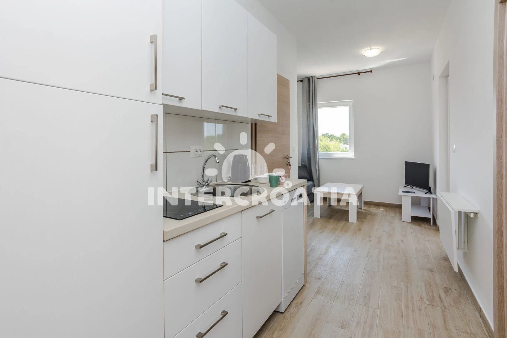 Vzdálenosti: Moře 120 m, pláž 120 m (skalnatá, oblázková, větší kamení a betonové desky), bar 100 m, restaurace 100 m, supermarket 300 m, centrum 800 m, diskotéka 800 m, veřejná doprava 800 m, potápění 800 m, lékárna 800 m, ambulance 800 m, směnárna 800 m, půjčovna kol 800 m, pošta 800 m, čerpací stanice 3 km, banka 30 km, trajekt (Zadar) 30 km, marina 30 km, letiště (Zadar) 35 km,