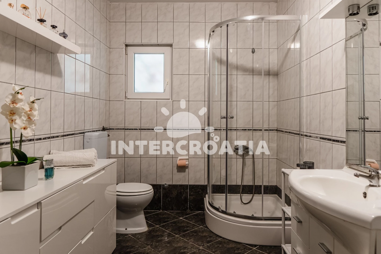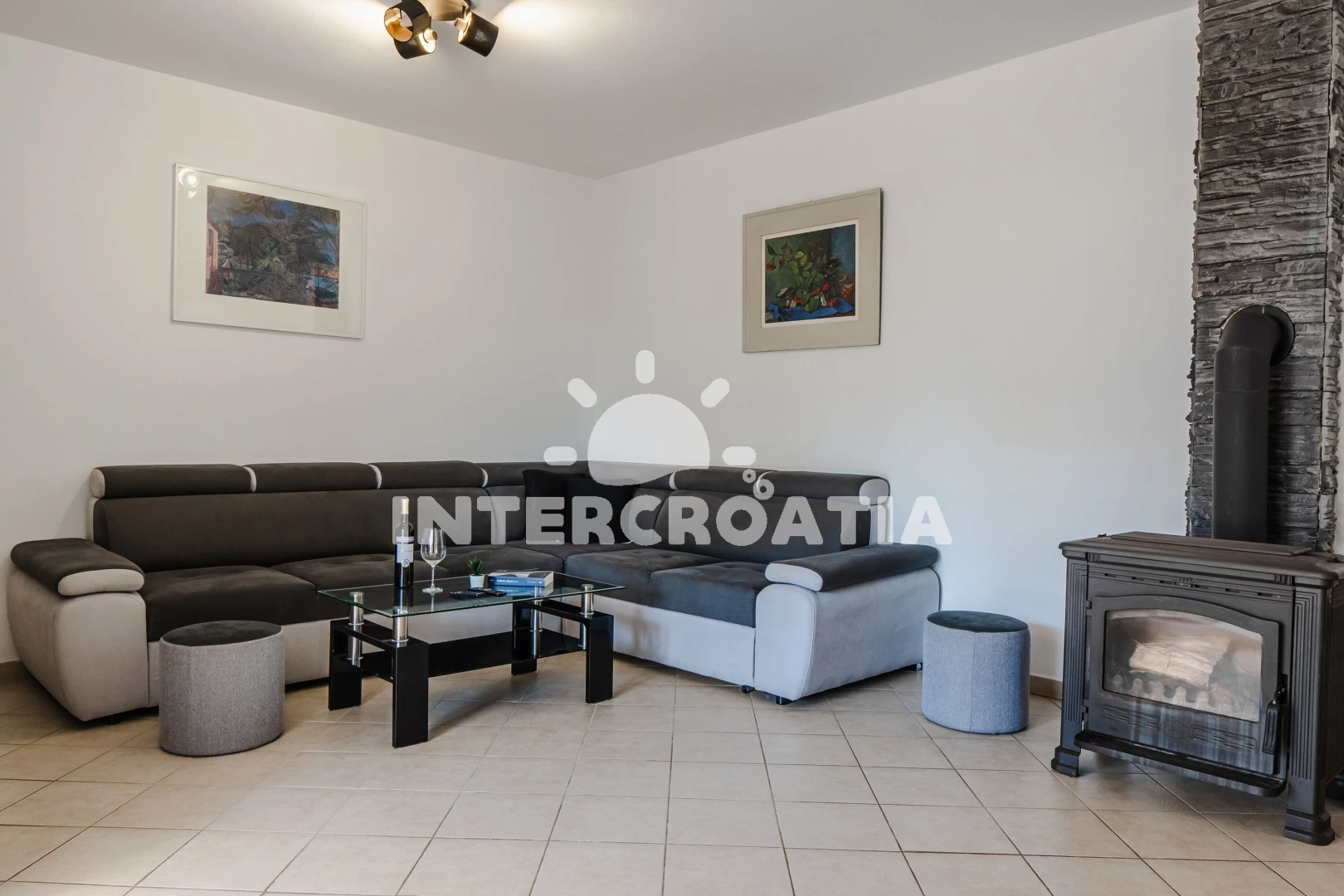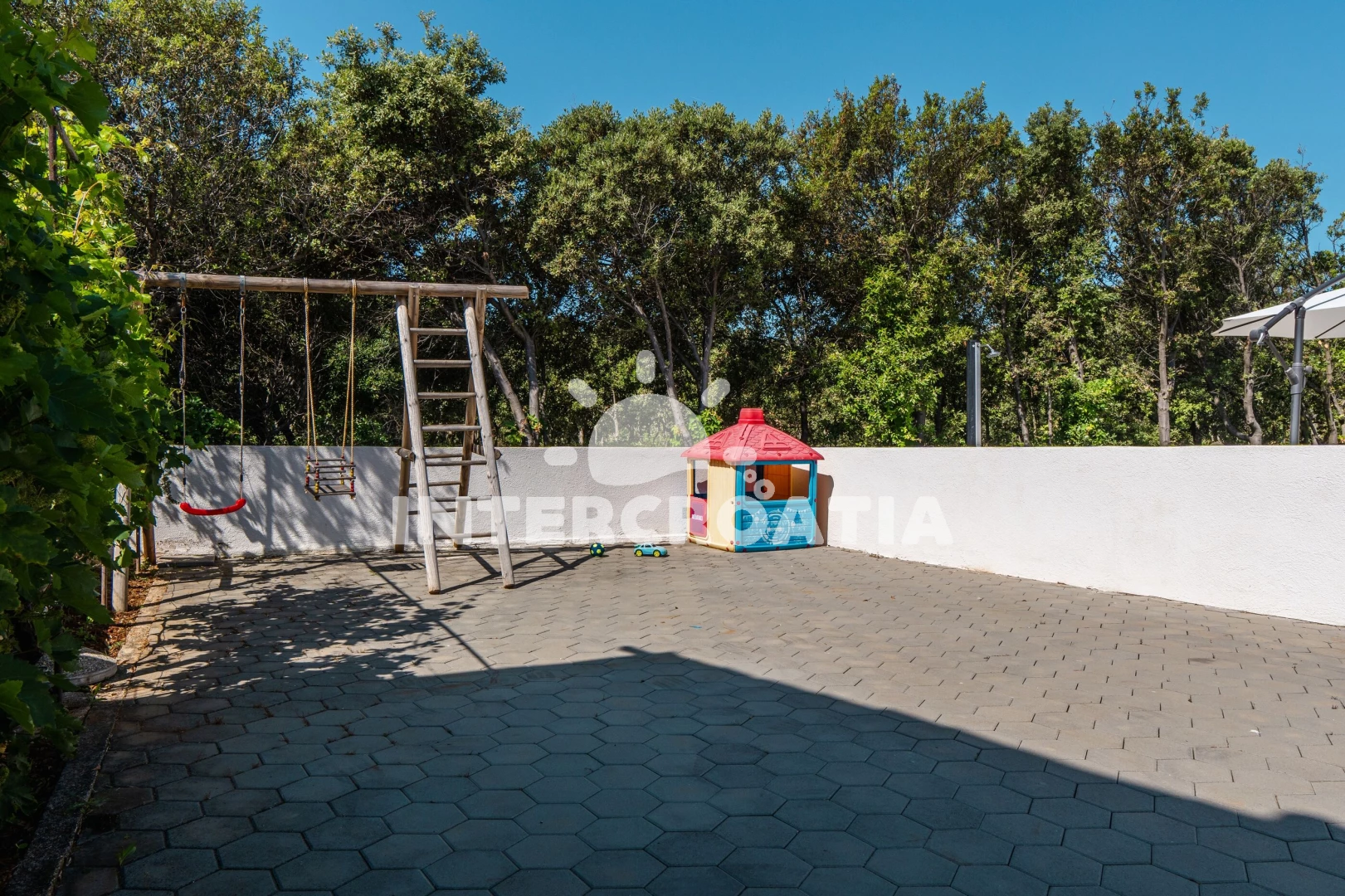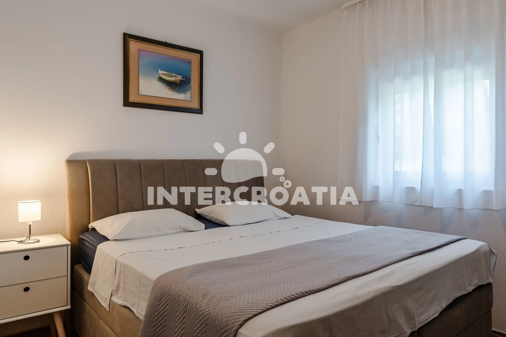 Apartmán se nachází 400 m od moře a pláže. Pláž je kamenné a betonové desky. Apartmán disponuje bazénem s lehátky pro ubytované hosty. U objektu je k dispozici společná zahrada s posezením a grilem. Parkování je před domem.