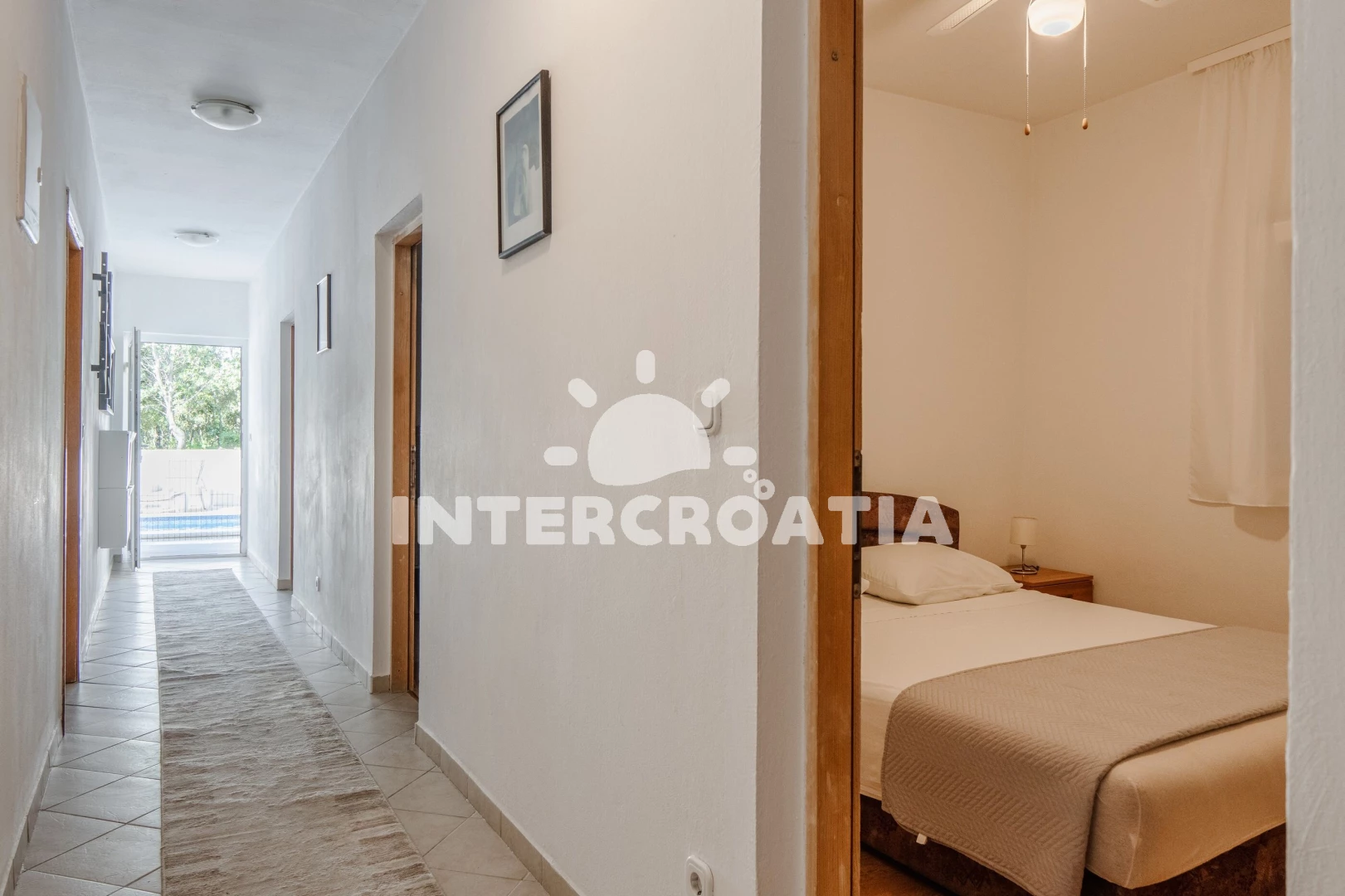 Vzdálenosti: Moře 400 m, pláž 400 m (kamenné a betonové desky), bar 400 m, restaurace 400 m, supermarket 500 m, potápění 1 km, směnárna 1 km, pošta 1 km, centrum 1 km, půjčovna motorových člunů 1 km, půjčovna kol 1 km, lékárna 1 km, diskotéka 1 km, veřejná doprava 1 km, ambulance 1 km, čerpací stanice 3 km, trajekt (Zadar) 30 km, banka 30 km, marina 30 km, letiště (Zadar) 35 km,