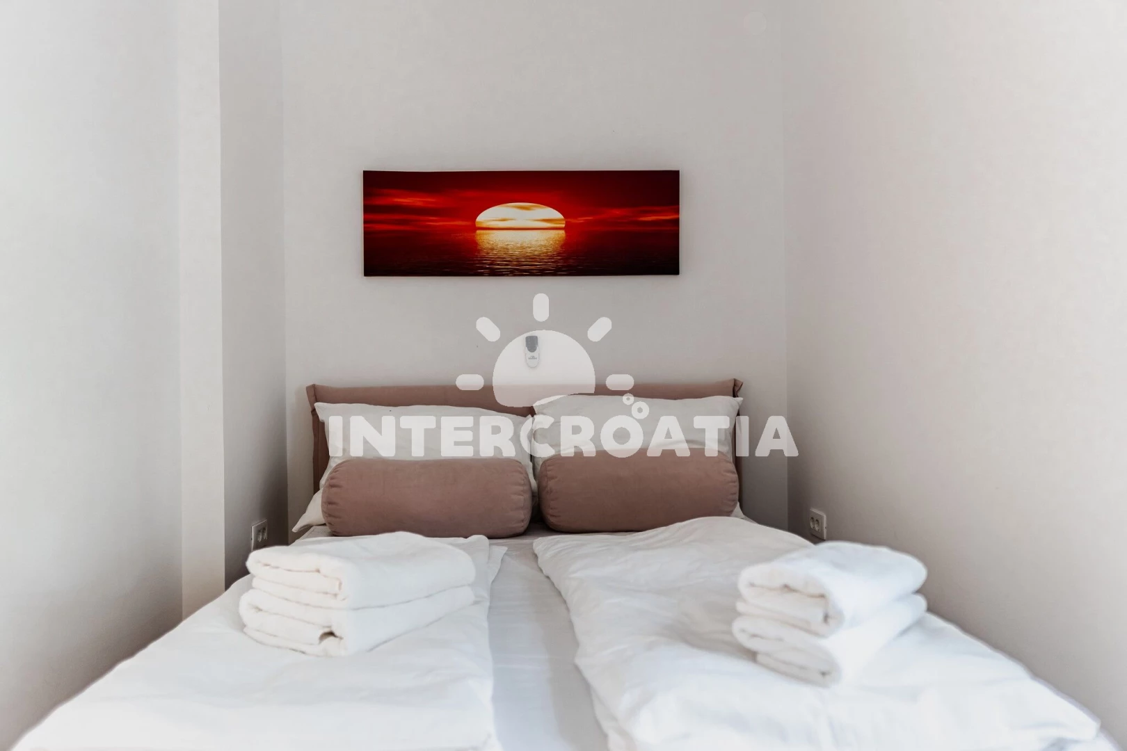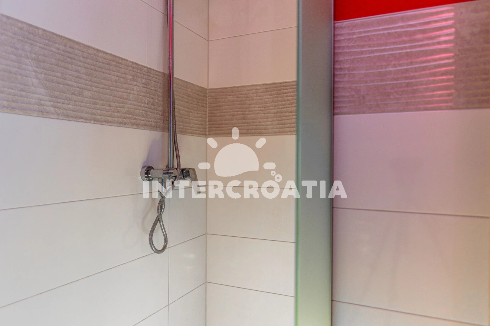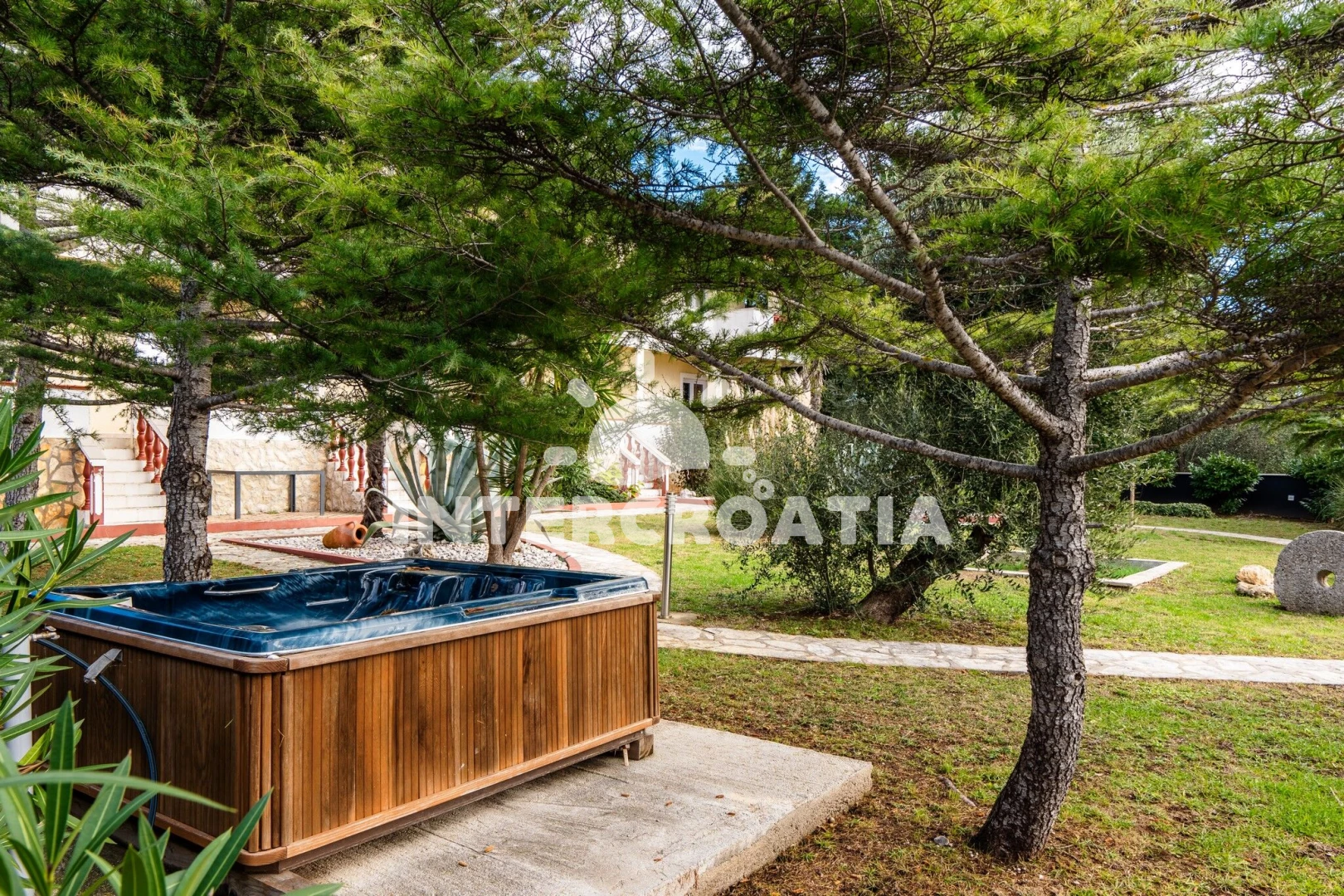 Apartmán se nachází 10 m od moře a pláže. Pláž je kamenné a betonové desky. K dispozici vířivka. U objektu je k dispozici společná zahrada s posezením a grilem. Parkování je před domem.