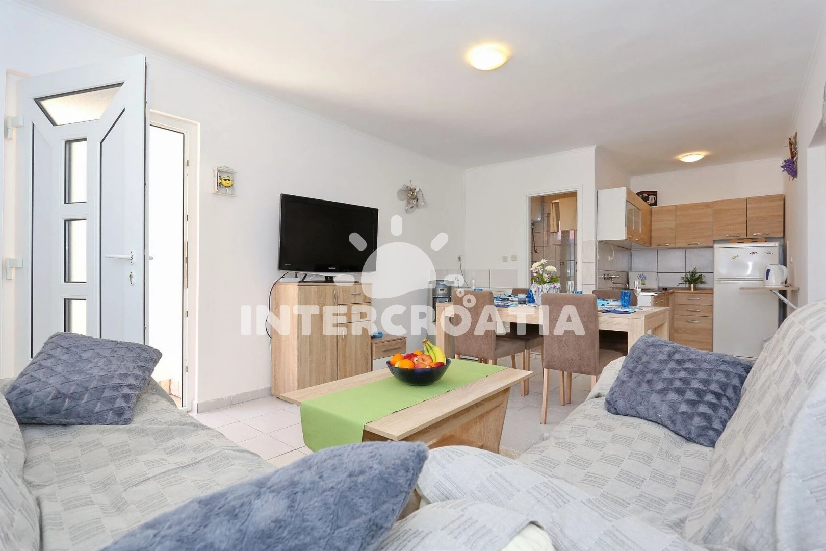 Vzdálenosti: Moře 700 m, pláž 700 m (oblázková a betonové desky), supermarket 600 m, restaurace 700 m, bar 700 m, směnárna 1 km, pošta 1 km, půjčovna kol 1 km, diskotéka 1 km, lékárna 1 km, potápění 1 km, ambulance 1 km, centrum 1 km, veřejná doprava 1 km, čerpací stanice 3 km, banka 30 km, trajekt (Zadar) 30 km, marina 30 km, letiště (Zadar) 35 km,