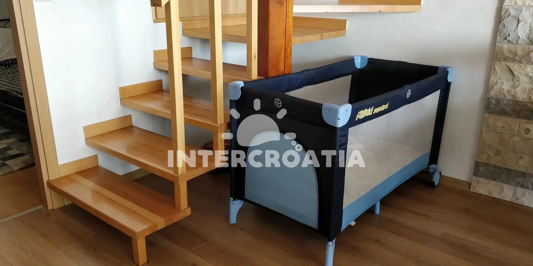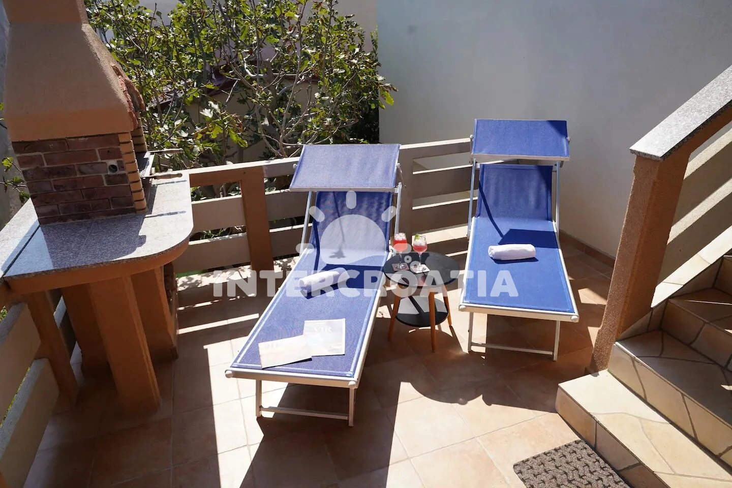 Apartmán se nachází 200 m od moře a pláže. Pláž je oblázková a betonové desky. U objektu je k dispozici společná zahrada s posezením a grilem. Parkování je před domem.