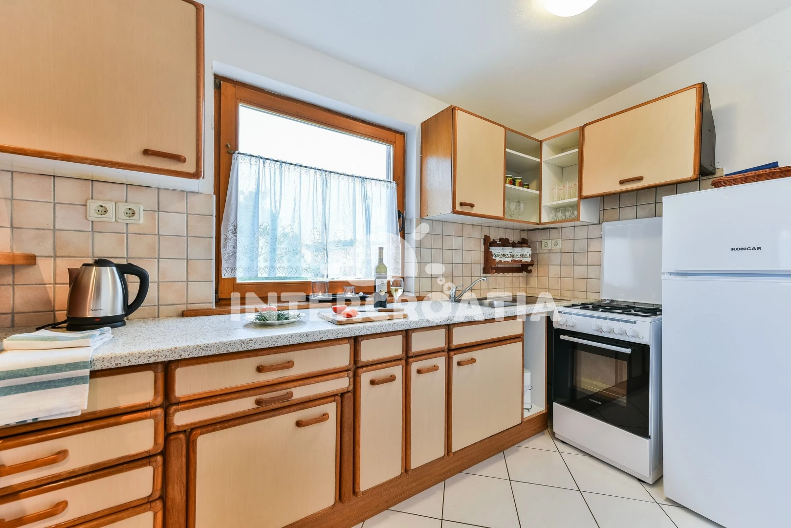 Vzdálenosti: Moře 80 m, pláž 80 m (oblázková a betonové desky), supermarket 100 m, restaurace 300 m, bar 300 m, ambulance 700 m, směnárna 700 m, pošta 700 m, centrum 700 m, diskotéka 700 m, potápění 700 m, lékárna 700 m, čerpací stanice 1 km, banka 7 km, trajekt (Zadar) 30 km, letiště (Zadar) 33 km,