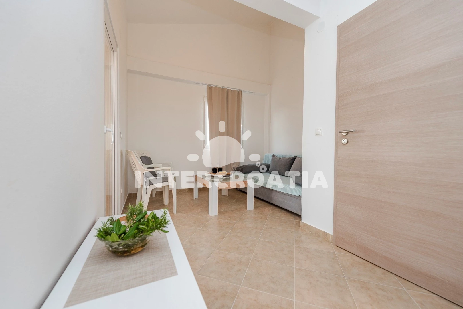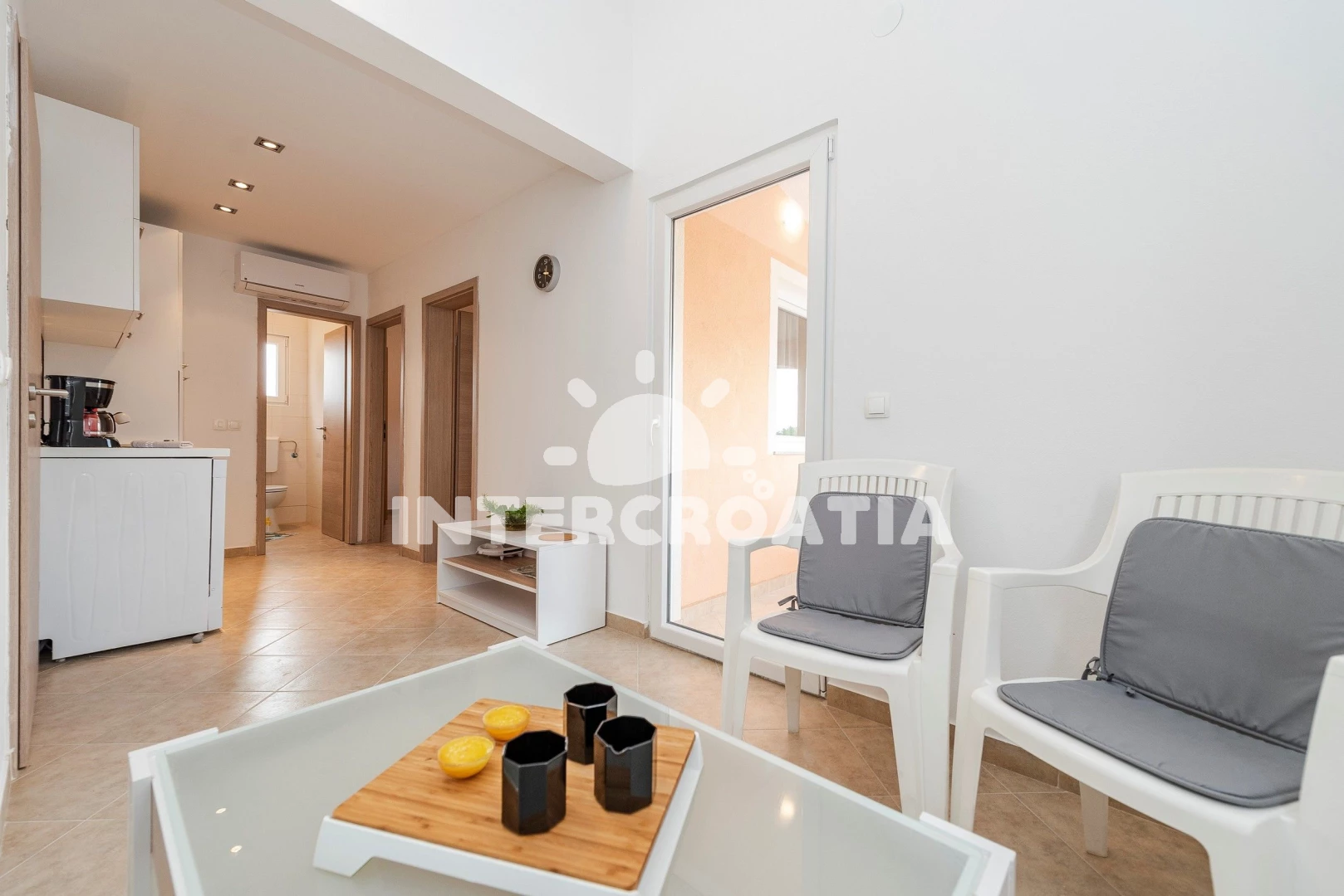 Vzdálenosti: Moře 100 m, pláž 100 m (oblázková a betonové desky), restaurace 100 m, bar 100 m, supermarket 300 m, centrum 800 m, ambulance 800 m, lékárna 800 m, banka 800 m, pošta 800 m, směnárna 800 m, diskotéka 800 m, čerpací stanice 1 km, trajekt (Zadar) 30 km, letiště (Zadar) 33 km,