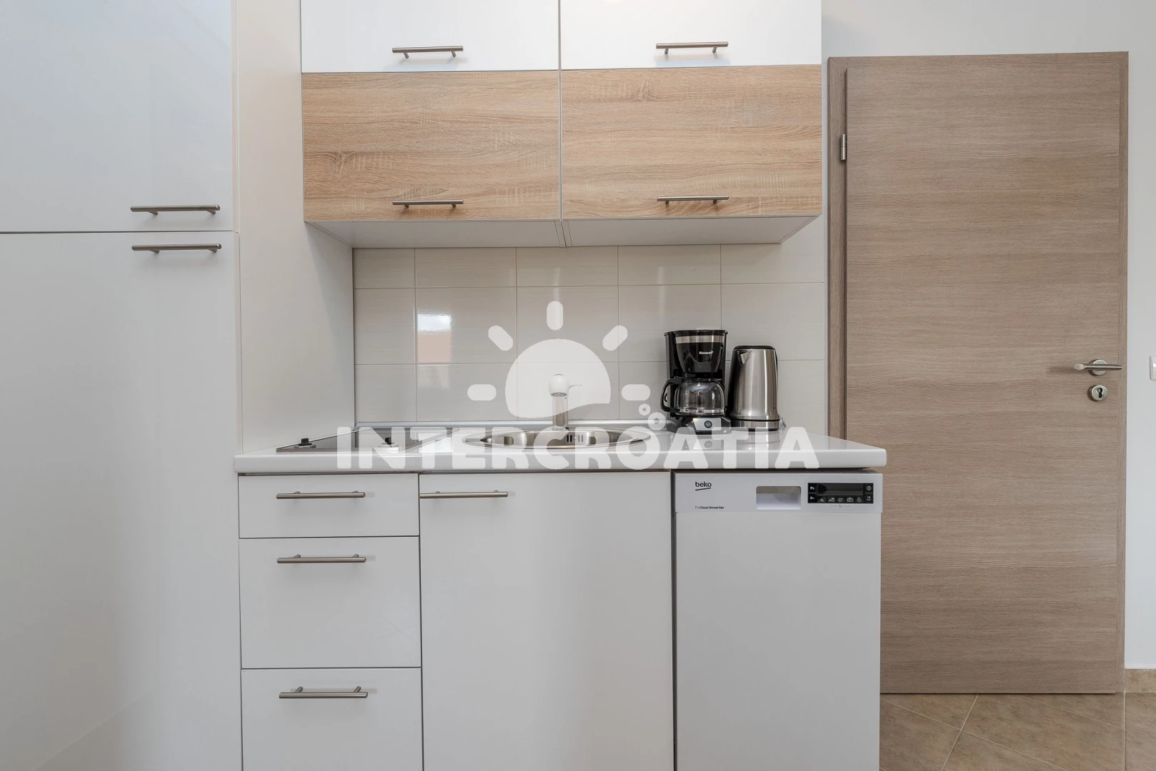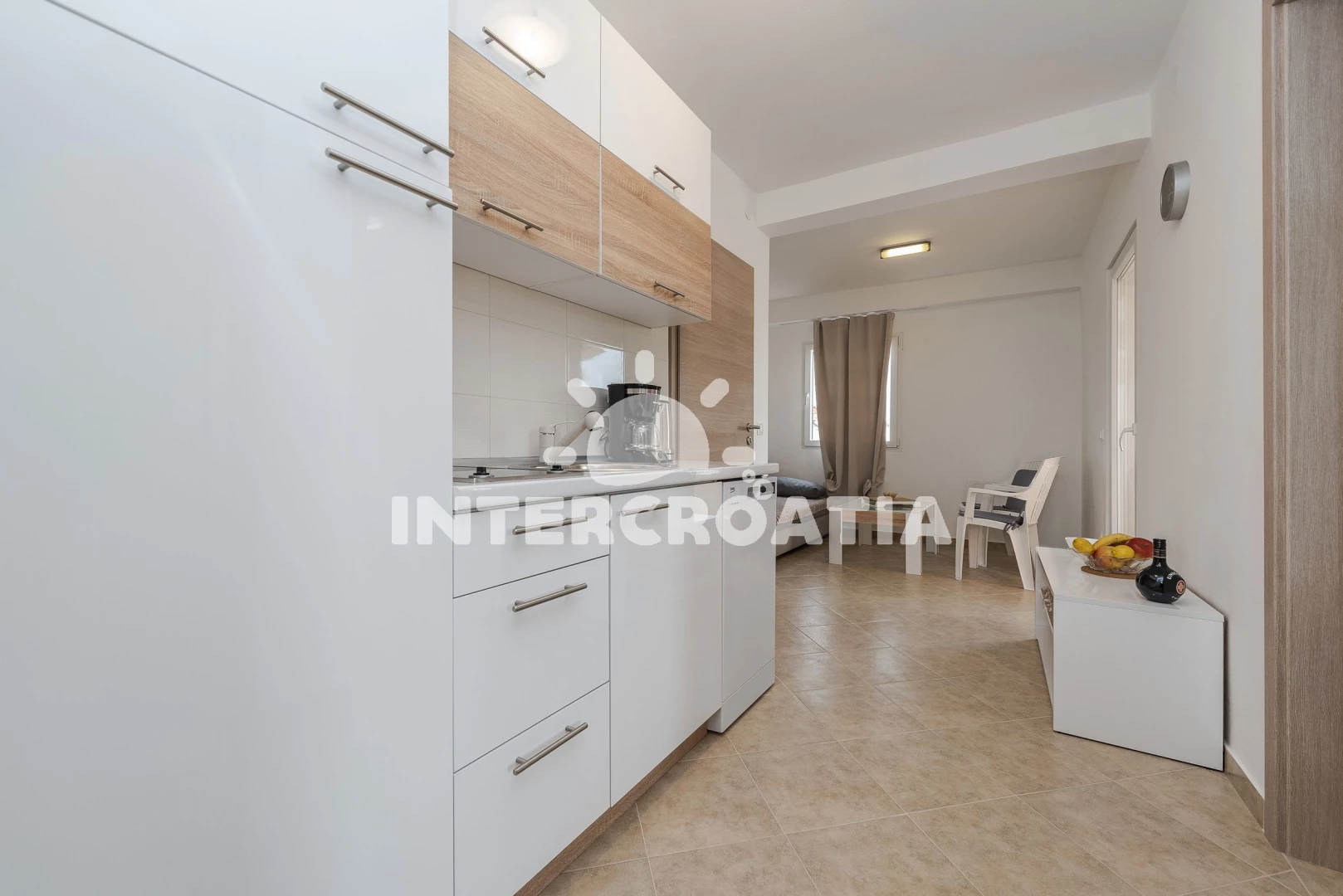 Vzdálenosti: Moře 100 m, pláž 100 m (oblázková a betonové desky), restaurace 100 m, bar 100 m, supermarket 300 m, centrum 800 m, ambulance 800 m, lékárna 800 m, banka 800 m, pošta 800 m, směnárna 800 m, diskotéka 800 m, čerpací stanice 1 km, trajekt (Zadar) 30 km, letiště (Zadar) 33 km,