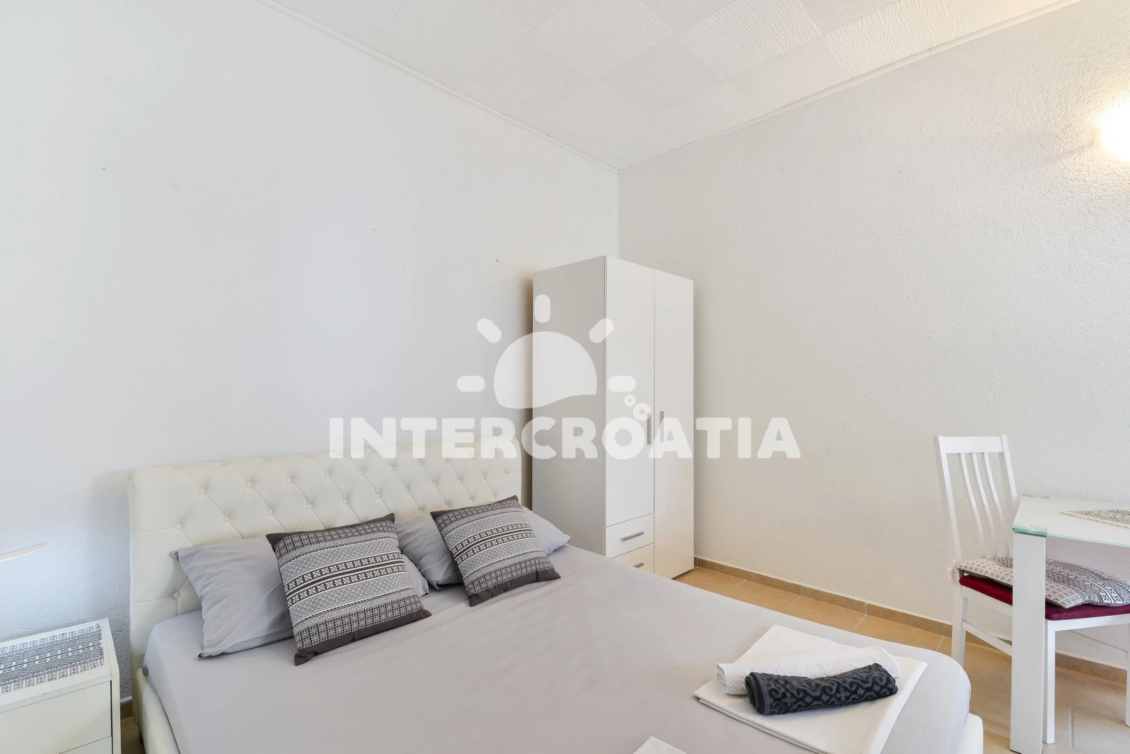 Apartmán se nachází 100 m od moře a pláže. Pláž je oblázková a betonové desky. U objektu je k dispozici společná zahrada s posezením a grilem. Parkování je před domem.