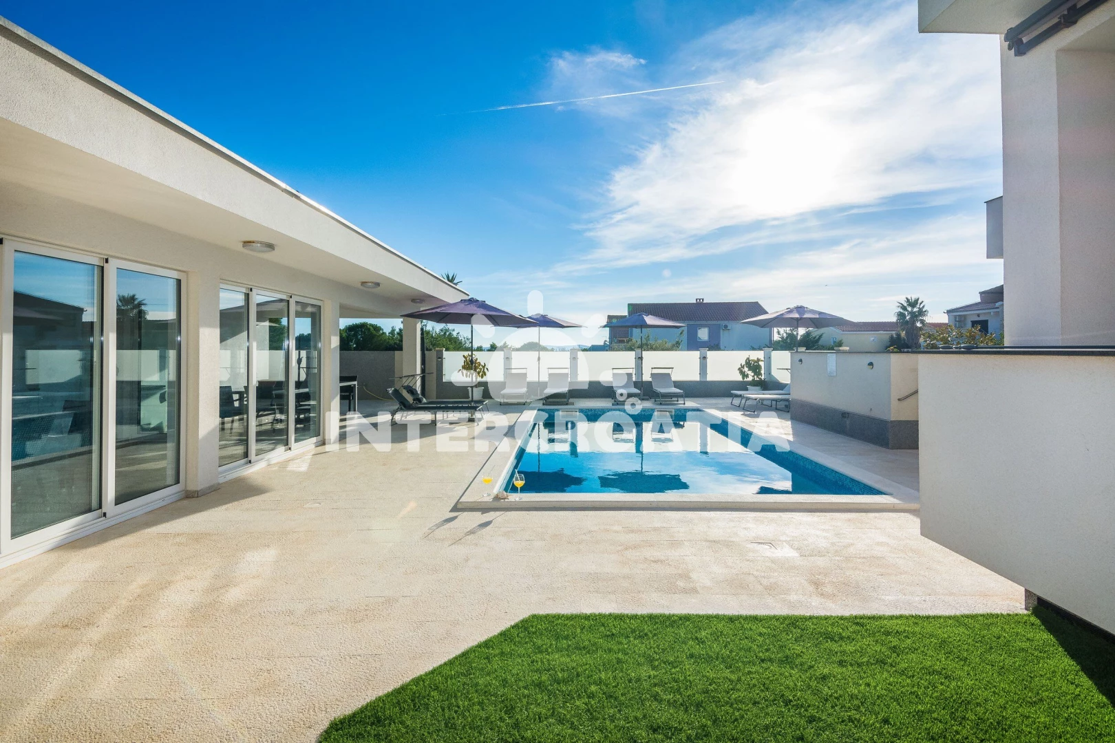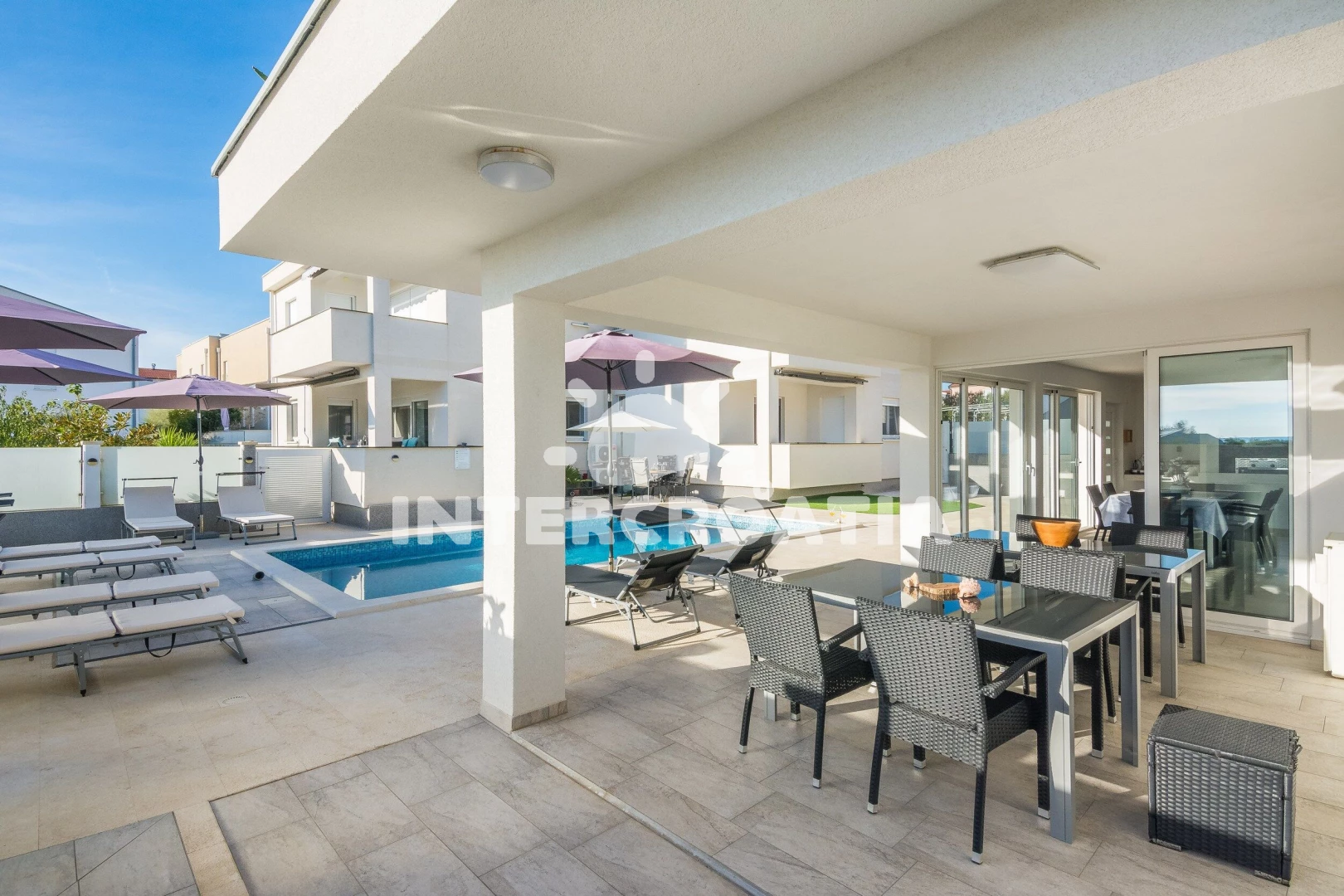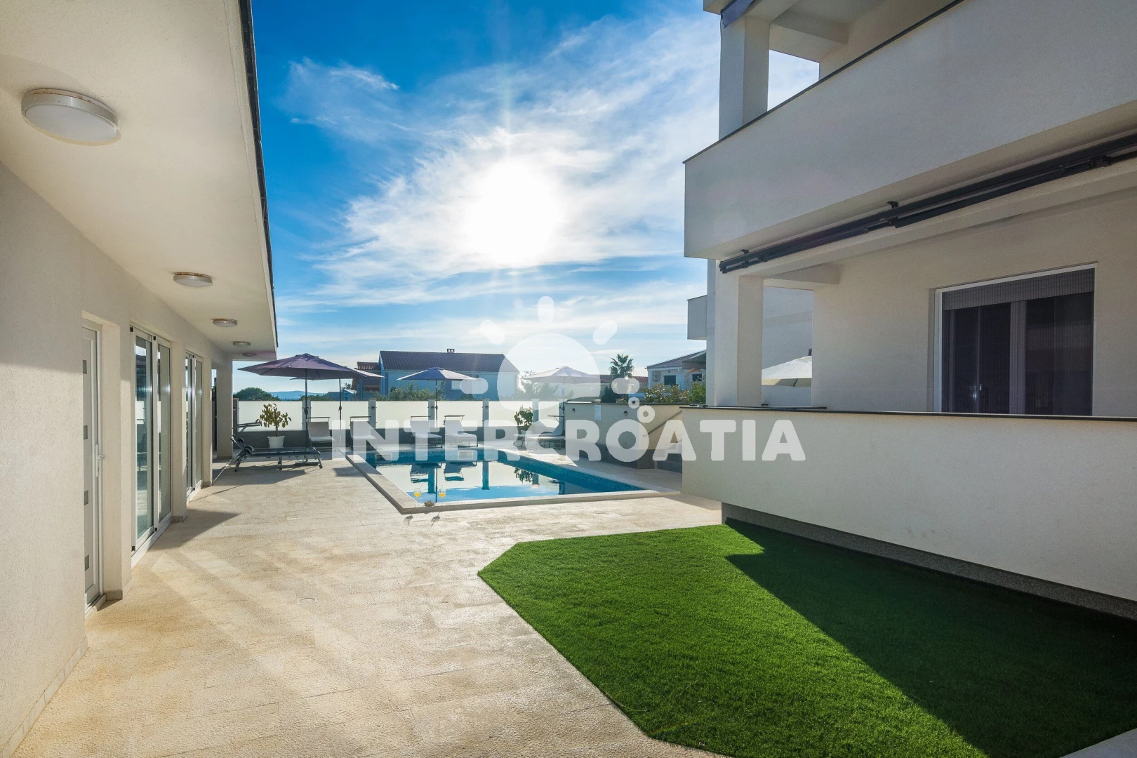 Vzdálenosti: Moře 200 m, pláž 200 m (oblázková a betonové desky), restaurace 200 m, supermarket 200 m, čerpací stanice 1 km, pošta 2 km, centrum 2 km, lékárna 2 km, potápění 2 km, bar 2 km, ambulance 2 km, směnárna 2 km, diskotéka 2 km, banka 11 km, trajekt (Zadar) 30 km, letiště (Zadar) 35 km,