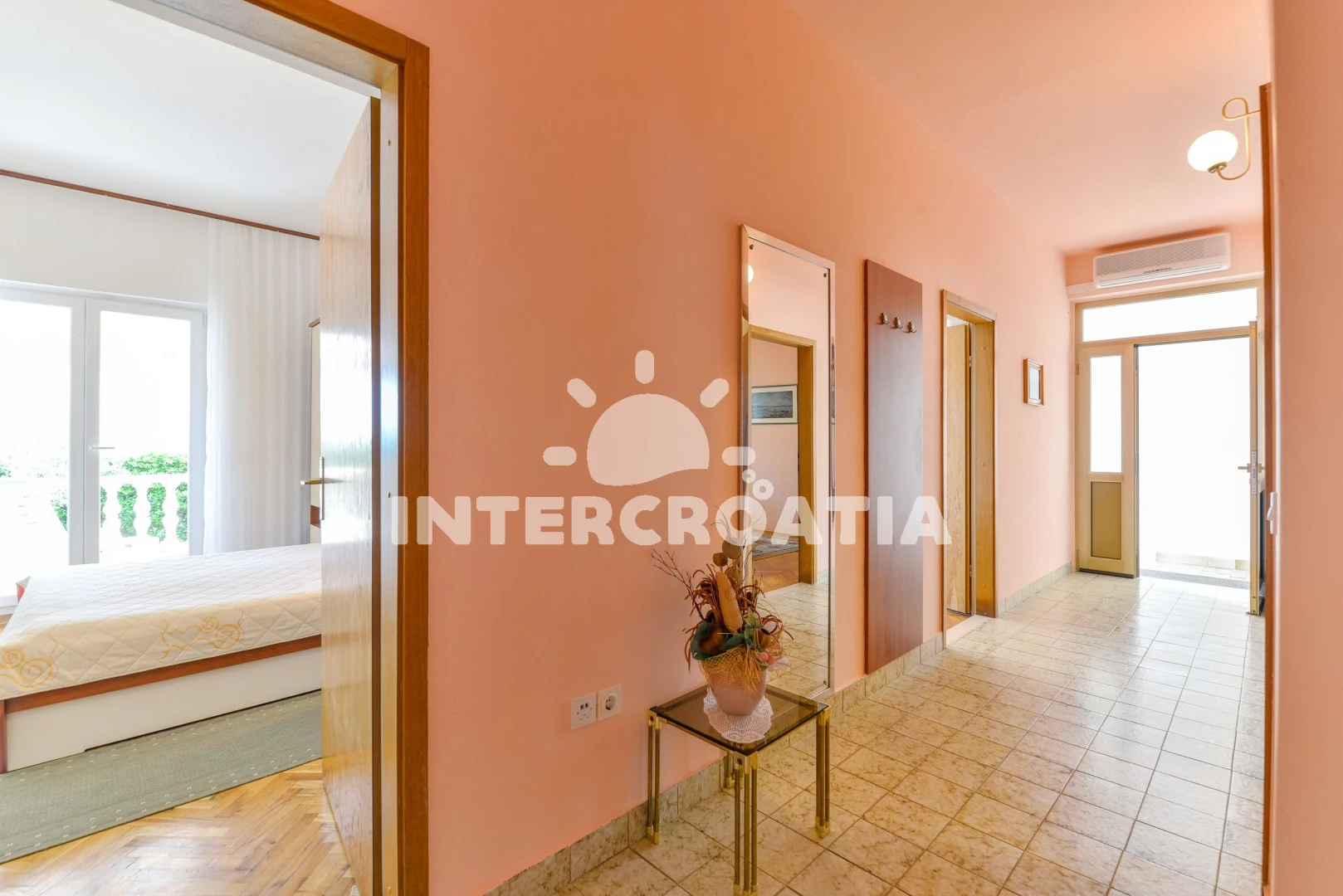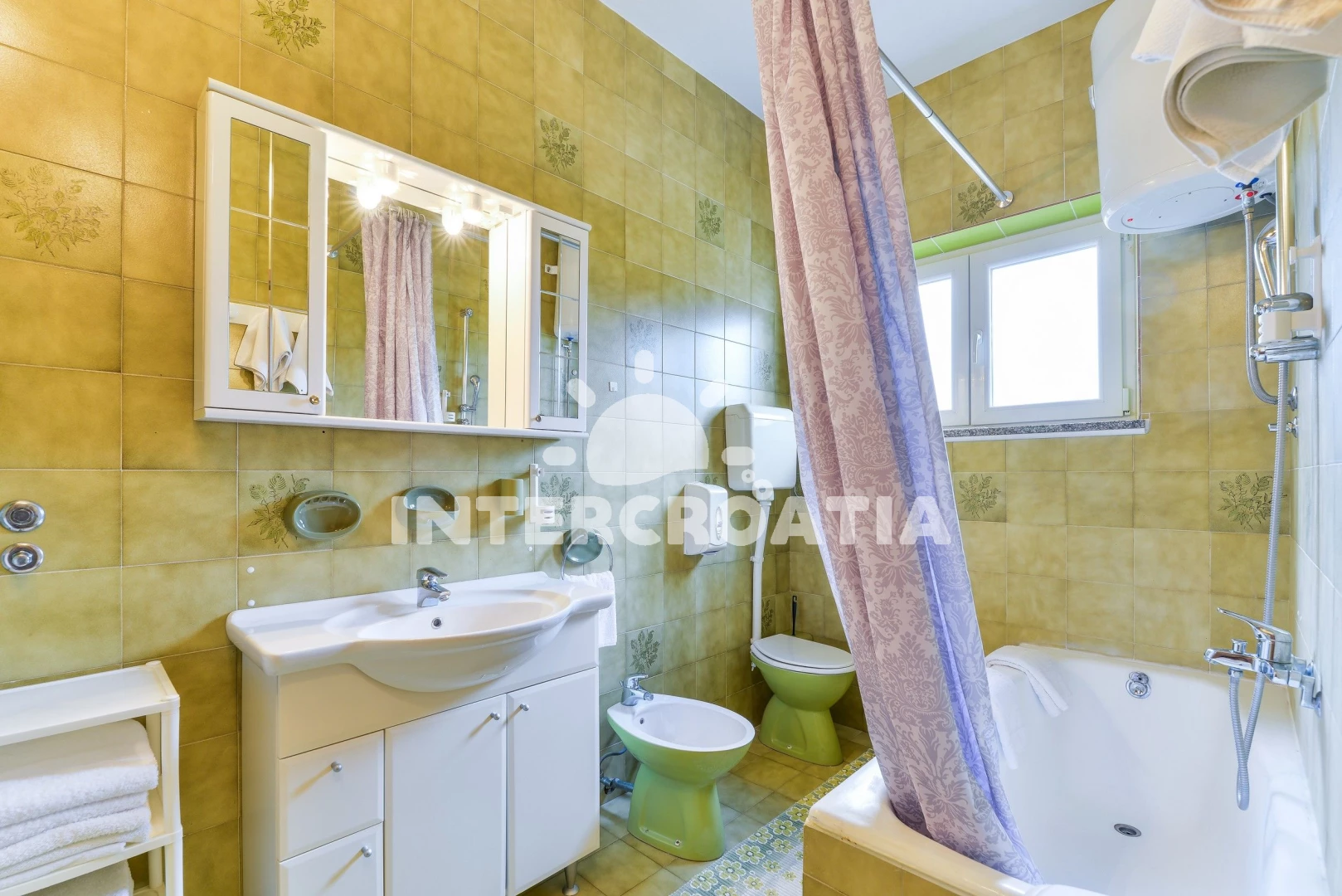 Vzdálenosti: Moře 20 m, pláž 20 m (oblázková a betonové desky), bar 20 m, restaurace 50 m, ambulance 250 m, lékárna 250 m, supermarket 250 m, pošta 250 m, diskotéka 250 m, potápění 250 m, směnárna 250 m, centrum 250 m, čerpací stanice 1 km, banka 11 km, trajekt (Zadar) 30 km, letiště (Zadar) 35 km,