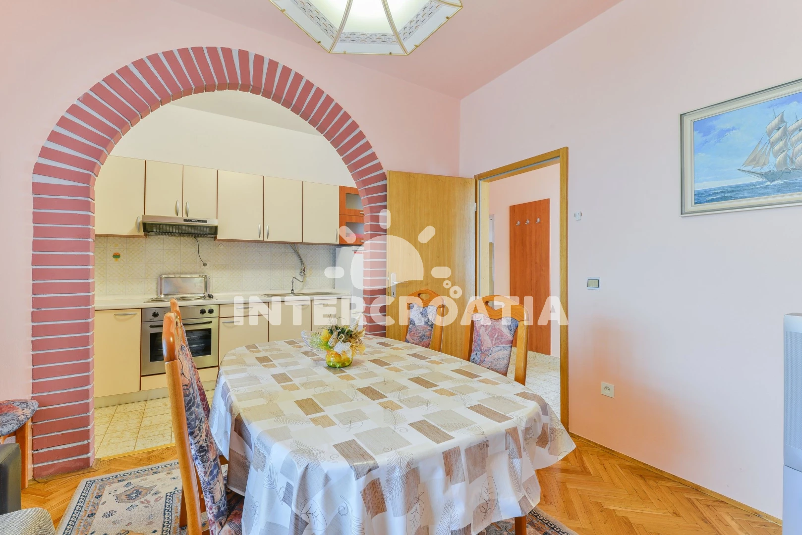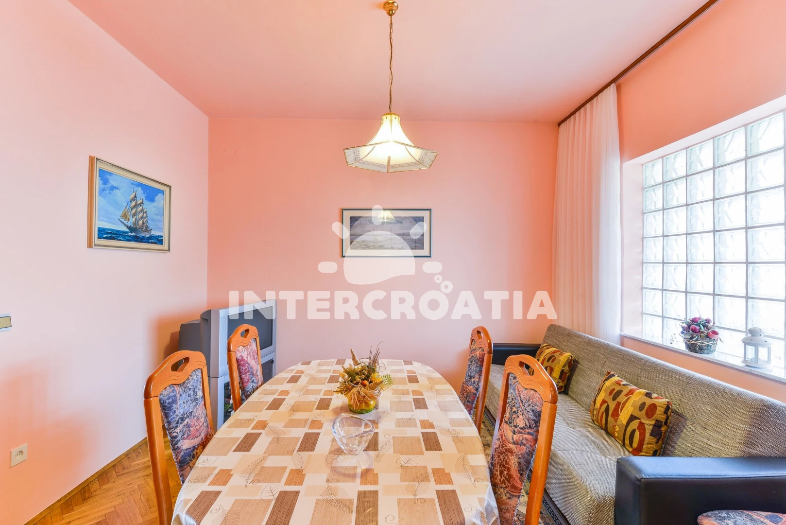 Apartmán se nachází 20 m od moře a pláže. Pláž je oblázková a betonové desky. U objektu je k dispozici společná zahrada s posezením a grilem. Parkování je před domem.