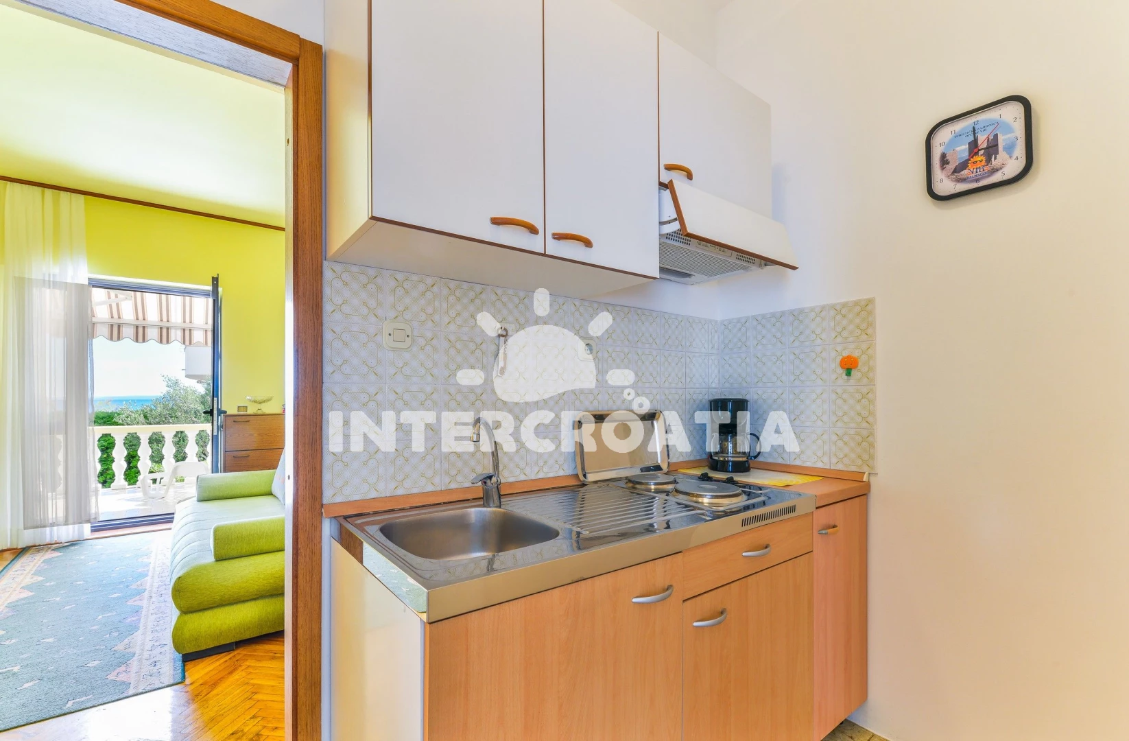 Apartmán (38 m2) s balkonem, s terasou, a výhledem na moře. Nachází se v přízemí objektu. Apartmán má 1 ložnici a je vhodný pro až 2 osoby. Kuchyňská linka je vybavena varnou deskou, kávovarem, toustovačem, mikrovlnnou troubou, rychlovarnou konvicí, nádobím, lednicí, mrazákem. K dispozici televize se satelitním programem, žehlička. Ložnice s dvoulůžkem. Koupelna se sprchovým koutem, umyvadlem, fénem a WC.