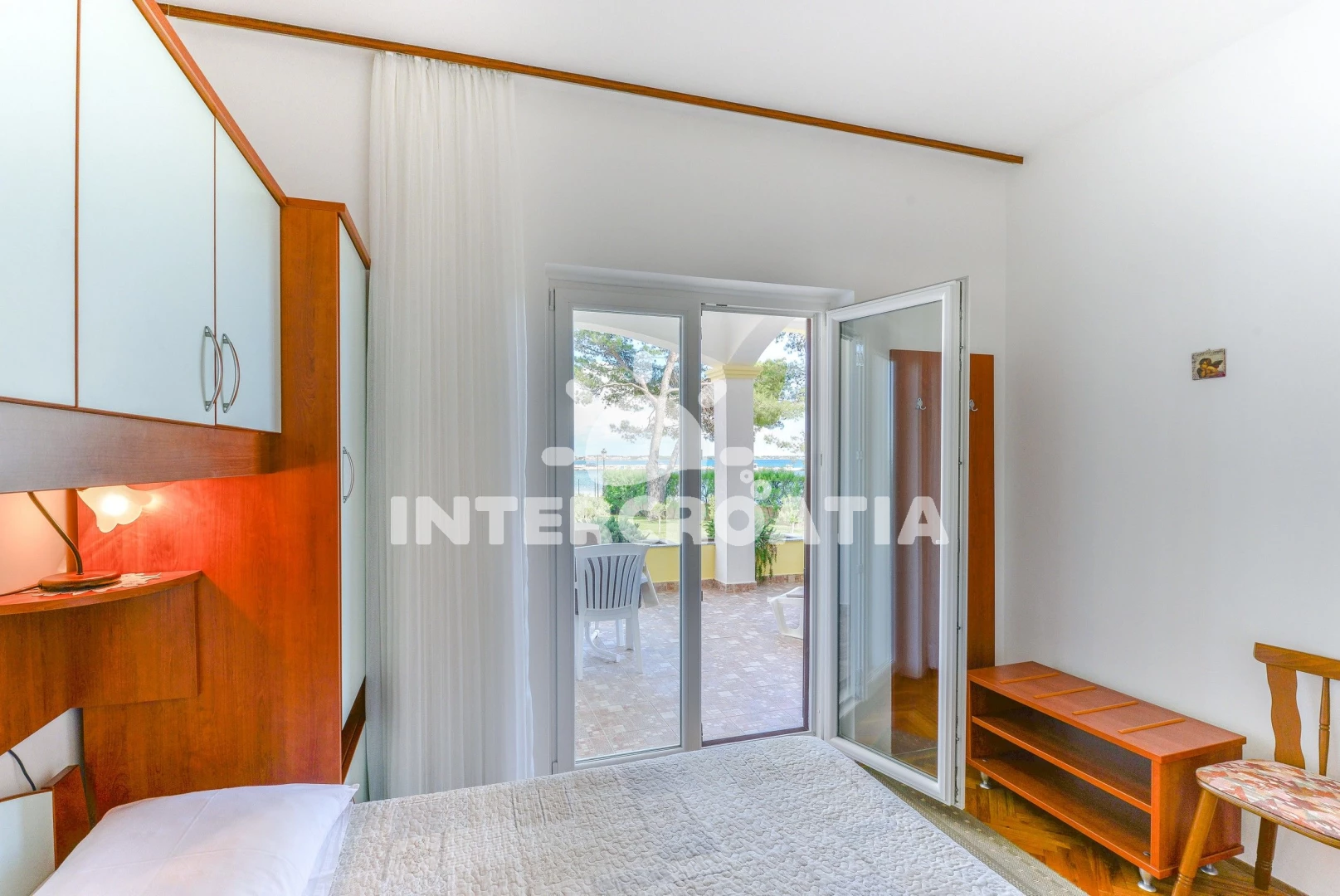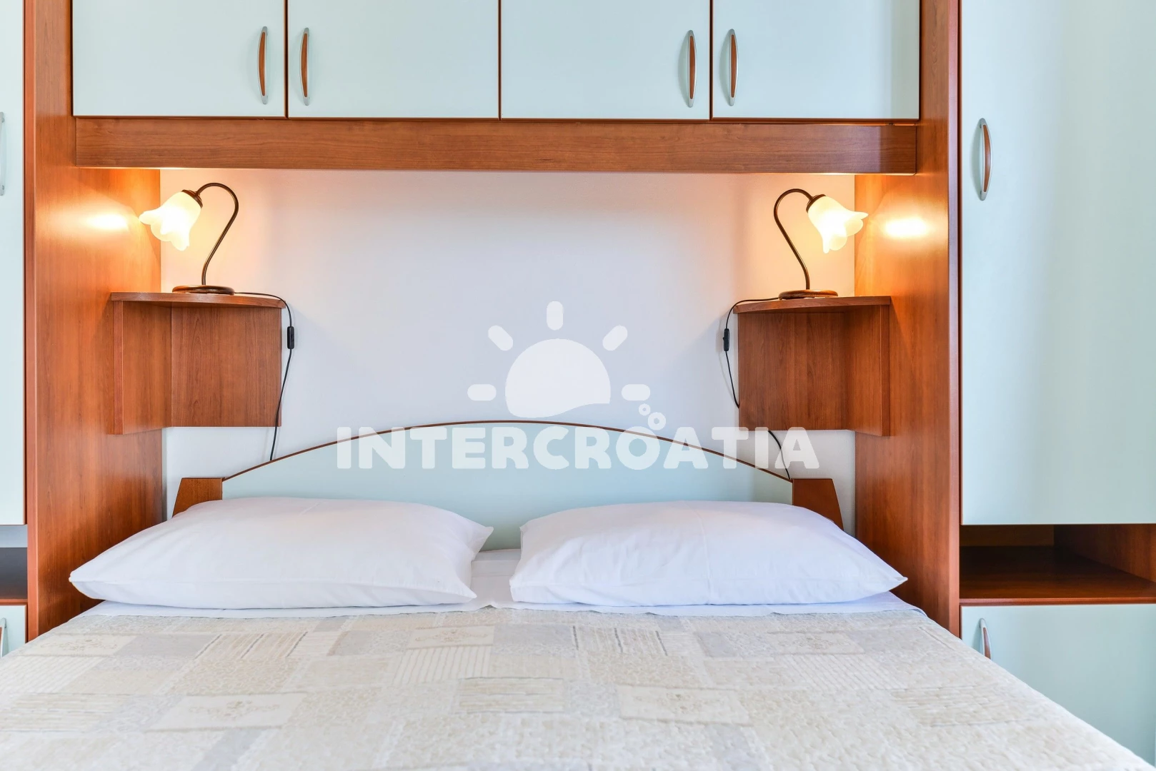 Vzdálenosti: Moře 20 m, pláž 20 m (oblázková a betonové desky), bar 20 m, restaurace 50 m, ambulance 250 m, lékárna 250 m, supermarket 250 m, pošta 250 m, diskotéka 250 m, potápění 250 m, směnárna 250 m, centrum 250 m, čerpací stanice 1 km, banka 11 km, trajekt (Zadar) 30 km, letiště (Zadar) 35 km,