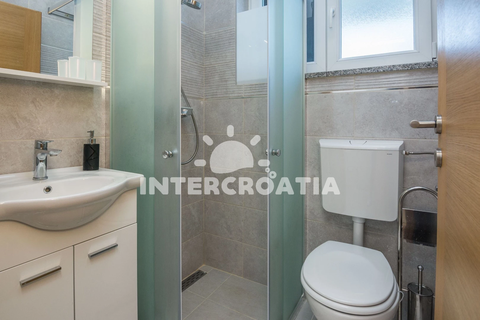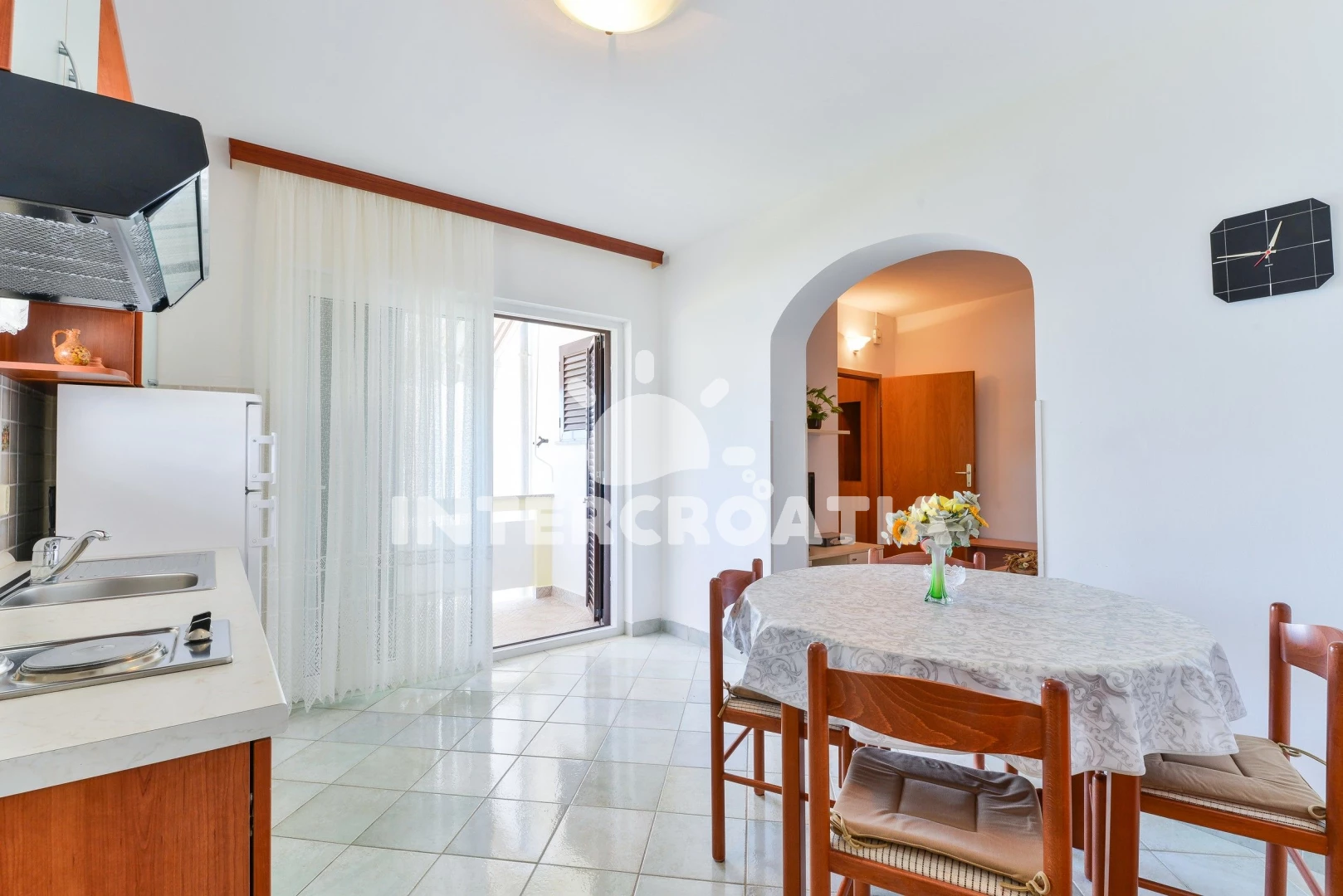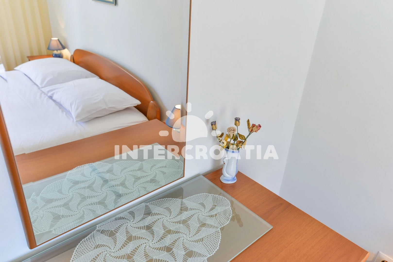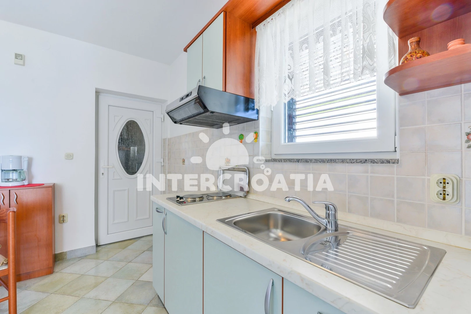 Vzdálenosti: Moře 20 m, pláž 20 m (oblázková a betonové desky), bar 20 m, restaurace 50 m, ambulance 250 m, lékárna 250 m, supermarket 250 m, pošta 250 m, diskotéka 250 m, potápění 250 m, směnárna 250 m, centrum 250 m, čerpací stanice 1 km, banka 11 km, trajekt (Zadar) 30 km, letiště (Zadar) 35 km,