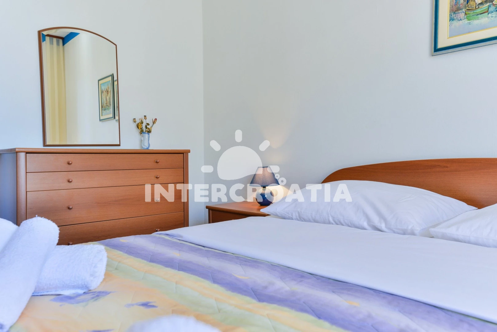 Apartmán (38 m2) s balkonem, a výhledem na moře. Nachází se v 1. patře objektu. Apartmán má 1 ložnici a je vhodný pro až 4 osoby. Kuchyňská linka je vybavena varnou deskou, kávovarem, toustovačem, mikrovlnnou troubou, rychlovarnou konvicí, nádobím, lednicí, mrazákem. V obývací místnosti je rozložitelná pohovka (extra lůžko pro 2 osoby). K dispozici televize se satelitním programem, žehlička. Ložnice s dvoulůžkem. Koupelna se sprchovým koutem, umyvadlem, fénem a WC.