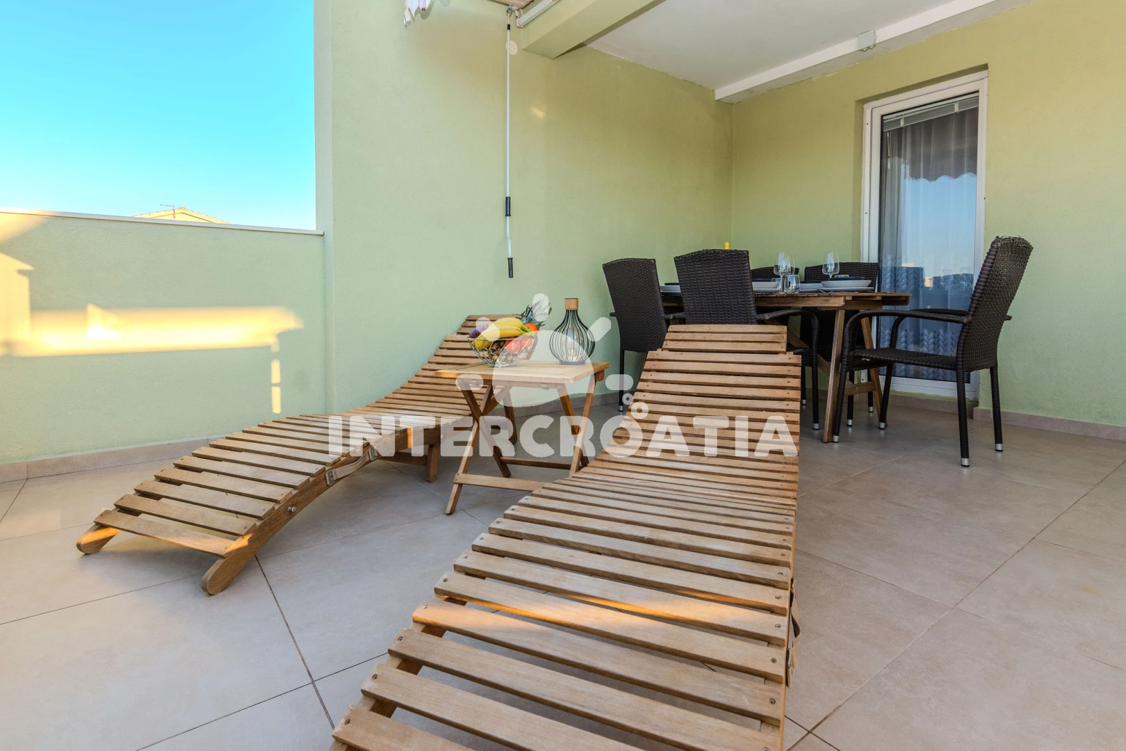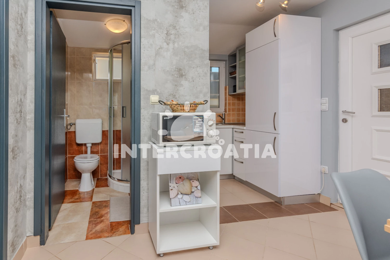 Vzdálenosti: Moře 200 m, pláž 200 m (oblázková a betonové desky), bar 200 m, supermarket 500 m, restaurace 500 m, veřejná doprava 1 km, čerpací stanice 1 km, centrum 3 km, lékárna 3 km, ambulance 3 km, pošta 3 km, trajekt (Zadar) 30 km, letiště (Zadar) 35 km,