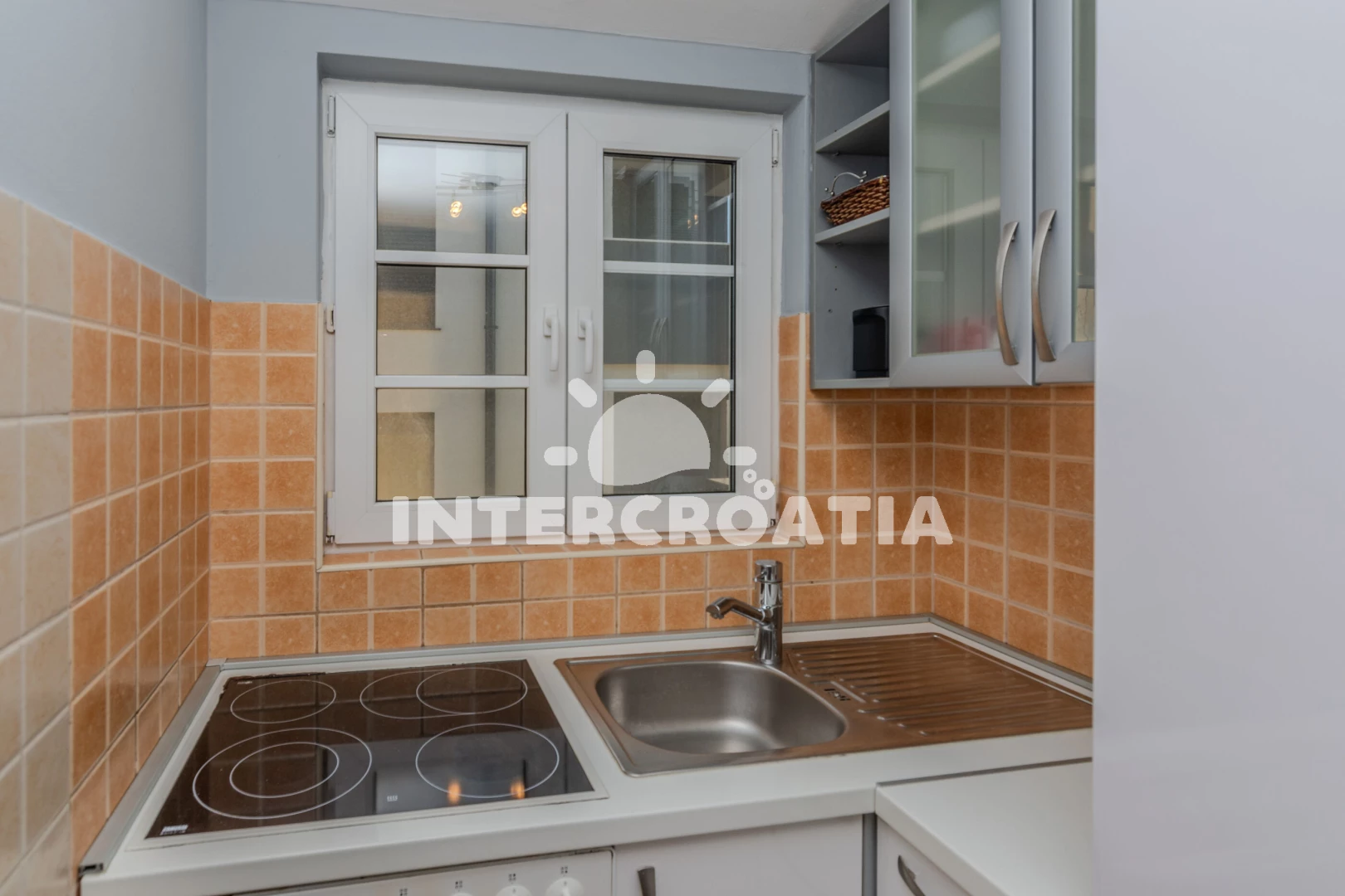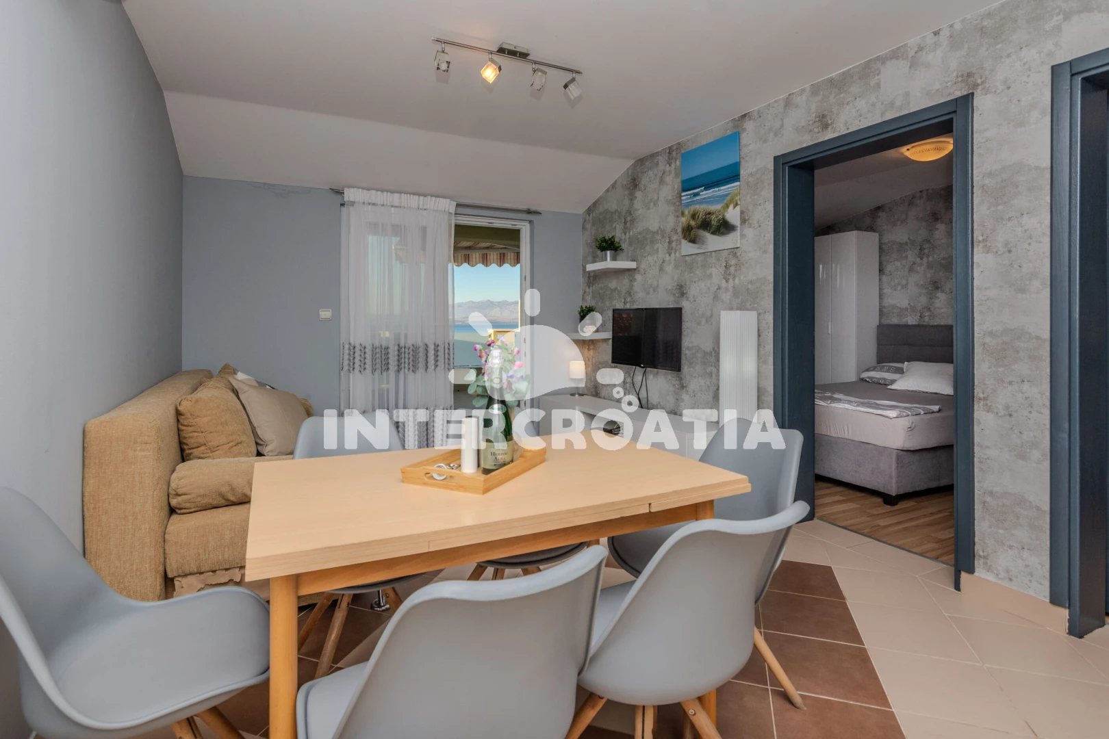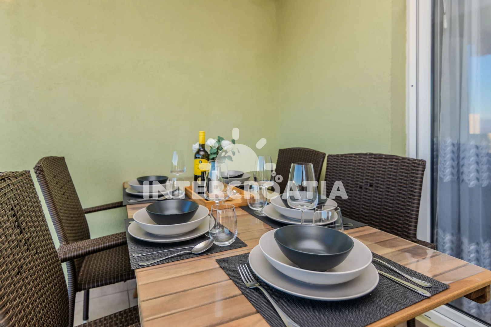 Apartmán se nachází 200 m od moře a pláže. Pláž je oblázková a betonové desky. U objektu je k dispozici společná zahrada s posezením a grilem. Parkování je před domem.