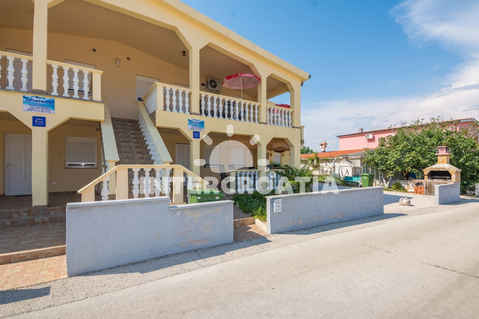 Vzdálenosti: Moře 70 m, pláž 70 m (oblázková a betonové desky), supermarket 500 m, restaurace 500 m, bar 500 m, směnárna 500 m, čerpací stanice 1 km, diskotéka 2,5 km, centrum 2,5 km, pošta 2,5 km, ambulance 2,5 km, lékárna 2,5 km, potápění 3 km, muzeum 11 km, trajekt (Zadar) 30 km, letiště (Zadar) 35 km, park Plitvice 150 km,