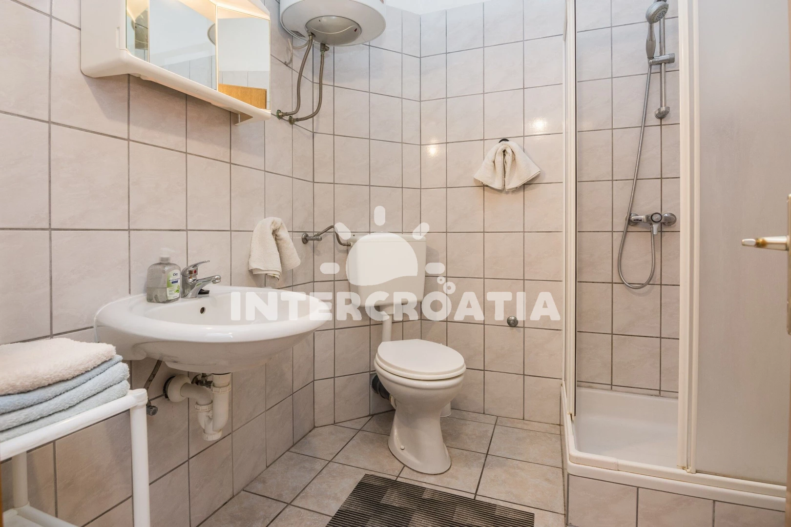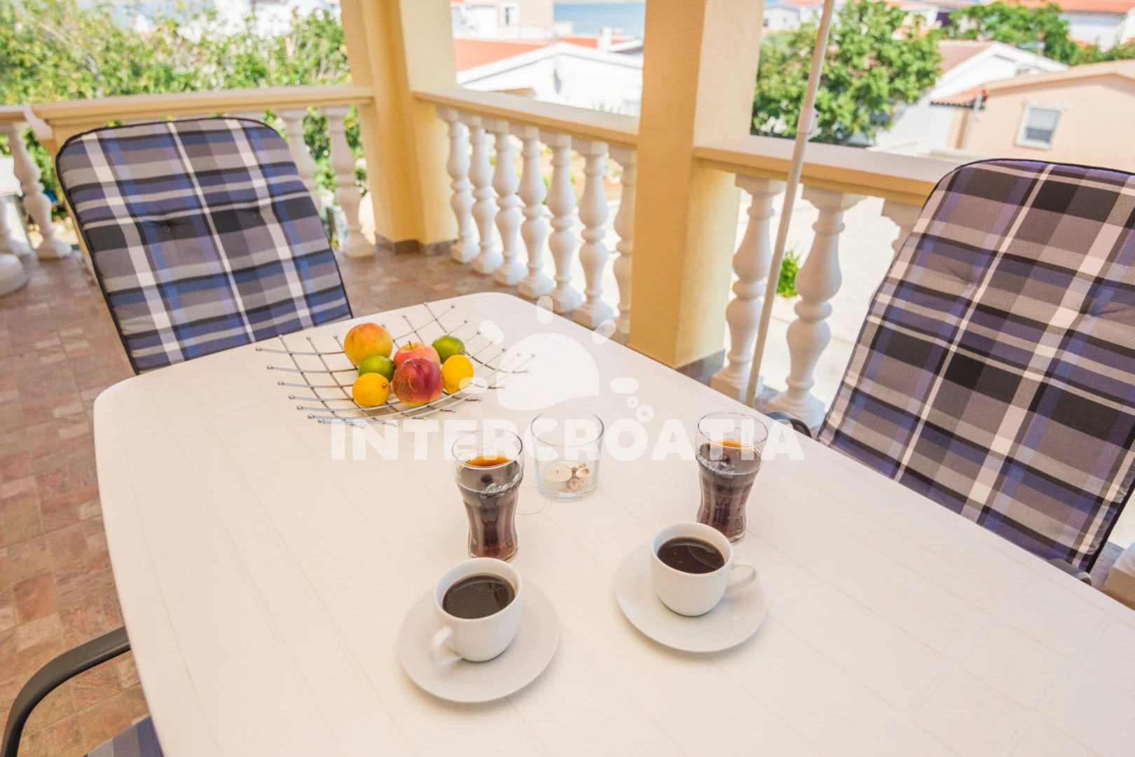 Apartmán se nachází 70 m od moře a pláže. Pláž je oblázková a betonové desky. U objektu je k dispozici společná zahrada s posezením a grilem. Parkování je před domem.