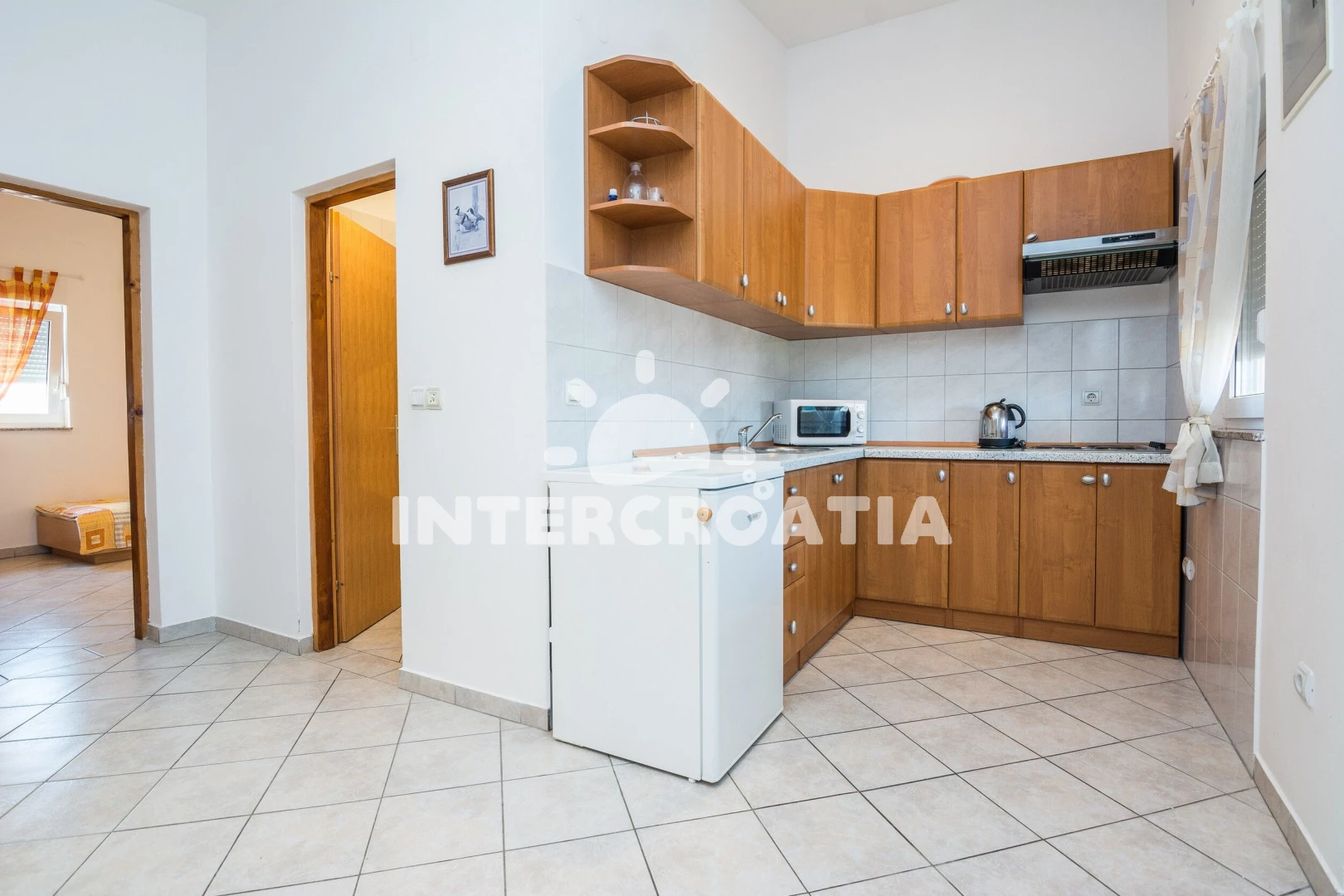 Vzdálenosti: Moře 70 m, pláž 70 m (oblázková a betonové desky), supermarket 500 m, restaurace 500 m, bar 500 m, směnárna 500 m, čerpací stanice 1 km, diskotéka 2,5 km, centrum 2,5 km, pošta 2,5 km, ambulance 2,5 km, lékárna 2,5 km, potápění 3 km, muzeum 11 km, trajekt (Zadar) 30 km, letiště (Zadar) 35 km, park Plitvice 150 km,