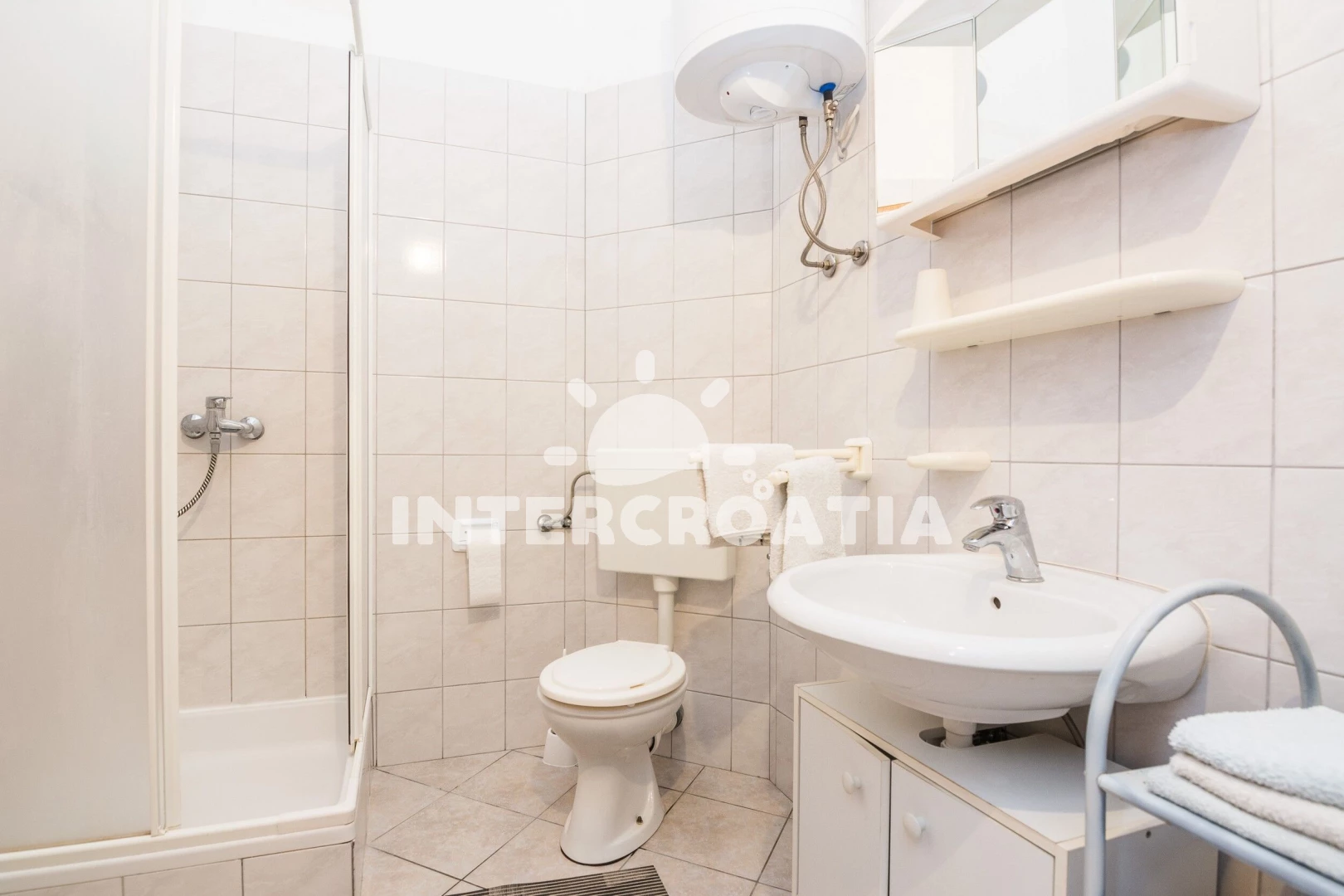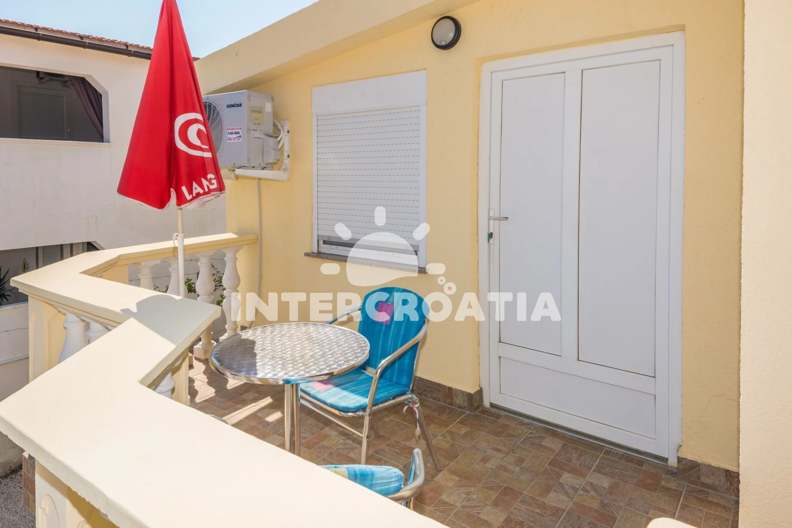 Apartmán se nachází 70 m od moře a pláže. Pláž je oblázková a betonové desky. U objektu je k dispozici společná zahrada s posezením a grilem. Parkování je před domem.