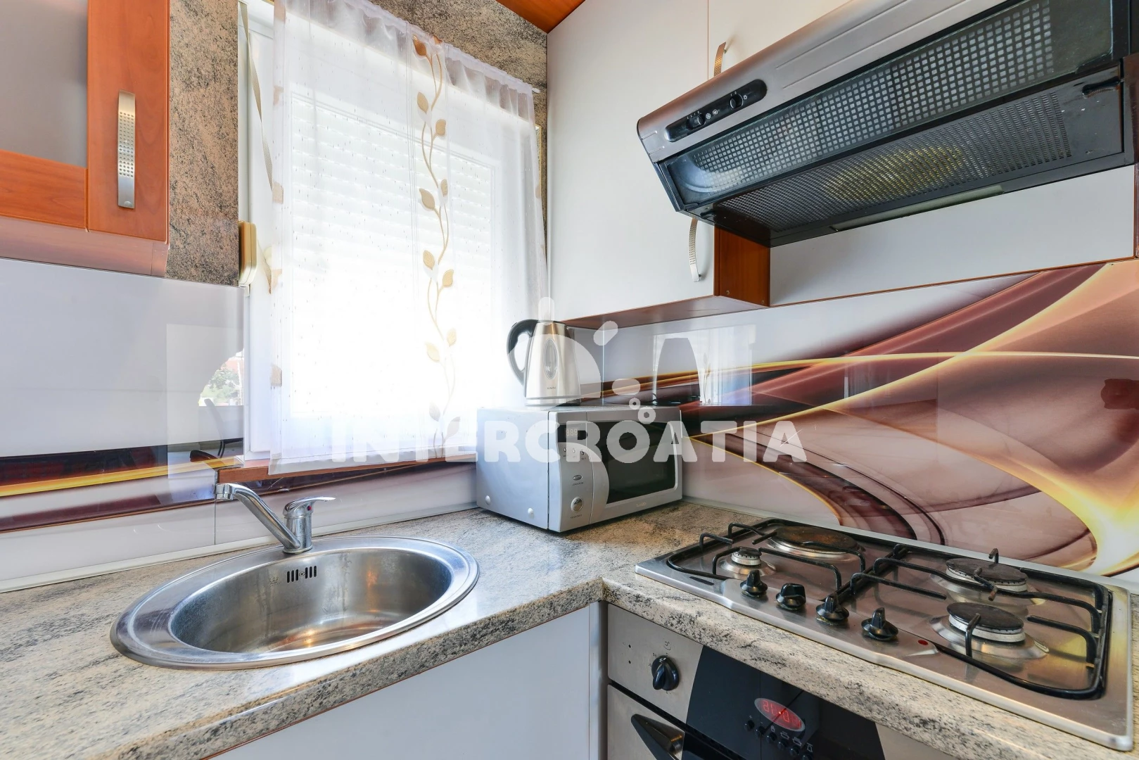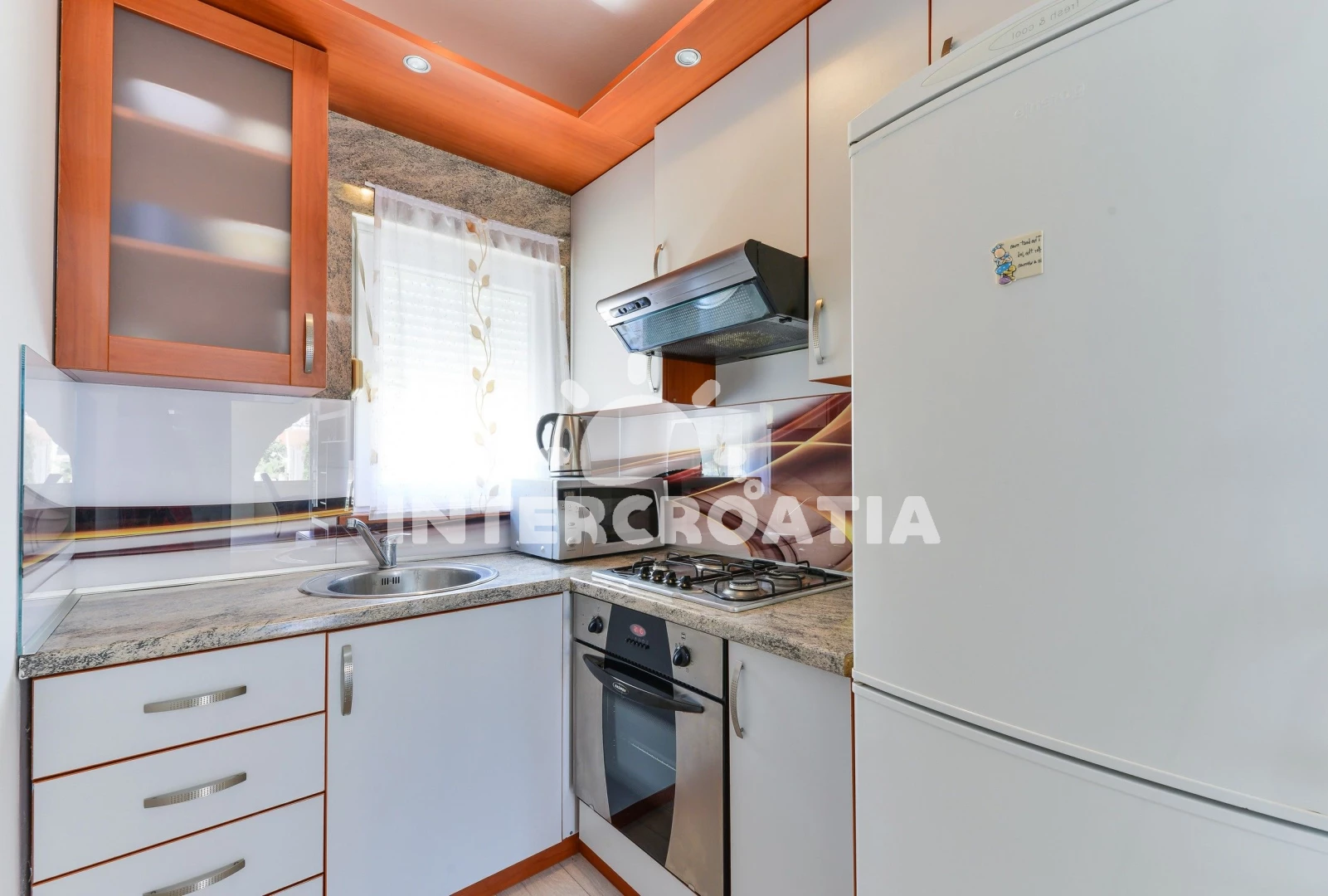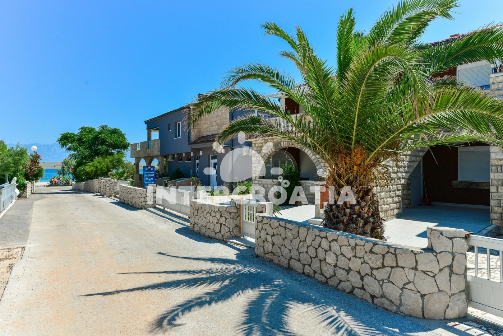 Vzdálenosti: Moře 30 m, pláž 30 m (oblázková a betonové desky), supermarket 300 m, restaurace 300 m, bar 300 m, čerpací stanice 1 km, pošta 1,5 km, potápění 2 km, diskotéka 2 km, centrum 2 km, směnárna 2 km, ambulance 2 km, lékárna 2 km, muzeum 11 km, trajekt (Zadar) 30 km, letiště (Zadar) 35 km, park Plitvice 150 km,
