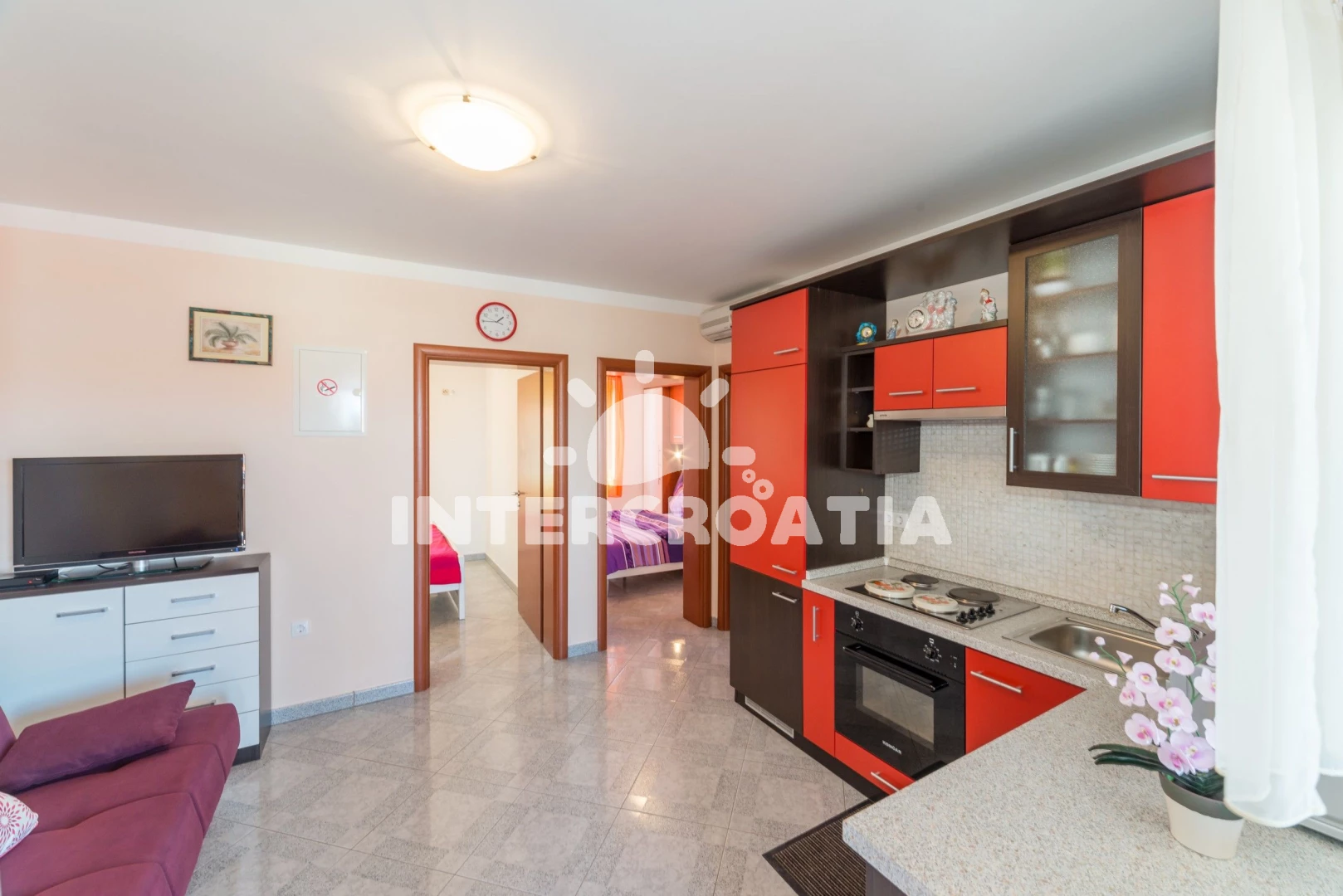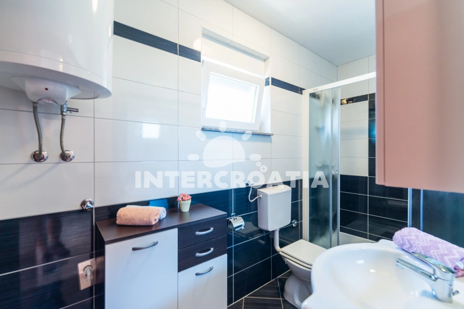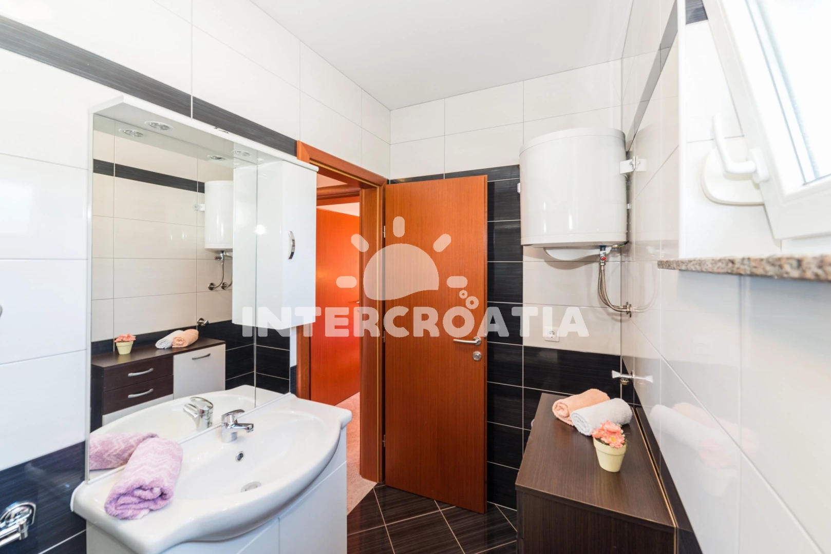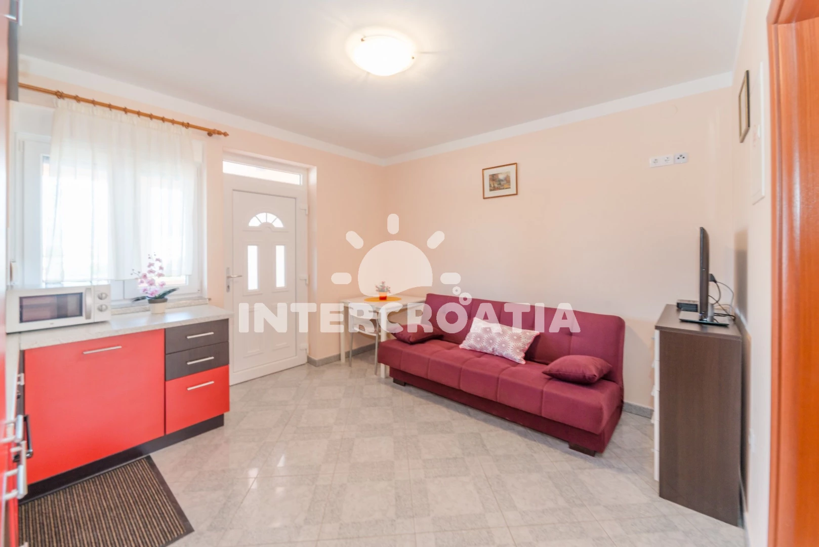 Vzdálenosti: Moře 50 m, pláž 50 m (oblázky), bar 100 m, supermarket 150 m, čerpací stanice 1 km, restaurace 1 km, centrum 4 km, lékárna 4 km, ambulance 4 km, směnárna 4 km, pošta 4 km, diskotéka 4 km, potápění 4 km, muzeum 11 km, trajekt (Zadar) 30 km, letiště (Zadar) 35 km,