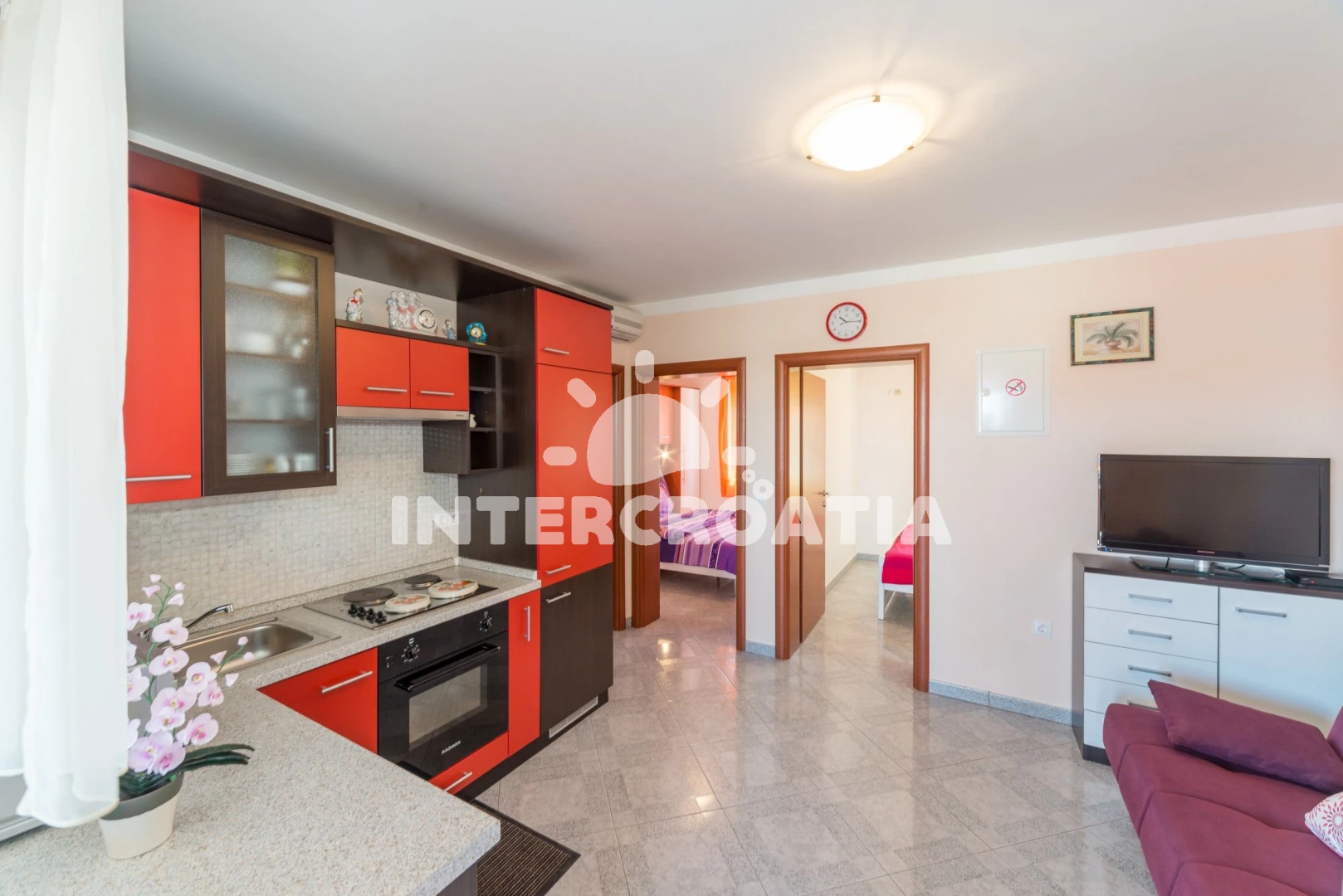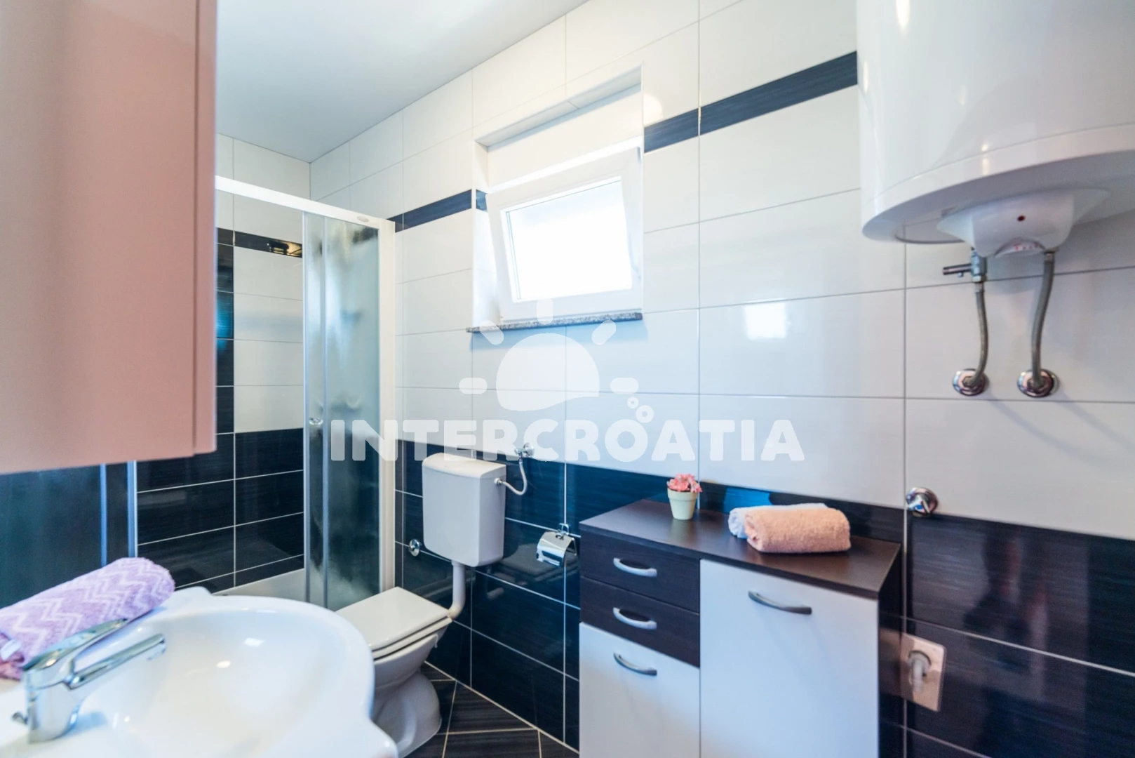 Vzdálenosti: Moře 50 m, pláž 50 m (oblázky), bar 100 m, supermarket 150 m, čerpací stanice 1 km, restaurace 1 km, centrum 4 km, lékárna 4 km, ambulance 4 km, směnárna 4 km, pošta 4 km, diskotéka 4 km, potápění 4 km, muzeum 11 km, trajekt (Zadar) 30 km, letiště (Zadar) 35 km,