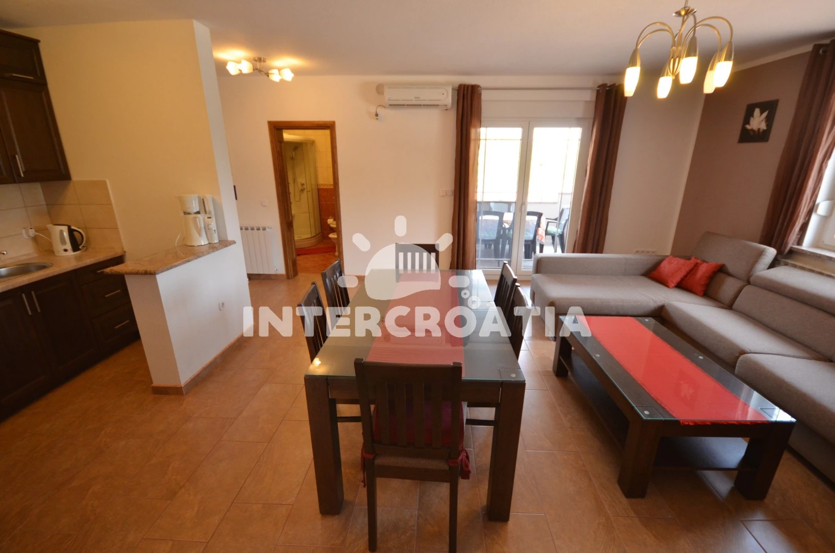 Apartmán se nachází 250 m od moře a pláže. Pláž je skalnatá, oblázková a větší kamení. U objektu je k dispozici společná zahrada s posezením a grilem. Parkování je před domem.