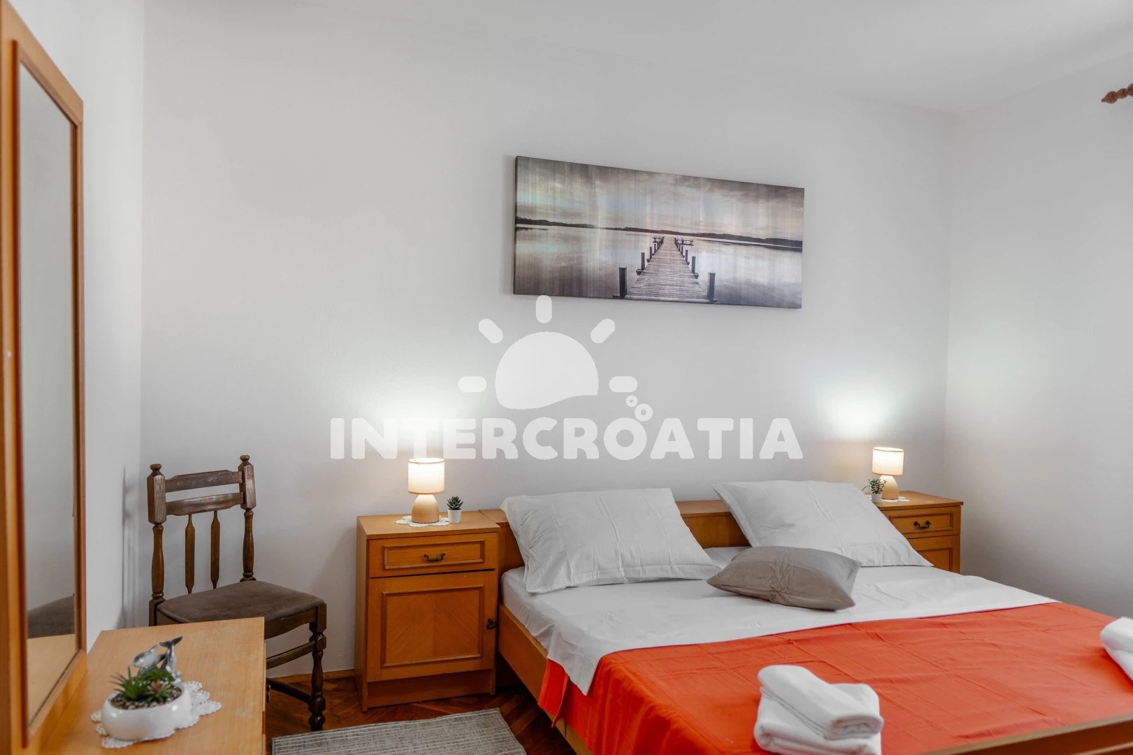 Apartmán se nachází 300 m od moře a pláže. Pláž je oblázková a betonové desky. U objektu je k dispozici společná zahrada s posezením a grilem. Parkování je před domem.