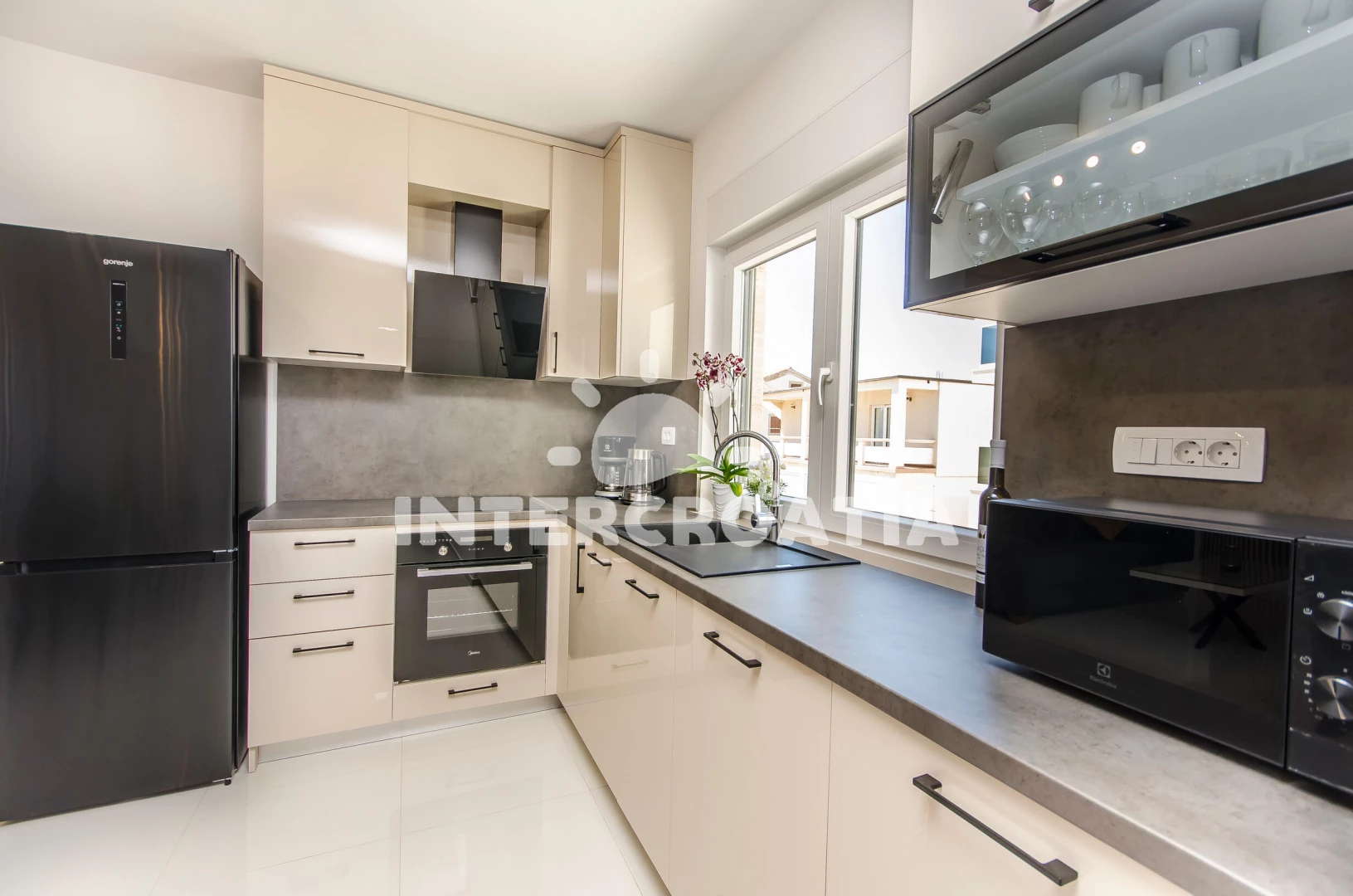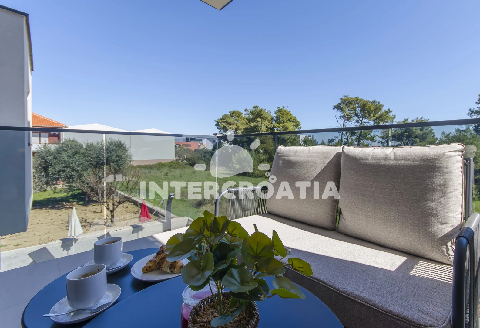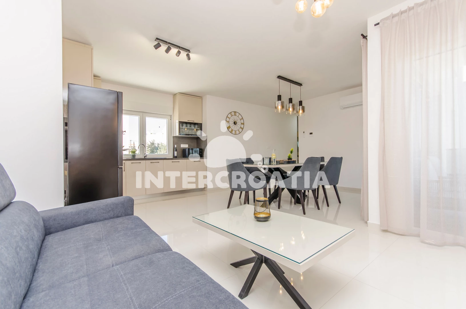 Apartmán se nachází 500 m od moře a pláže. Pláž je písčitá, skalnatá, oblázková, větší kamení a betonové desky. Apartmán disponuje bazénem s lehátky pro ubytované hosty. U objektu je k dispozici společná zahrada s posezením a grilem. Parkování je před domem.