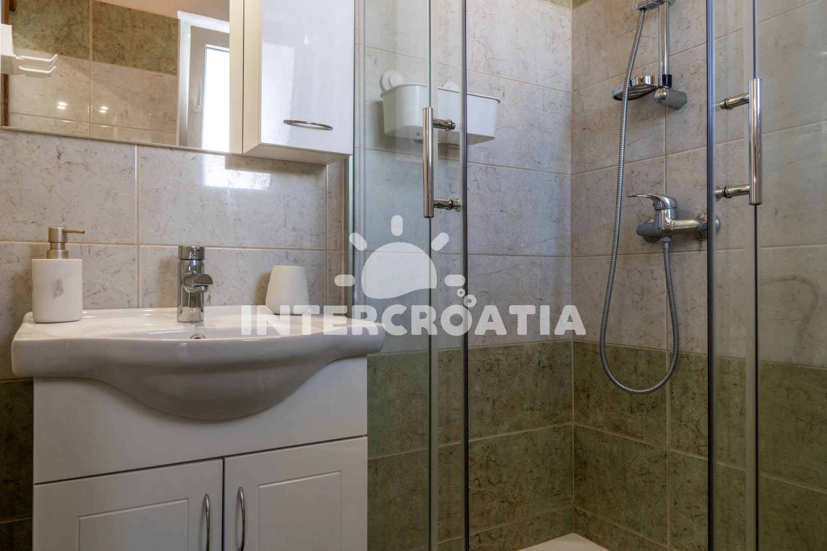 Vzdálenosti: Moře 400 m, pláž 400 m (oblázková a betonové desky), restaurace 400 m, bar 400 m, supermarket 800 m, centrum 2 km, diskotéka 2 km, pošta 2 km, potápění 2 km, půjčovna kol 2 km, směnárna 2 km, ambulance 2 km, lékárna 2 km, veřejná doprava 2 km, čerpací stanice 3 km, marina 30 km, banka 30 km, trajekt (Zadar) 30 km, letiště (Zadar) 35 km,