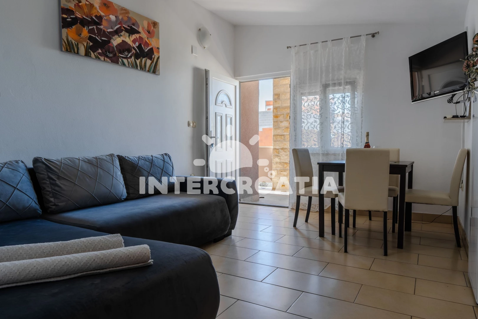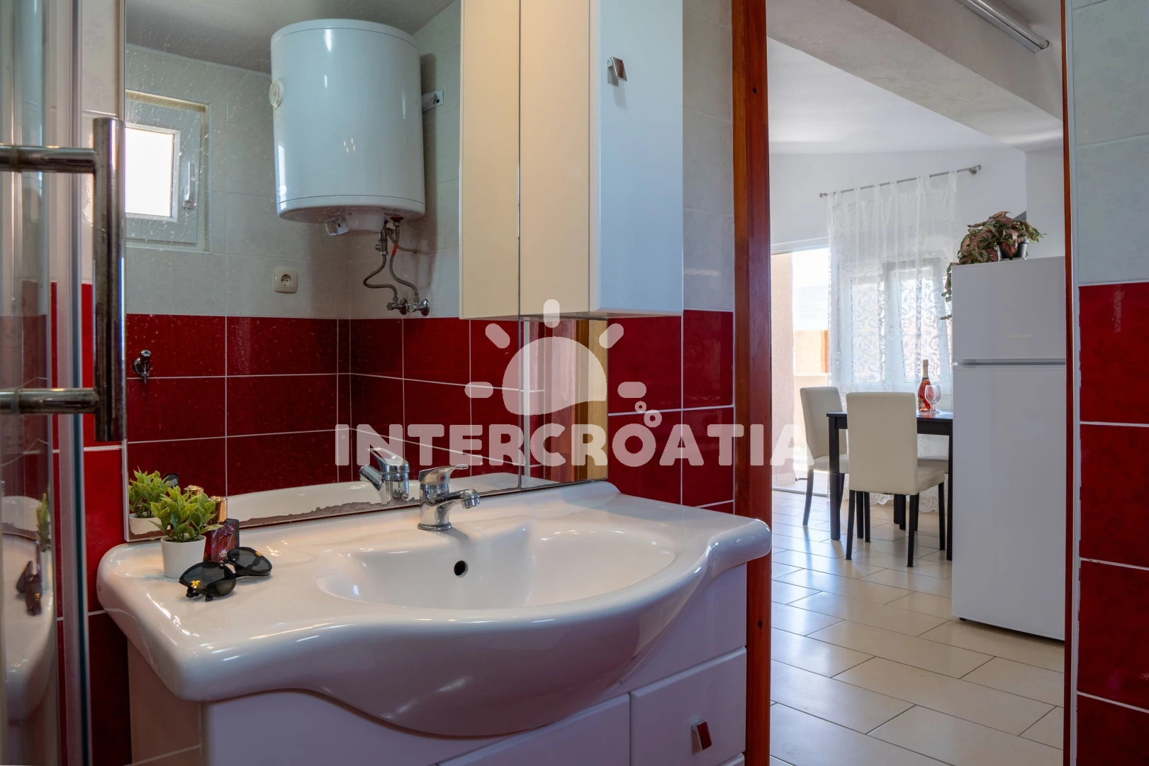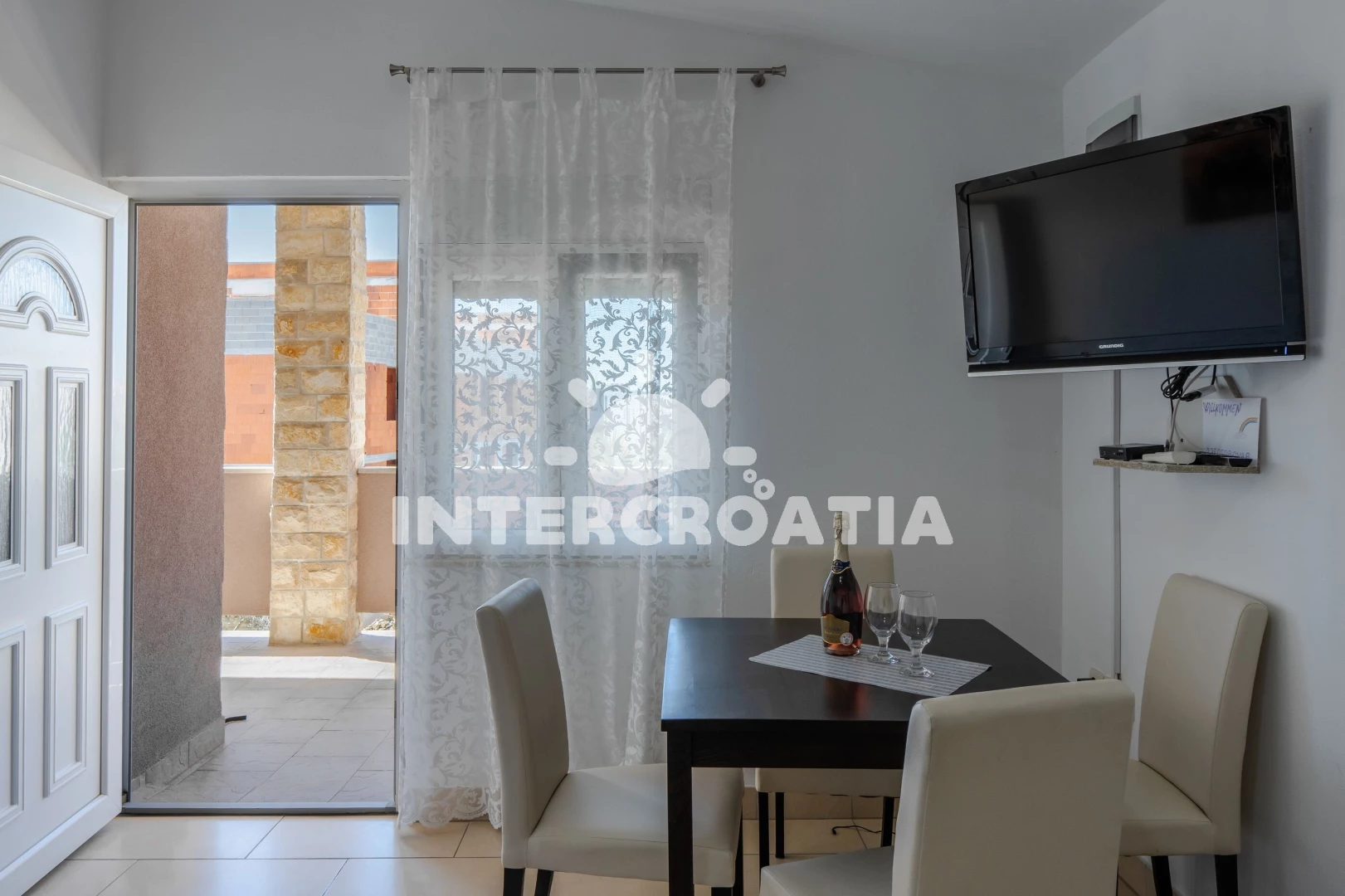 Vzdálenosti: Moře 300 m, pláž 300 m (oblázková a betonové desky), potápění 300 m, restaurace 400 m, směnárna 500 m, lékárna 500 m, bar 500 m, veřejná doprava 500 m, diskotéka 500 m, centrum 500 m, půjčovna kol 500 m, supermarket 500 m, ambulance 500 m, pošta 500 m, čerpací stanice 3 km, banka 30 km, marina 30 km, trajekt (Zadar) 30 km, letiště (Zadar) 35 km,