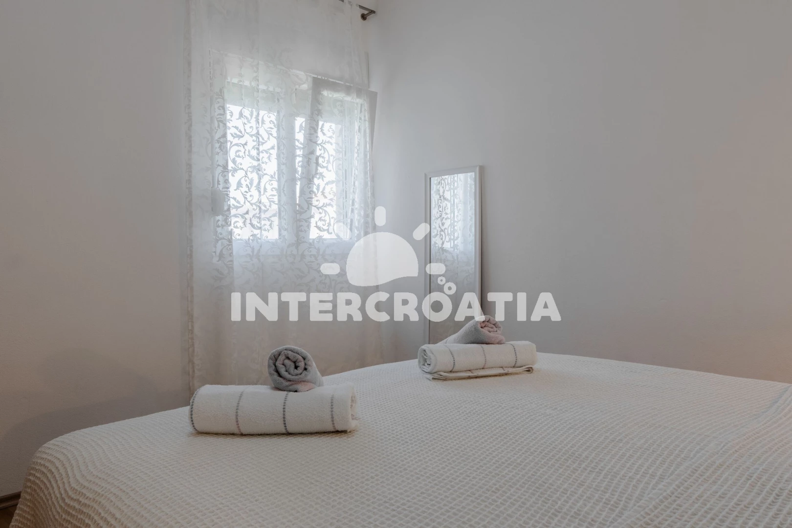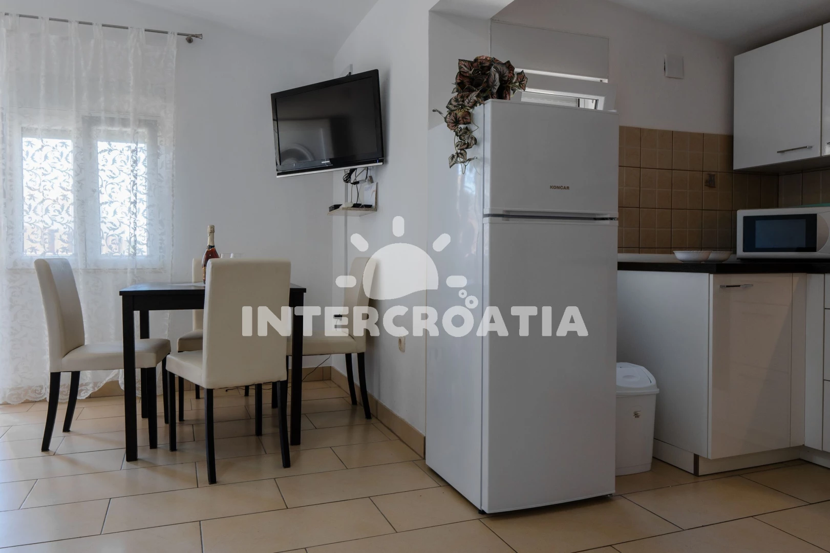 Apartmán se nachází 300 m od moře a pláže. Pláž je oblázková a betonové desky. U objektu je k dispozici společná zahrada s posezením a grilem. Parkování je před domem.