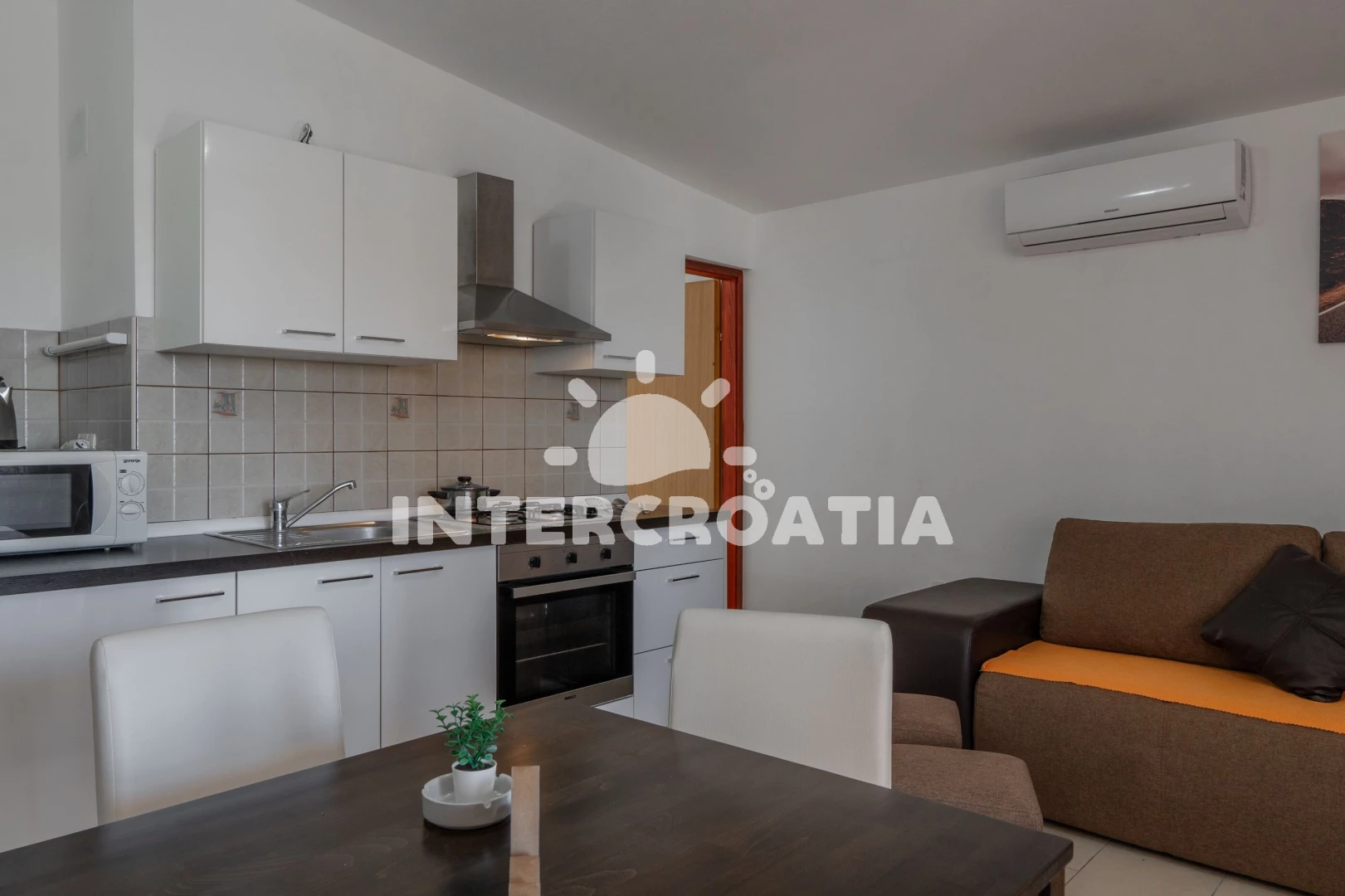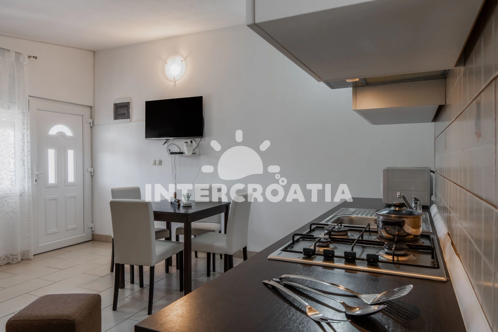 Vzdálenosti: Moře 300 m, pláž 300 m (oblázková a betonové desky), potápění 300 m, restaurace 400 m, směnárna 500 m, lékárna 500 m, bar 500 m, veřejná doprava 500 m, diskotéka 500 m, centrum 500 m, půjčovna kol 500 m, supermarket 500 m, ambulance 500 m, pošta 500 m, čerpací stanice 3 km, banka 30 km, marina 30 km, trajekt (Zadar) 30 km, letiště (Zadar) 35 km,
