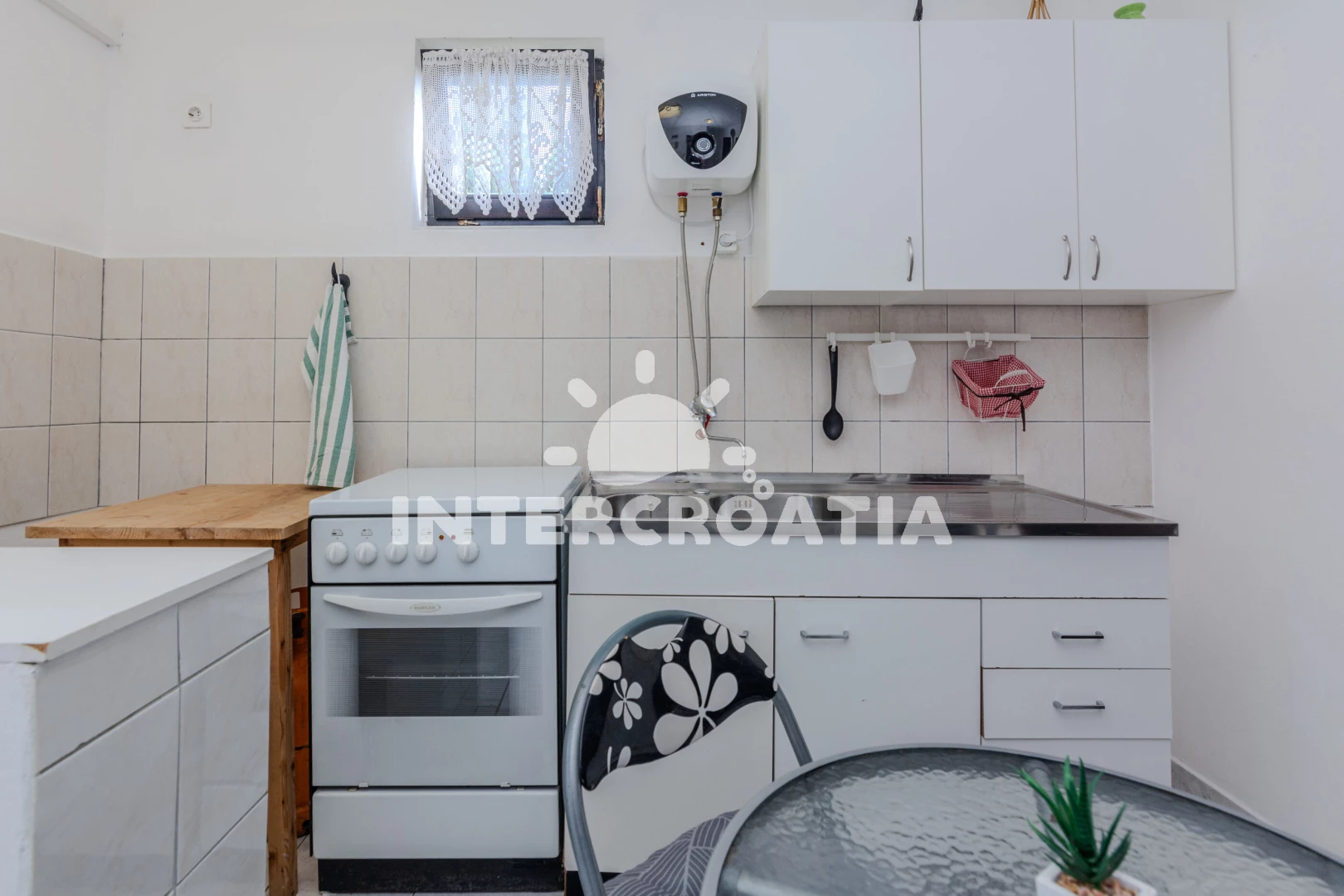 Vzdálenosti: Moře 450 m, pláž 450 m (oblázková a betonové desky), supermarket 350 m, restaurace 450 m, bar 450 m, půjčovna kol 1 km, diskotéka 1 km, pošta 1 km, potápění 1 km, centrum 1 km, směnárna 1 km, ambulance 1 km, lékárna 1 km, veřejná doprava 1 km, půjčovna motorových člunů 1 km, čerpací stanice 3 km, marina 30 km, banka 30 km, trajekt (Zadar) 30 km, letiště (Zadar) 35 km,