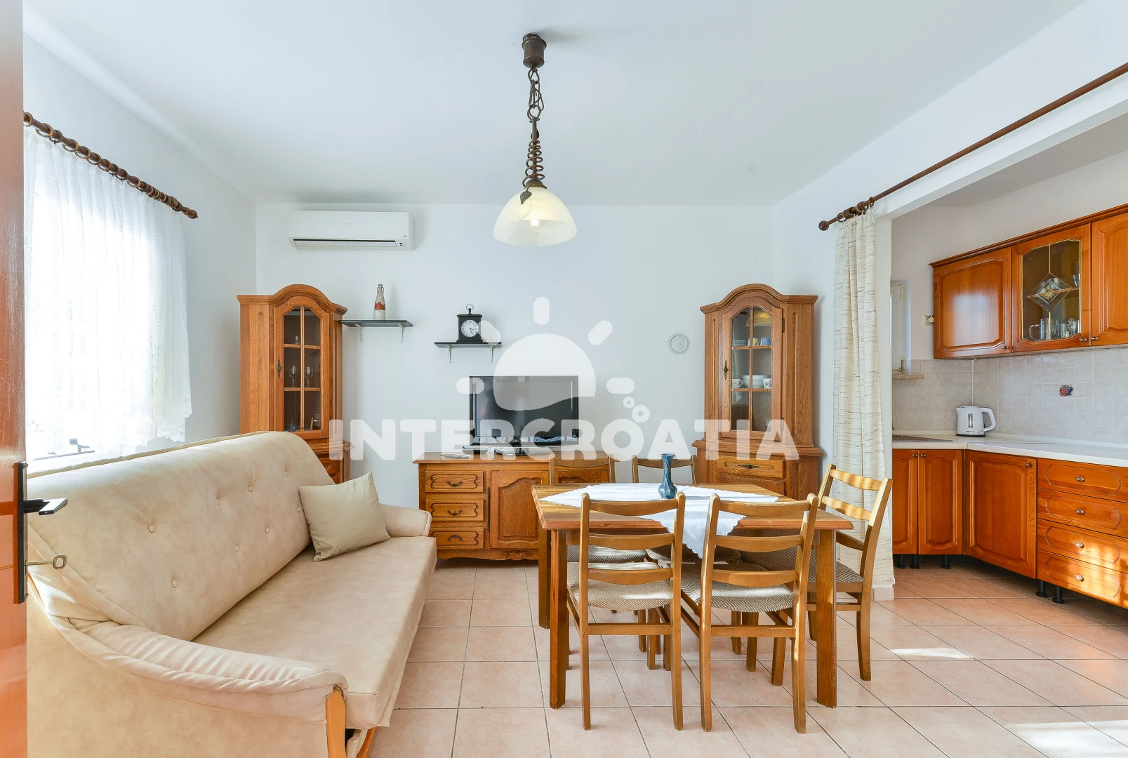 Vzdálenosti: Moře 300 m, pláž 300 m (oblázková a betonové desky), směnárna 20 m, půjčovna kol 20 m, diskotéka 20 m, pošta 20 m, potápění 20 m, centrum 20 m, ambulance 20 m, lékárna 20 m, veřejná doprava 20 m, půjčovna motorových člunů 20 m, bar 200 m, restaurace 200 m, supermarket 500 m, čerpací stanice 3 km, trajekt (Zadar) 30 km, marina 30 km, banka 30 km, letiště (Zadar) 35 km,