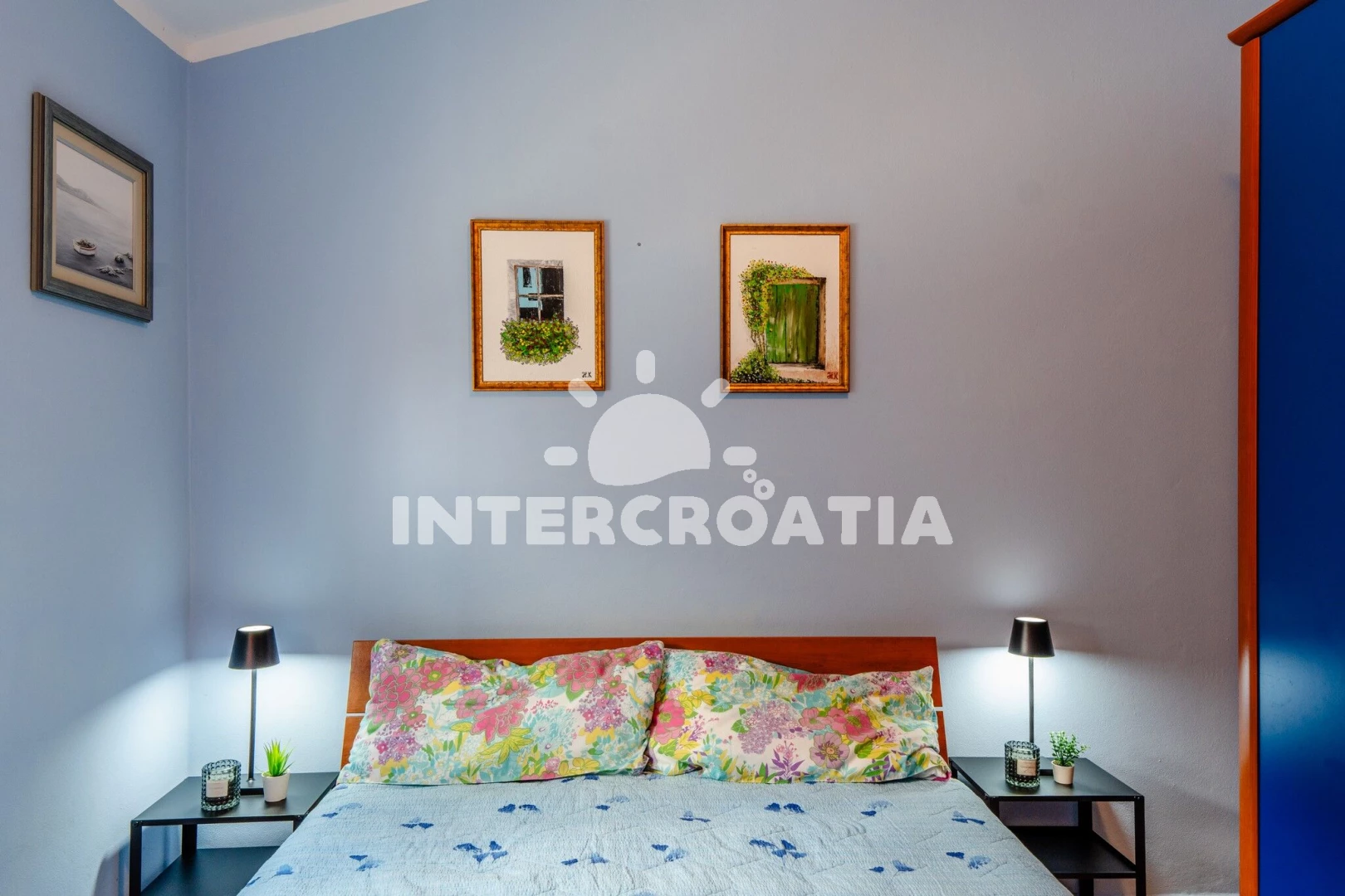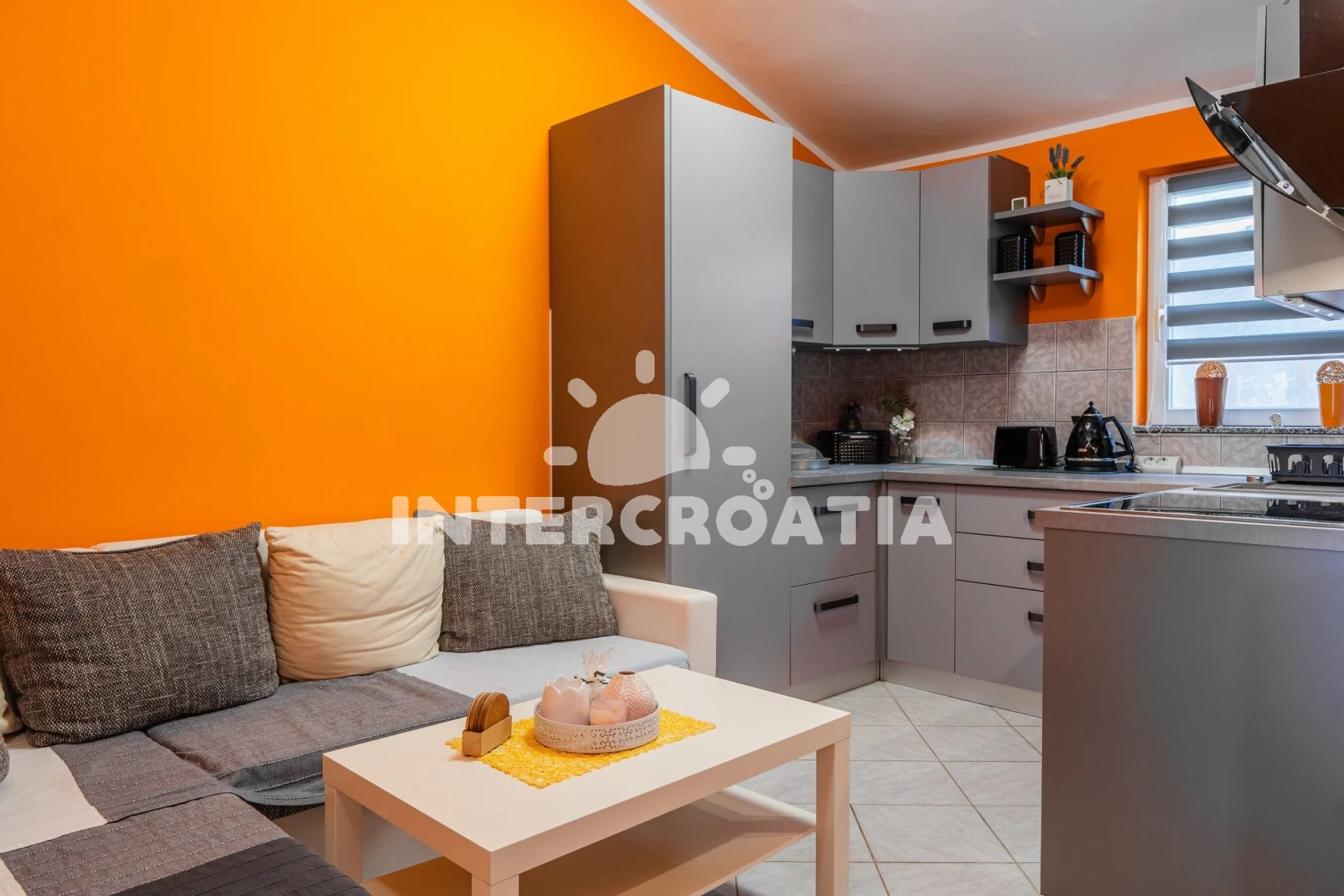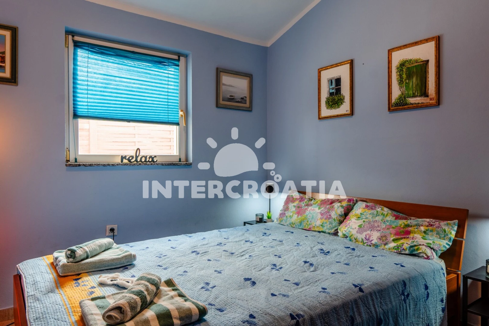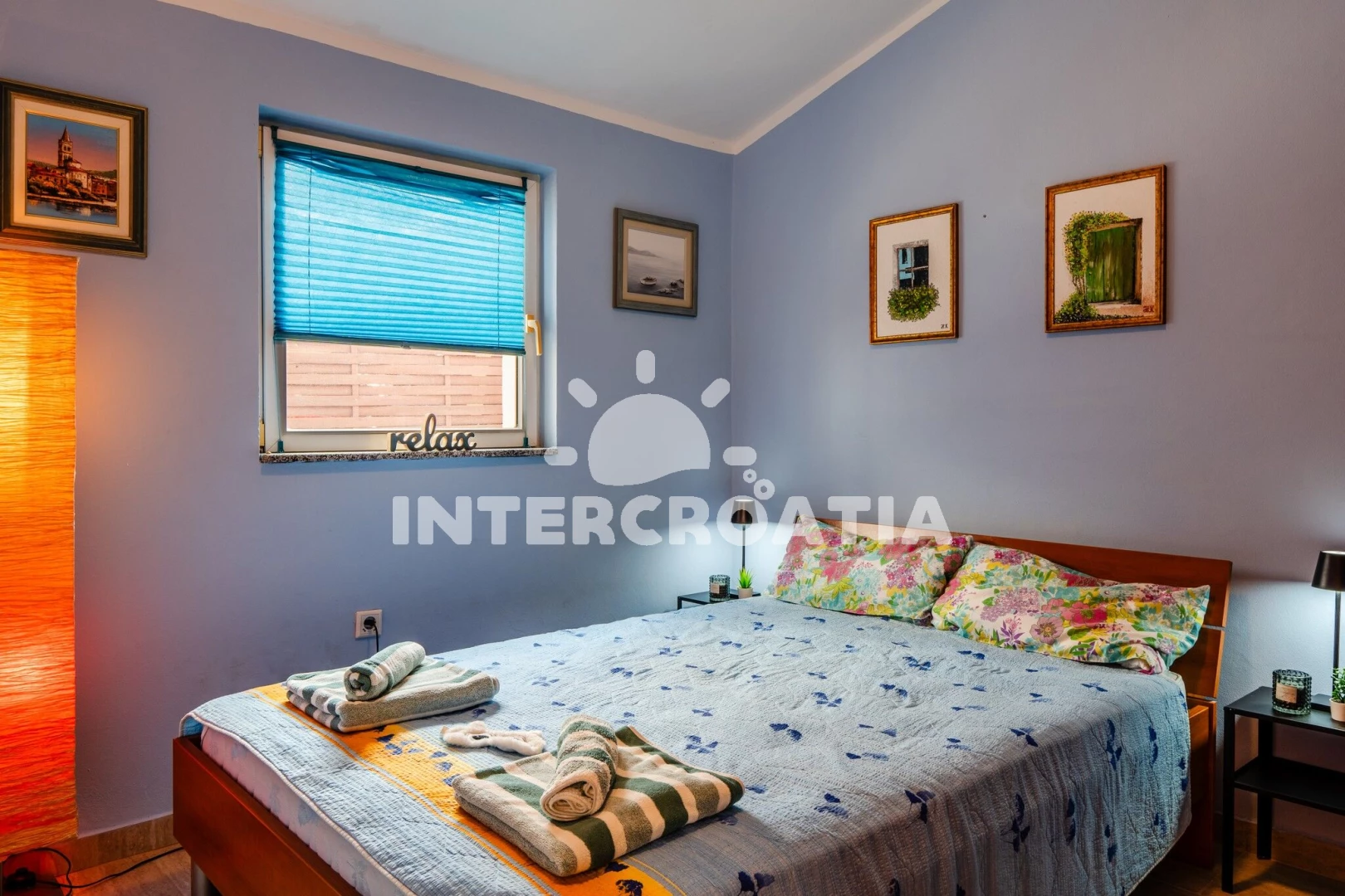 Apartmán se nachází 200 m od moře a pláže. Pláž je oblázková a betonové desky. U objektu je k dispozici společná zahrada s posezením a grilem. Parkování je před domem.