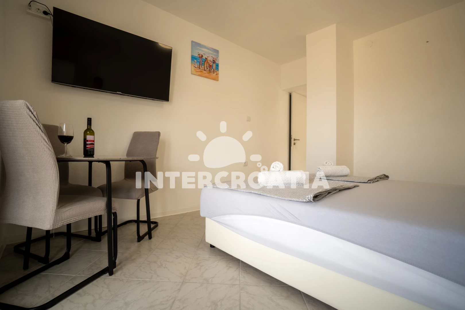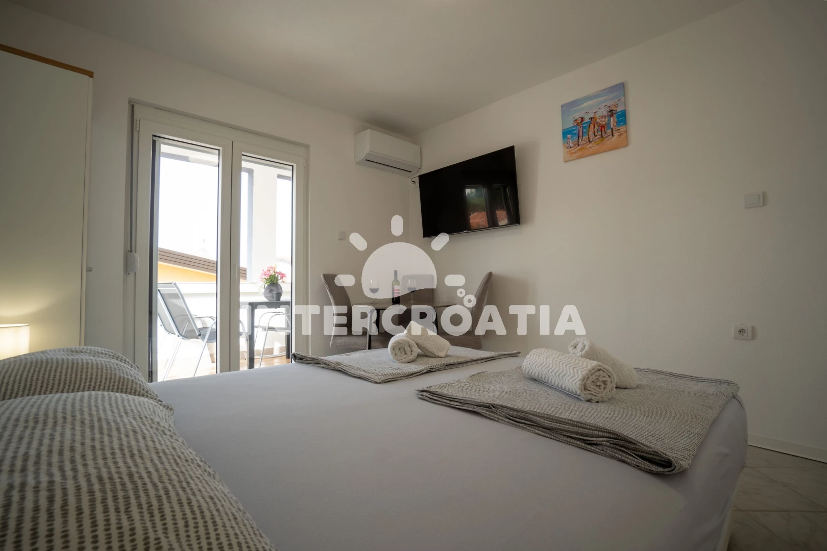Vzdálenosti: Moře 200 m, pláž 200 m (oblázková a betonové desky), restaurace 200 m, bar 200 m, supermarket 300 m, půjčovna motorových člunů 500 m, půjčovna kol 500 m, diskotéka 500 m, pošta 500 m, potápění 500 m, centrum 500 m, směnárna 500 m, ambulance 500 m, lékárna 500 m, veřejná doprava 500 m, čerpací stanice 3 km, marina 30 km, banka 30 km, trajekt (Zadar) 30 km, letiště (Zadar) 35 km, park Plitvice 150 km,