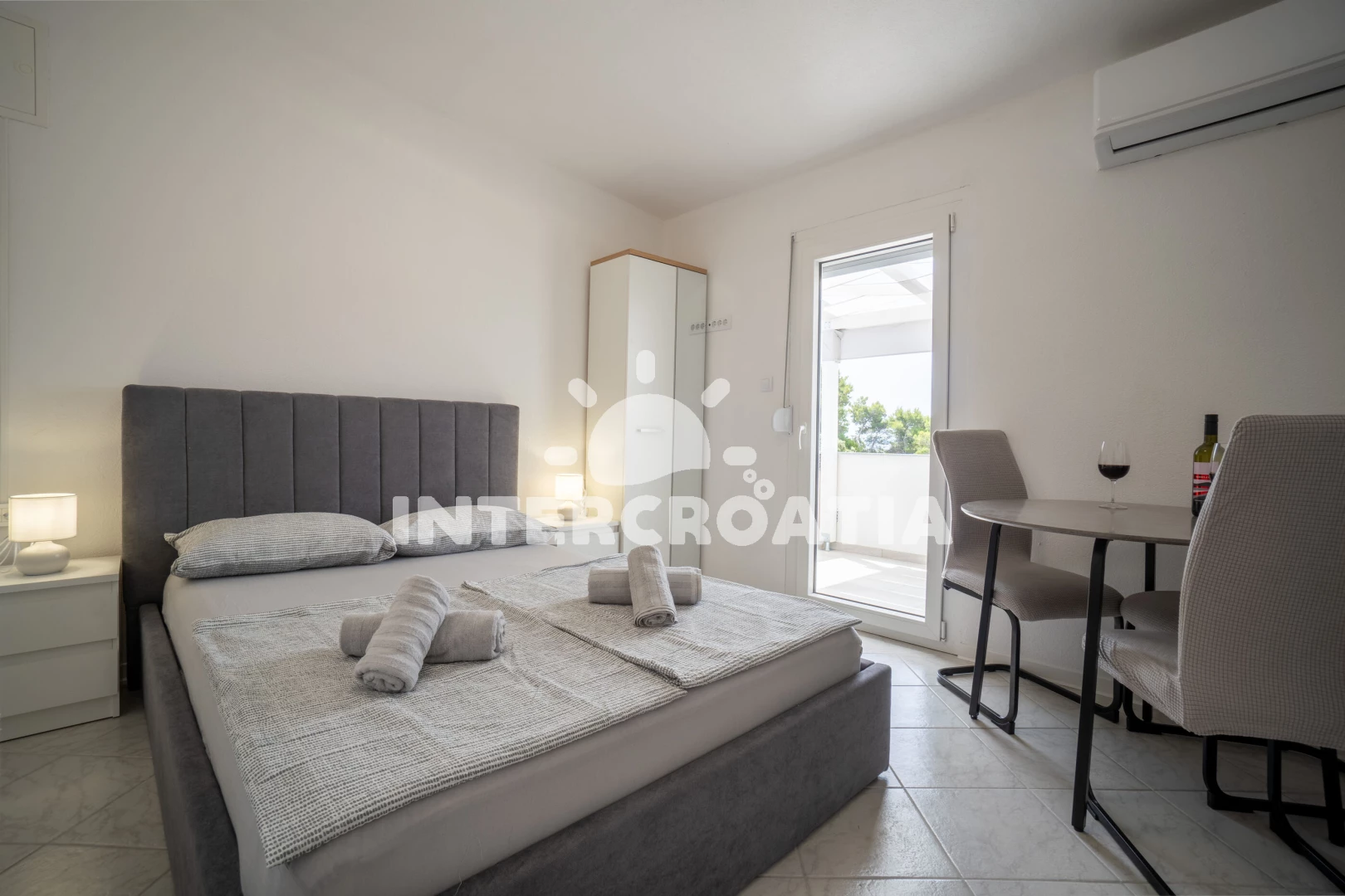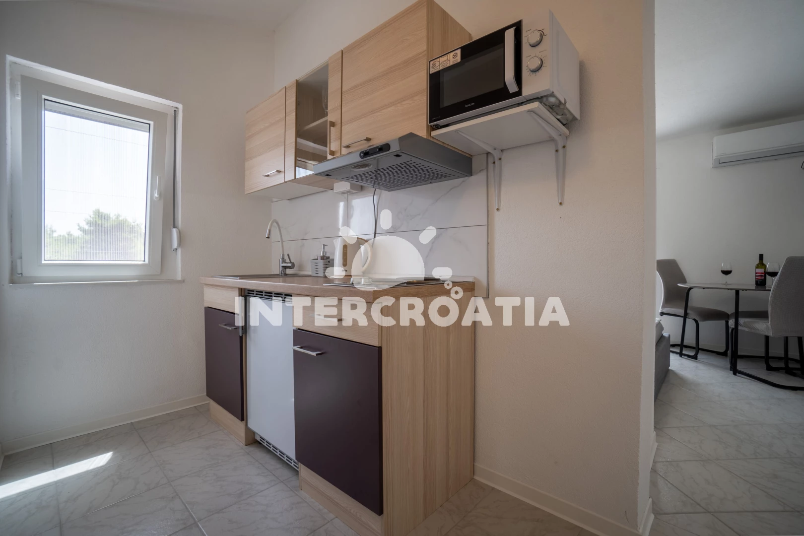 Vzdálenosti: Moře 200 m, pláž 200 m (oblázková a betonové desky), restaurace 200 m, bar 200 m, supermarket 300 m, půjčovna motorových člunů 500 m, půjčovna kol 500 m, diskotéka 500 m, pošta 500 m, potápění 500 m, centrum 500 m, směnárna 500 m, ambulance 500 m, lékárna 500 m, veřejná doprava 500 m, čerpací stanice 3 km, marina 30 km, banka 30 km, trajekt (Zadar) 30 km, letiště (Zadar) 35 km, park Plitvice 150 km,