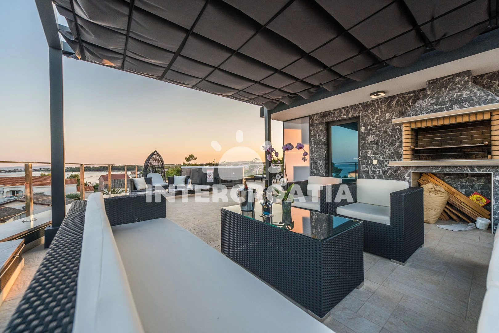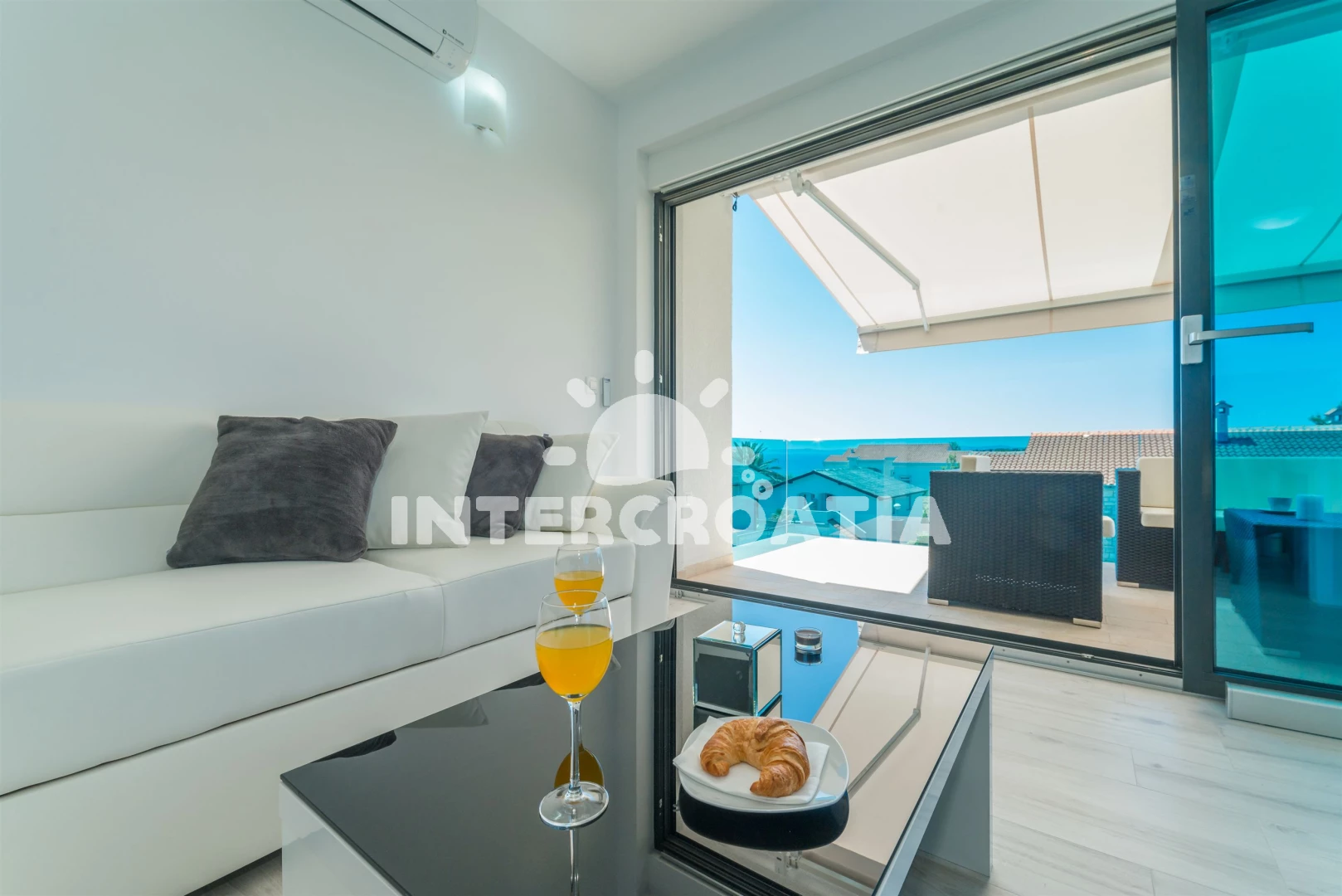 Apartmán (75 m2) s terasou, a výhledem na moře. Nachází se ve 2. patře objektu. Apartmán má 2 ložnice a je vhodný pro až 4 osoby. Kuchyňská linka je vybavena varnou deskou, troubou, kávovarem, toustovačem, myčkou na nádobí, mikrovlnnou troubou, rychlovarnou konvicí, nádobím, lednicí, mrazákem. K dispozici televize se satelitním programem, žehlička. První ložnice s dvoulůžkem. Druhá ložnice se 2 jednolůžky. Koupelna se sprchovým koutem, umyvadlem, fénem a WC.