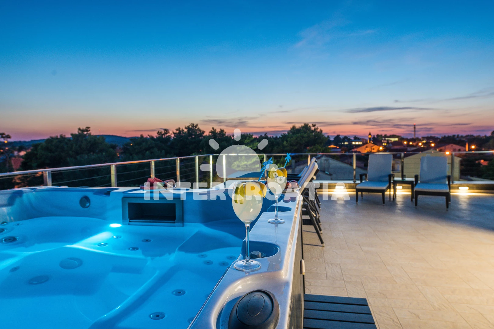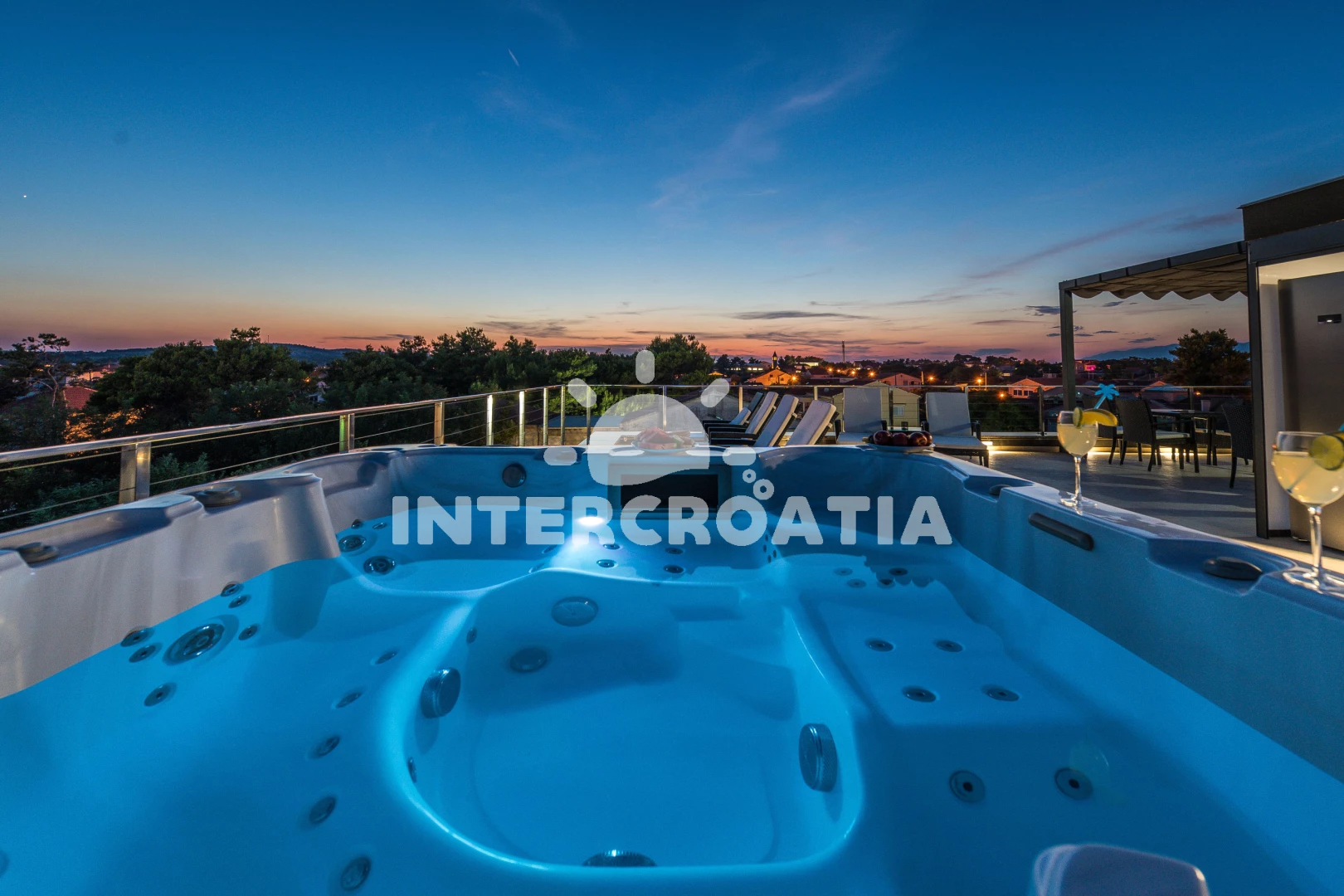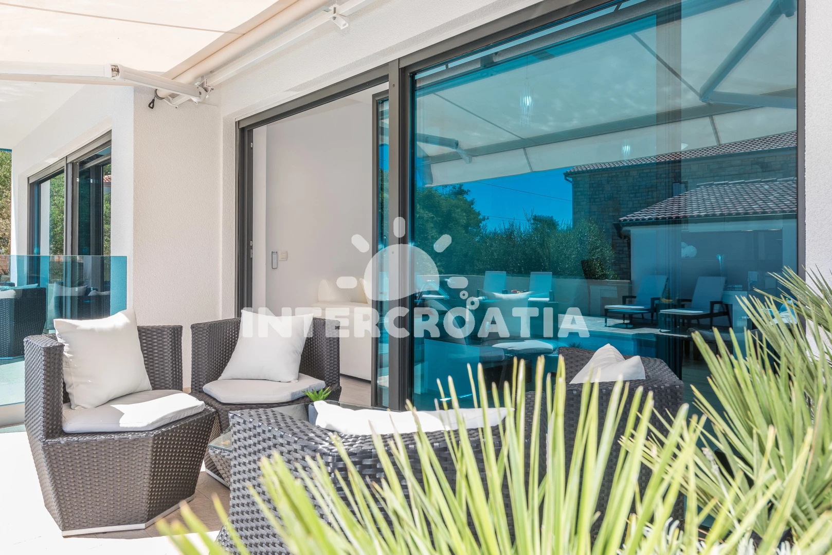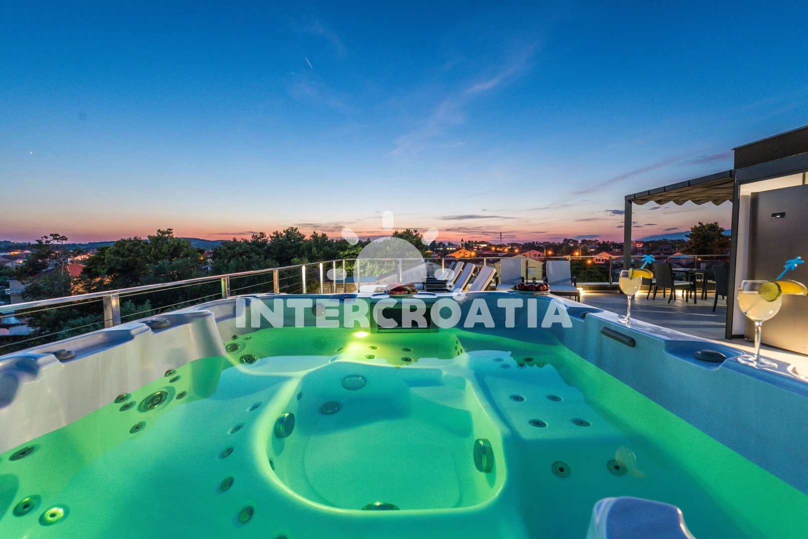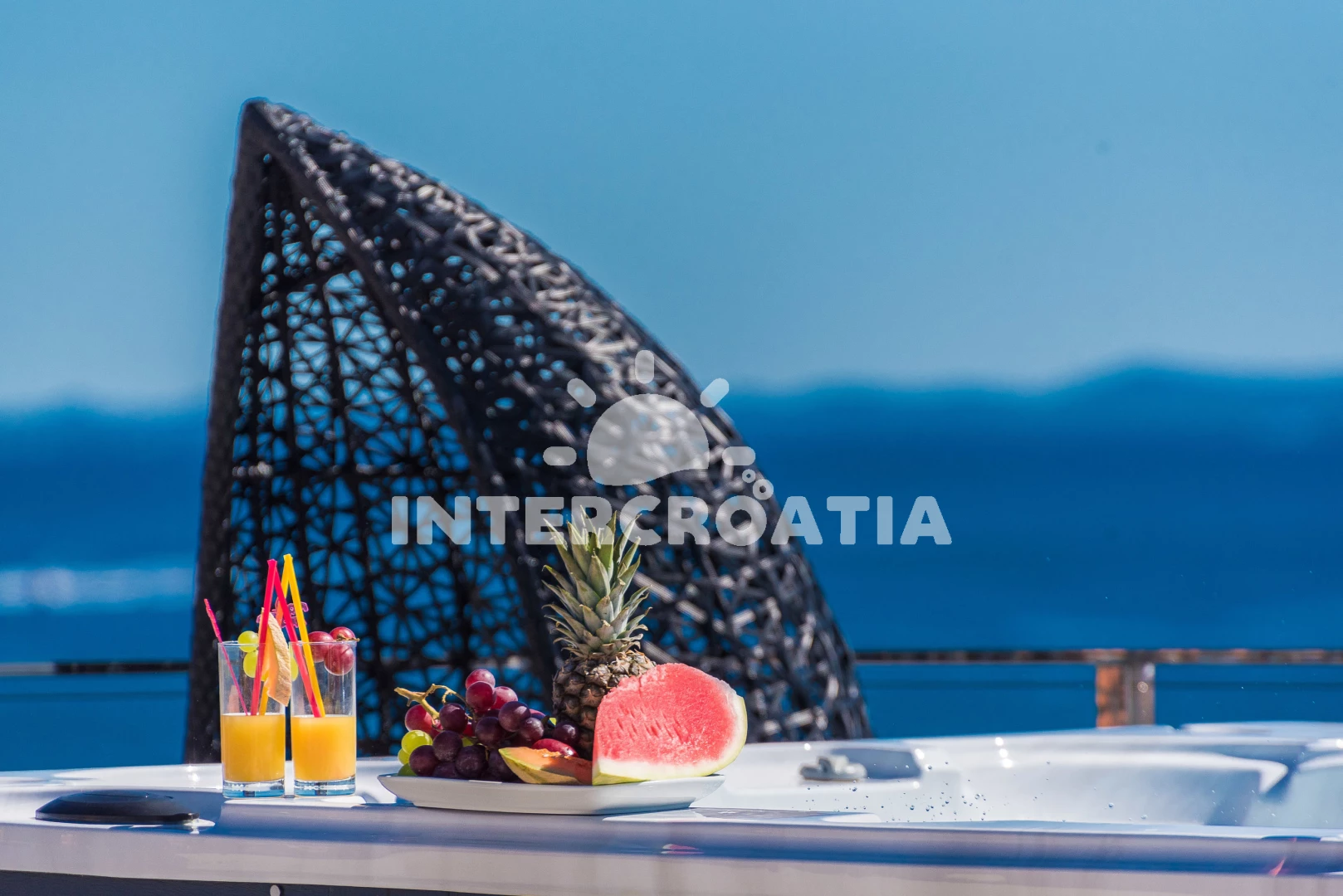 Apartmán se nachází 30 m od moře a pláže. Pláž je písčitá a oblázková. Apartmán disponuje bazénem s lehátky pro ubytované hosty. K dispozici vířivka. U objektu je k dispozici společná zahrada s posezením a grilem. Parkování je před domem.