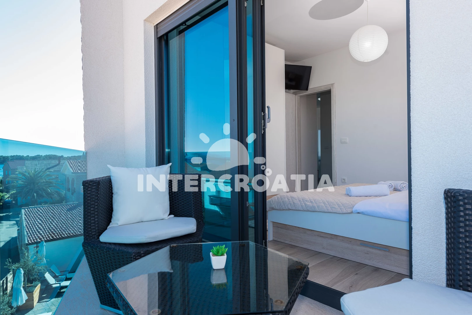 Vzdálenosti: Moře 30 m, pláž 30 m (písčitá a oblázková), ambulance 10 m, restaurace 10 m, směnárna 15 m, centrum 20 m, potápění 20 m, bar 30 m, kotviště pro čluny 30 m, veřejná doprava 40 m, diskotéka 50 m, park Plitvice 60 m, supermarket 100 m, lékárna 200 m, pošta 200 m,