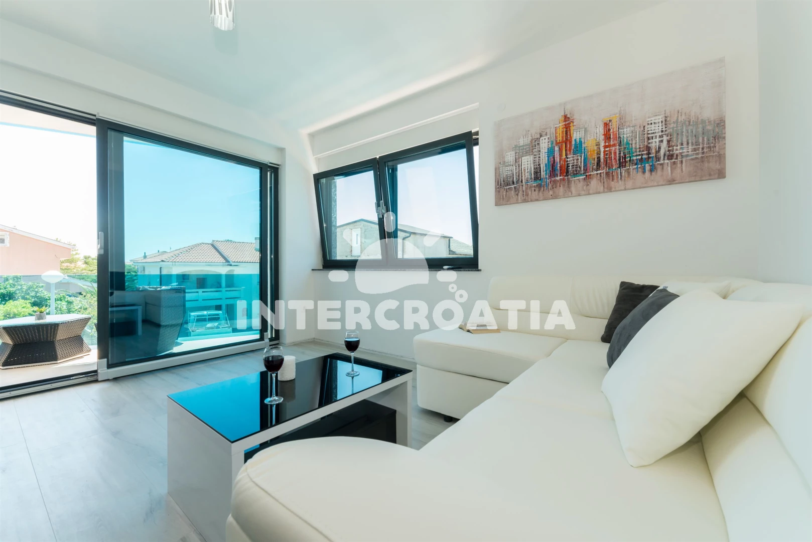 Apartmán (75 m2) s terasou, a výhledem na moře. Nachází se ve 2. patře objektu. Apartmán má 2 ložnice a je vhodný pro až 4 osoby. Kuchyňská linka je vybavena varnou deskou, troubou, kávovarem,…