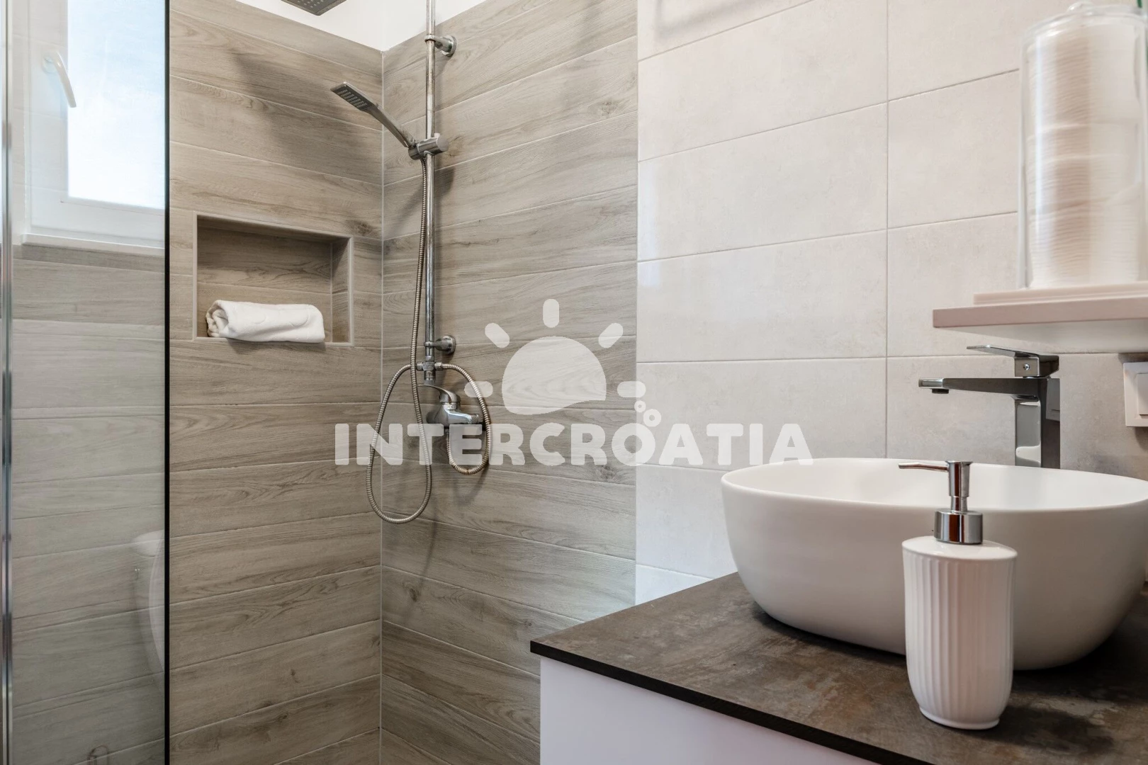 Vzdálenosti: Moře 350 m, pláž 350 m (oblázková a betonové desky), supermarket 1 km, restaurace 1,3 km, centrum 2 km, ambulance 2 km, diskotéka 2 km, pošta 2 km, čerpací stanice 2 km, půjčovna kol 2 km, lékárna 2 km, veřejná doprava 2 km, potápění 2 km, banka 30 km, marina 30 km, letiště 35 km, trajekt (Zadar) 35 km,