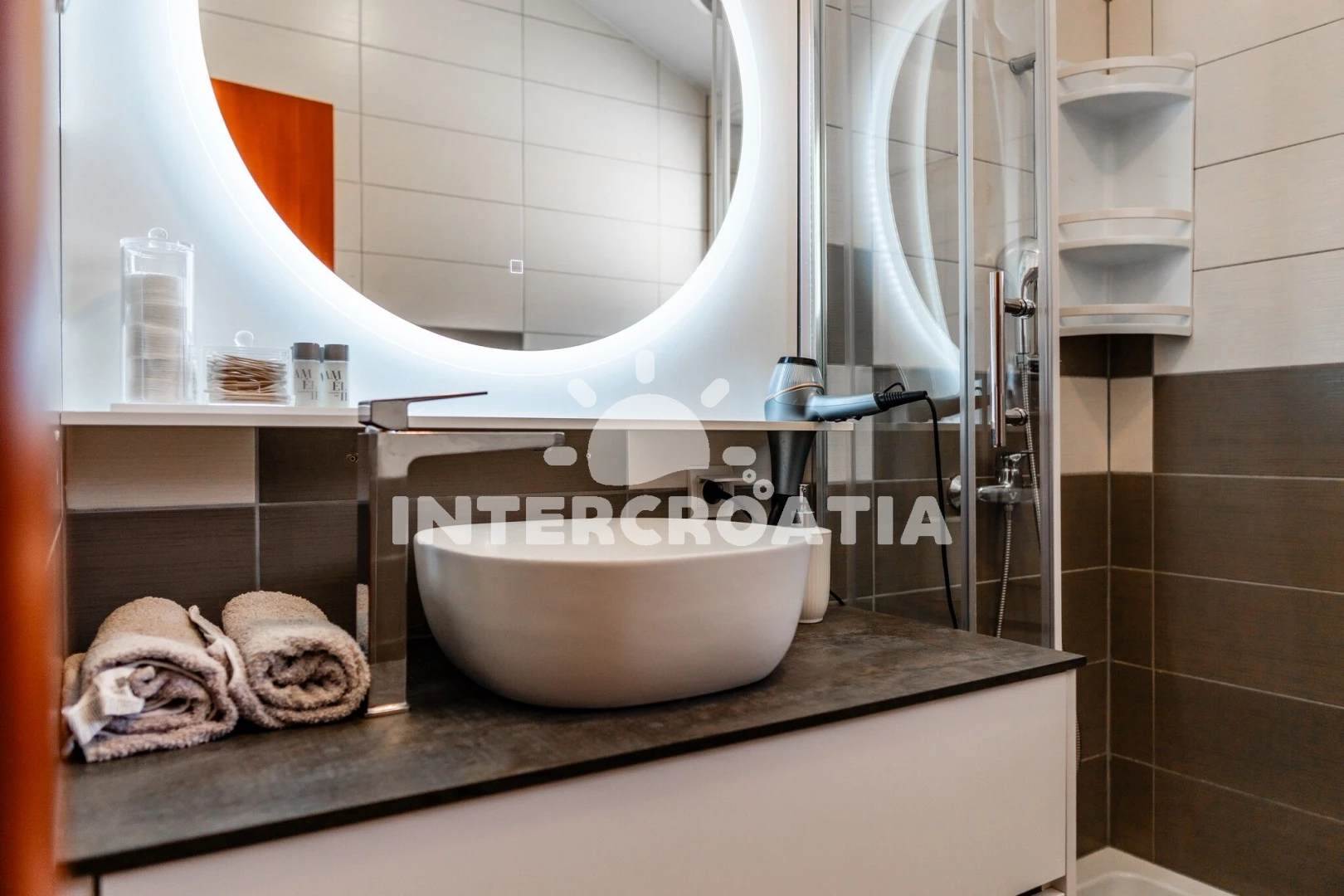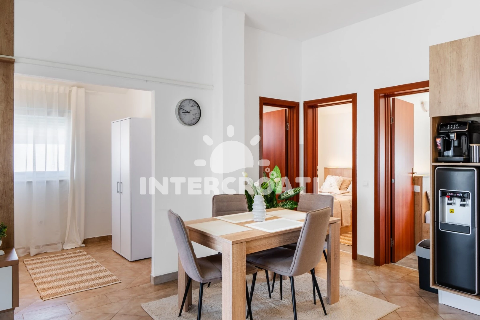 Vzdálenosti: Moře 350 m, pláž 350 m (oblázková a betonové desky), supermarket 1 km, restaurace 1,3 km, centrum 2 km, ambulance 2 km, diskotéka 2 km, pošta 2 km, čerpací stanice 2 km, půjčovna kol 2 km, lékárna 2 km, veřejná doprava 2 km, potápění 2 km, banka 30 km, marina 30 km, letiště 35 km, trajekt (Zadar) 35 km,