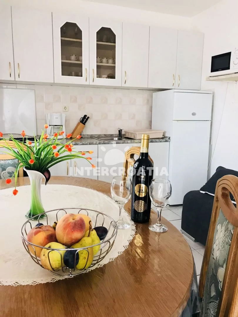 Apartmán v přízemí domu s terasou je vhodný pro 4 až 5 osob. Obývací pokoj je spojený s kuchyní. Kuchyňská linka je vybavena sporákem, troubou, kávovarem, mikrovlnnou troubou, nádobím a lednicí s…