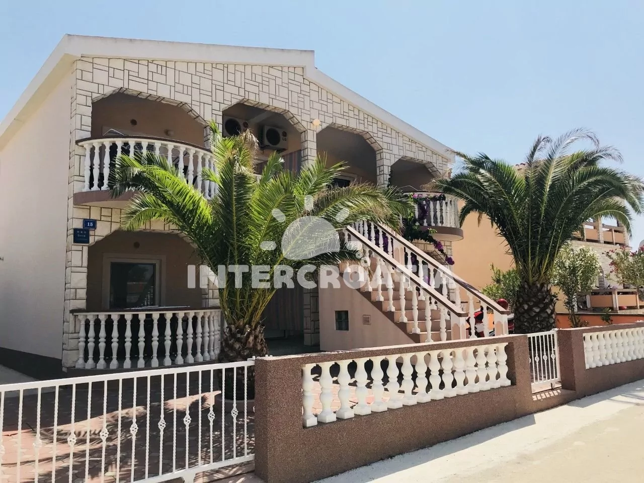Vzdálenosti: Moře a pláž 340 m, centrum, pošta, směnárna, ambulance 1,2 km, diskotéka, tenis 1,3 km, supermarket 50 m, restaurace, bar 200 m, přístav 500 m, čerpací stanice 3 km, trajekt 30 km, letiště 40 km.